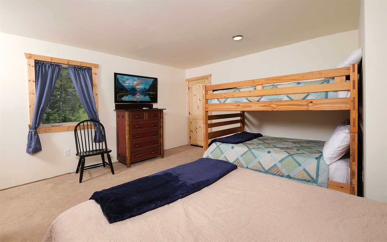 The kitchen is fully equipped with appliances, pots and pans, and dishes so you can easily cook on vacation, and the dining area doubles as a work or homeschooling space. When it's time to sleep, hit the hay in a mix of 1 king, 4 queens, 1 queen bunk, 1 queen sleeper sofa, and 1 twin daybed with a trundle. Smoky Mountain Lake Retreat also features a washer/dryer and partial mountain views in the distance from the top deck.