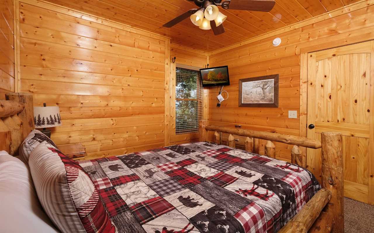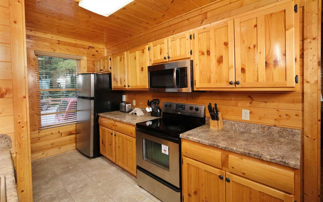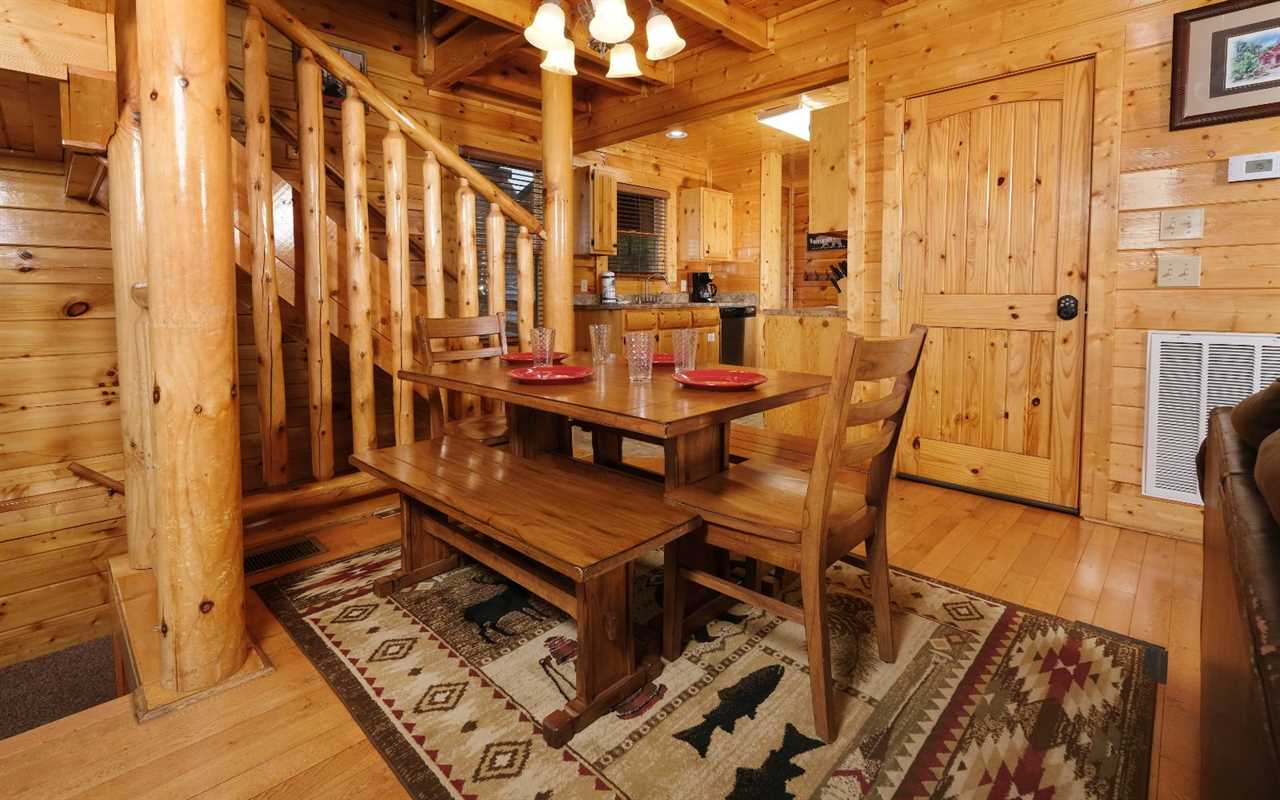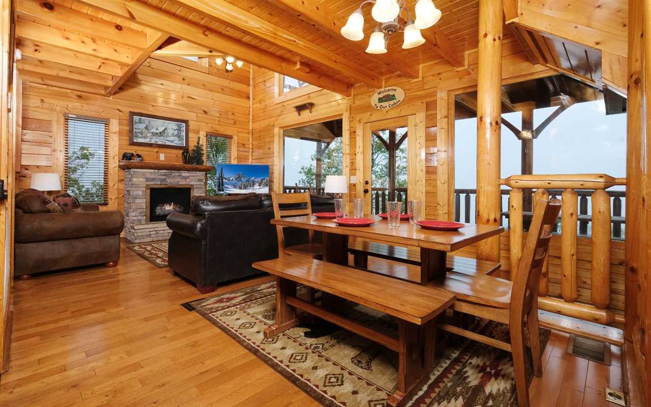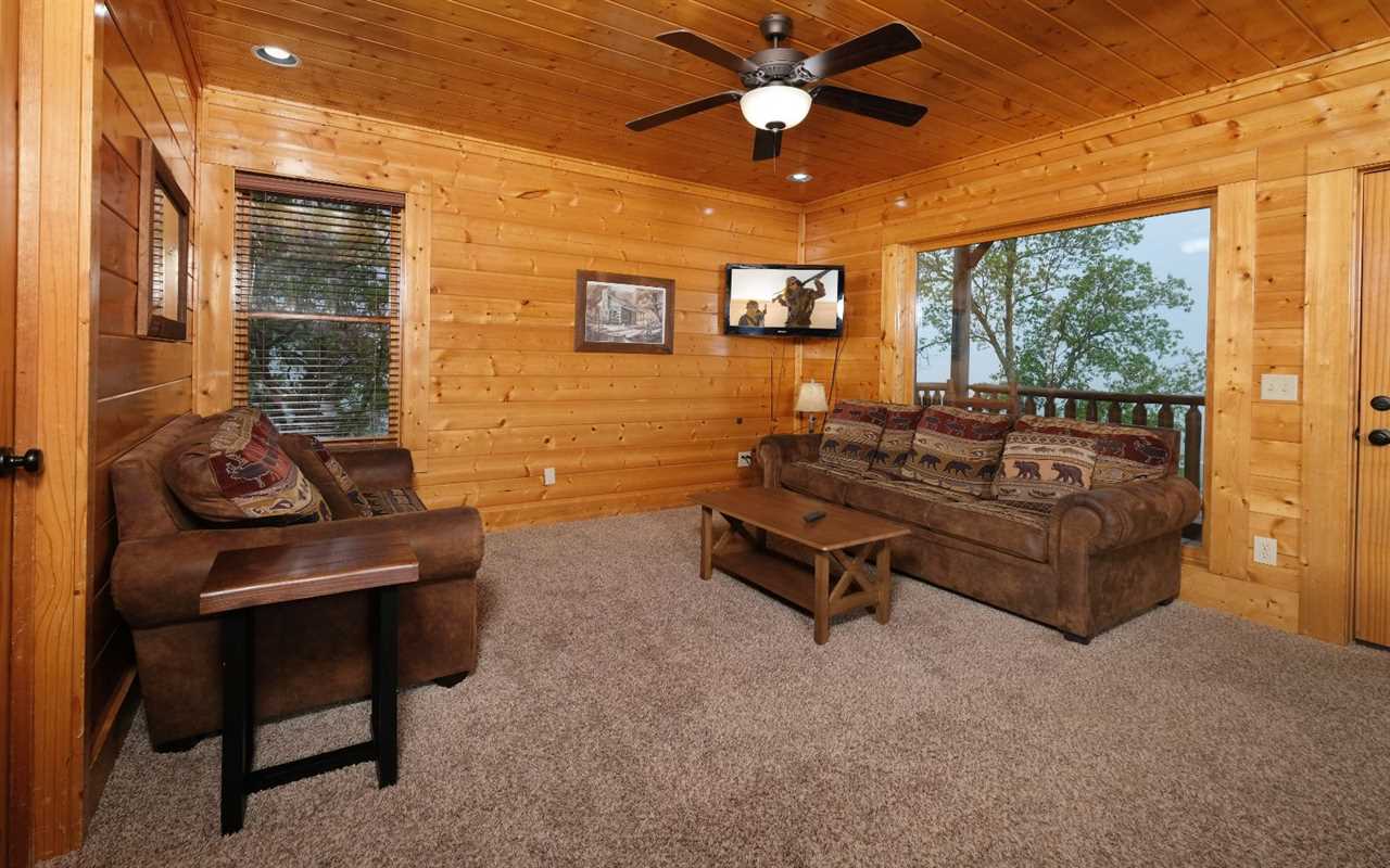 Pull up in the flat, paved driveway and step inside to get cozy in front of the electric (no heat) fireplace. Kick back in front of the big screen TV and pop in a DVD or Blu-ray movie – chosen from the movie library in the cabin. Have fun with pool, foosball, and arcade games in the rec room before enjoying a relaxing soak in the outdoor hot tub.