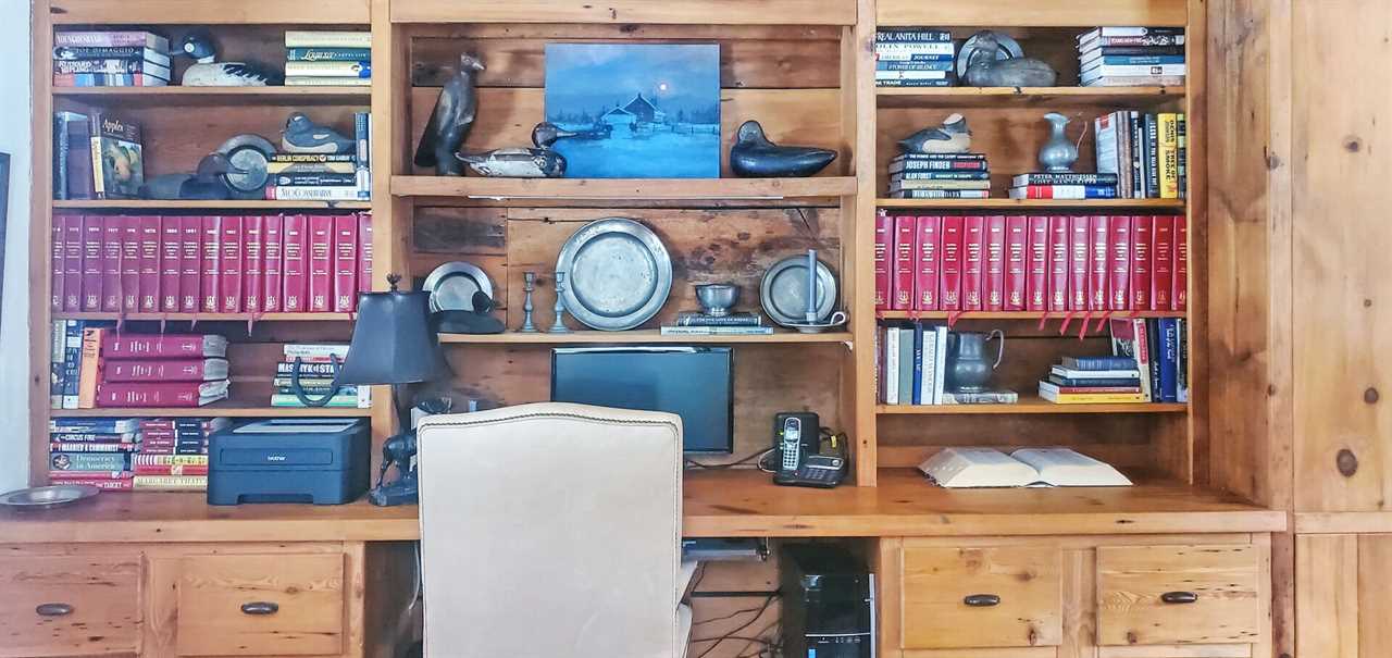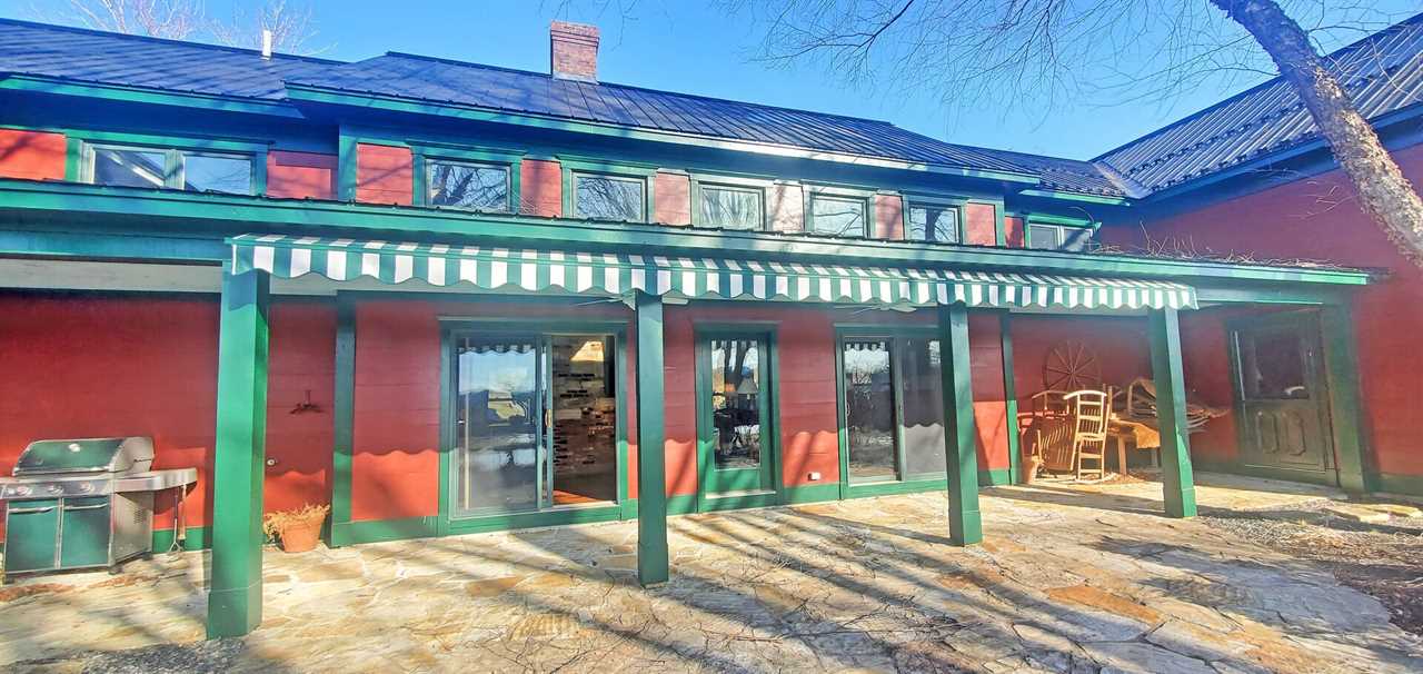 Inside, this expansive home features five bedrooms and four and a half bathrooms across two wings, blending classic architecture with modern comfort. The main level showcases radiant pine flooring, reclaimed barn board walls, and a stunning great room with high ceilings, exposed beams, and a floor-to-ceiling stone fireplace. The country-style kitchen comes fully equipped with modern appliances, while the library and den provide a cozy place to read, relax, or work remotely.