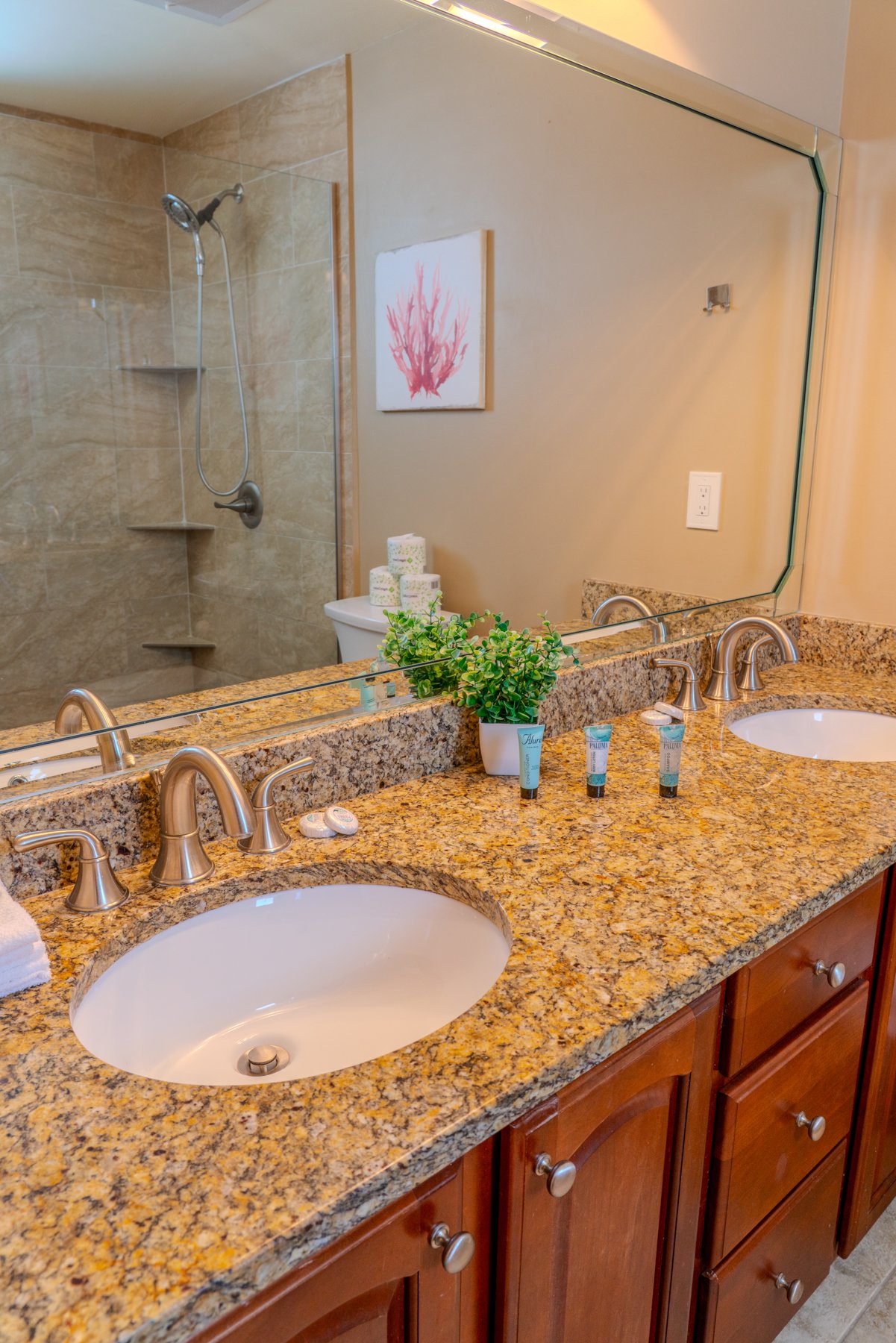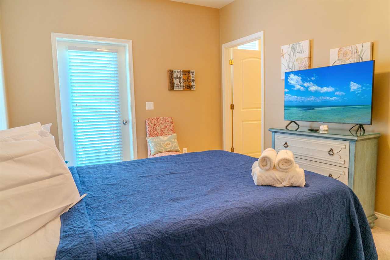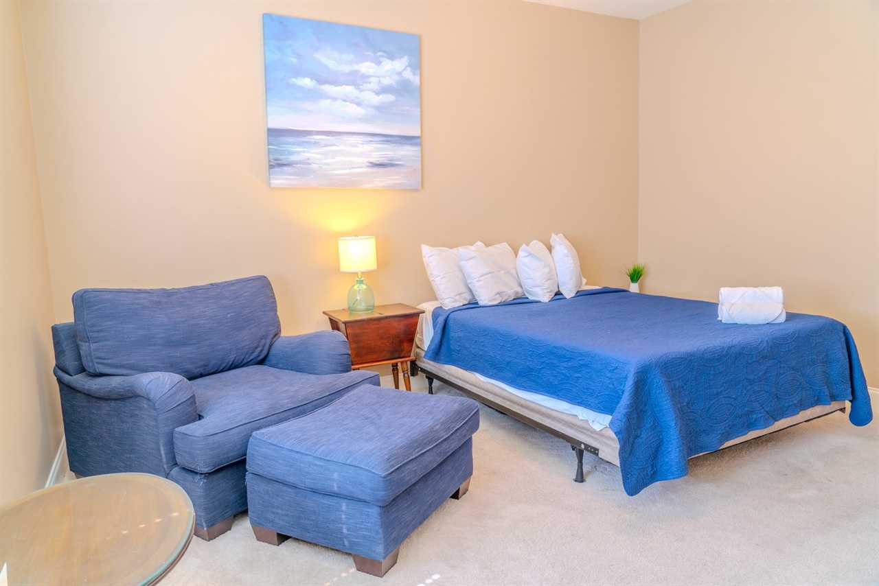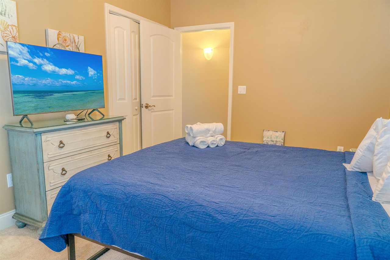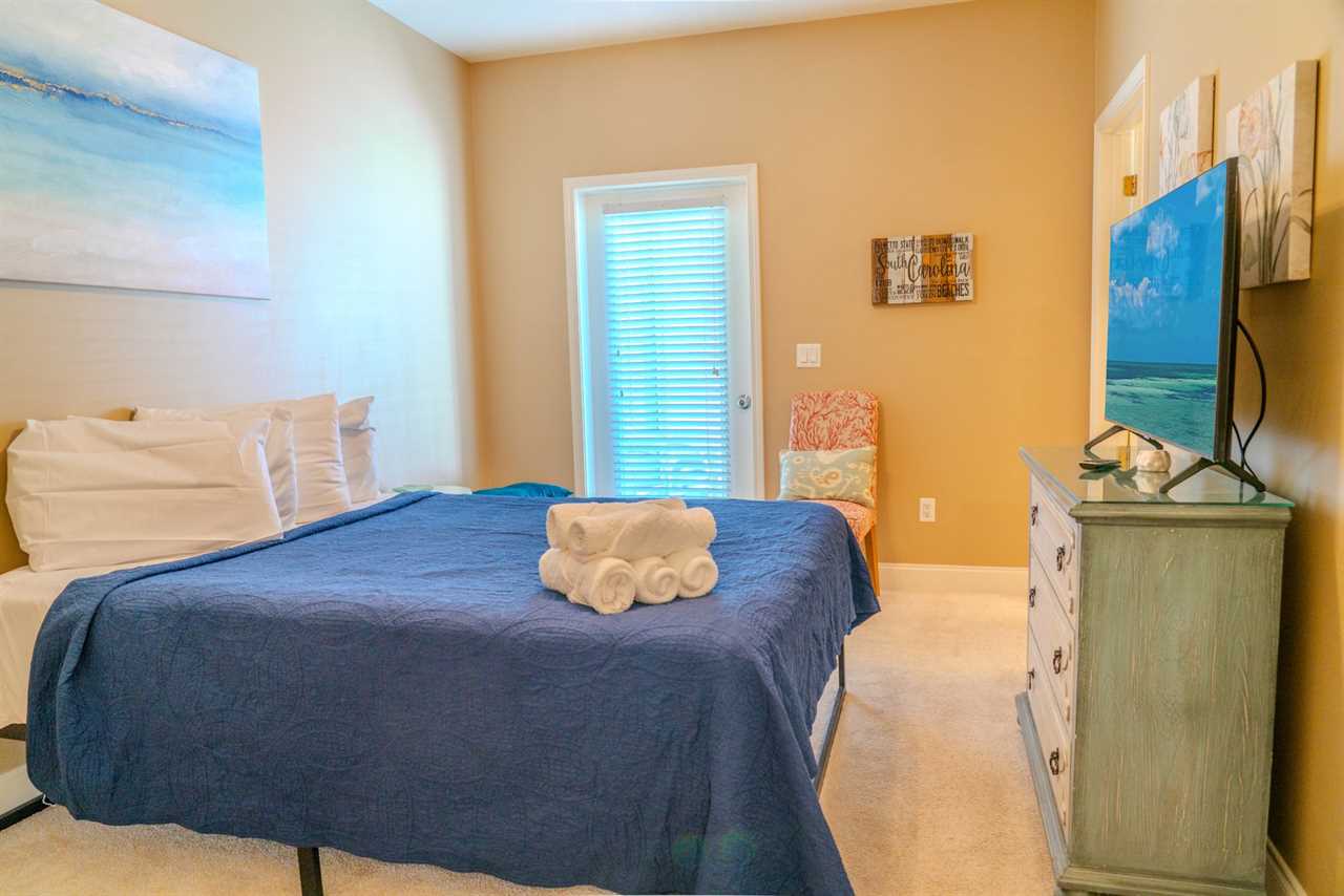As you make your way through the condo, you'll find a total of four bedrooms. Each bedroom includes its own closet, dresser, and full-size bathroom. The bedroom layouts and bed sizes are as follows: