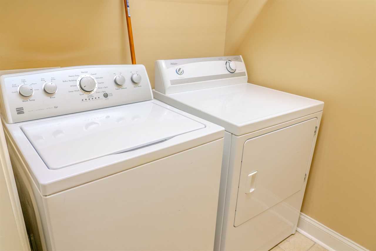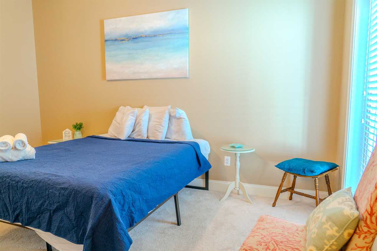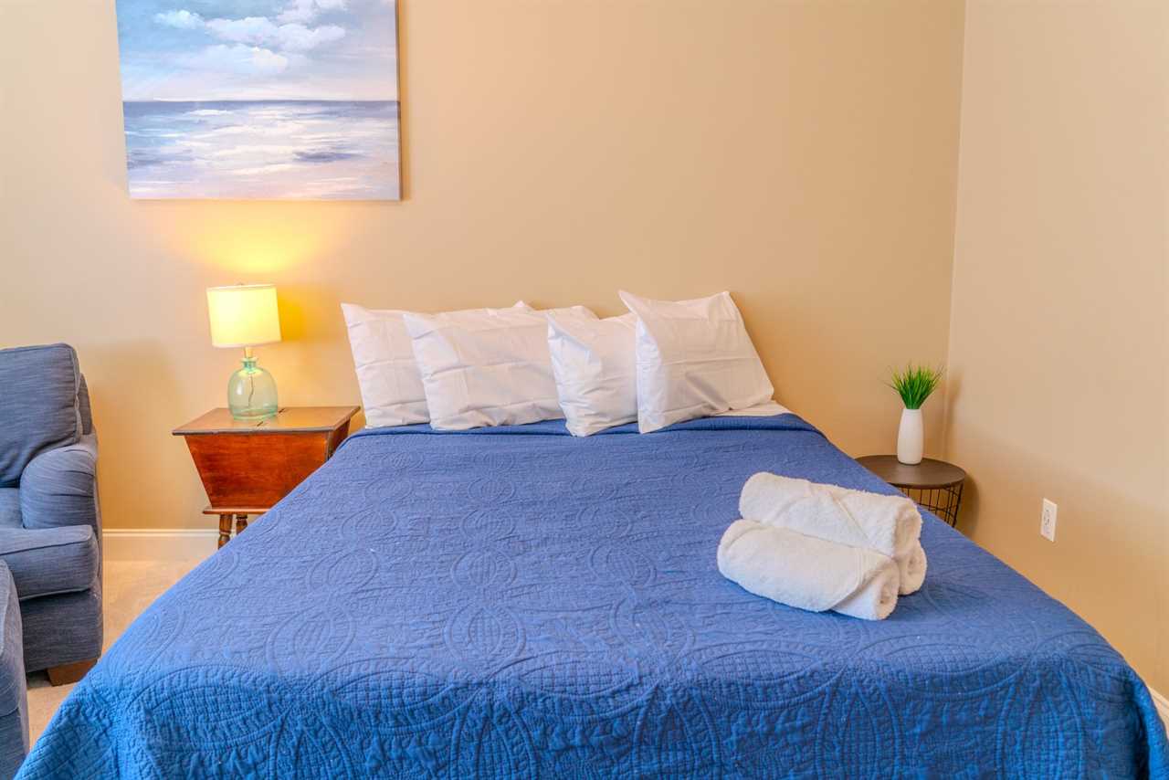 All bath towels, toiletries, bedding, and linens are provided. We also supply starter amenities such as toilet paper, paper towels, soap, shampoo, lotion, and conditioner for each reservation. Centrally located within the apartment is a laundry and utility closet equipped with a full-sized washer and dryer. There is also a half bathroom located in the hallway.