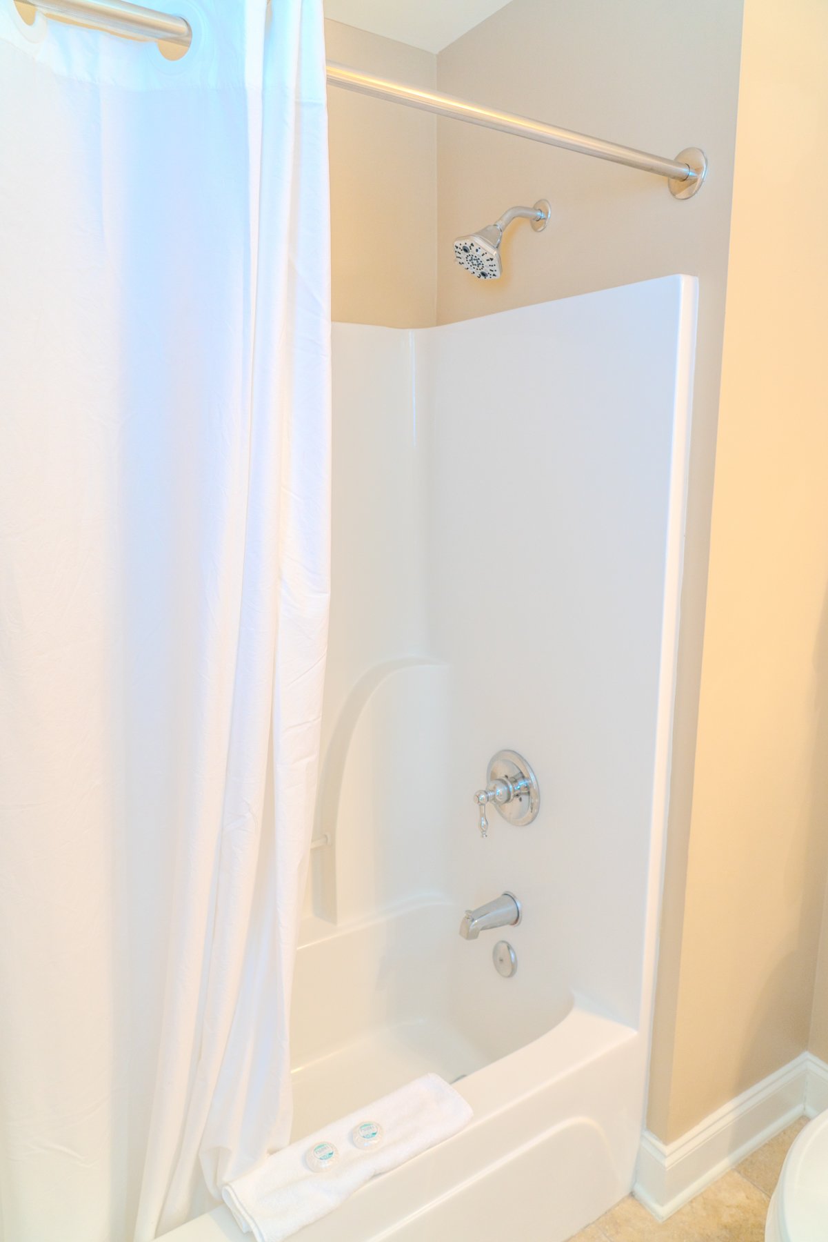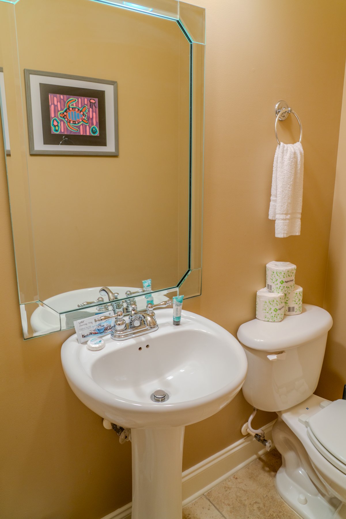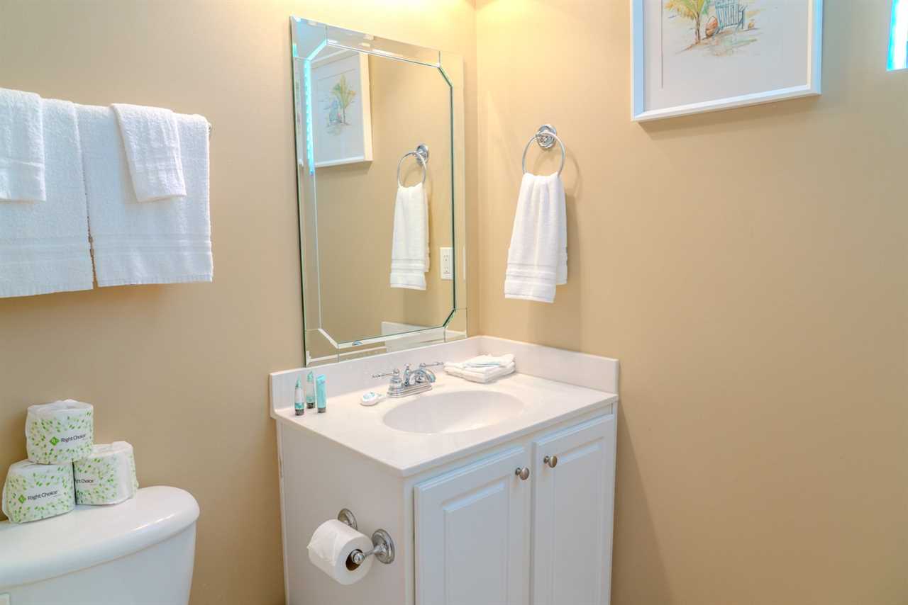 All bath towels, toiletries, bedding, and linens are provided. We also supply starter amenities such as toilet paper, paper towels, soap, shampoo, lotion, and conditioner for each reservation. Centrally located within the apartment is a laundry and utility closet equipped with a full-sized washer and dryer. There is also a half bathroom located in the hallway.