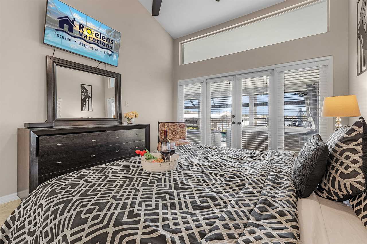 Fully Equipped Kitchen & Spacious Living Area: The gourmet kitchen boasts stainless steel appliances, granite countertops, and ample space to prepare delicious meals. The open-concept design seamlessly connects the kitchen, dining, and living areas, making it ideal for entertaining family and friends. Gather in the cozy living room with a large Smart TV for a movie night or relax with a good book while enjoying scenic water views.