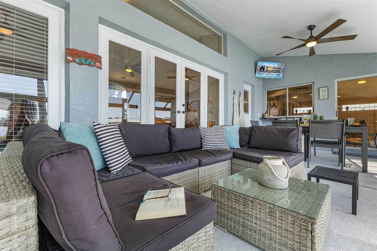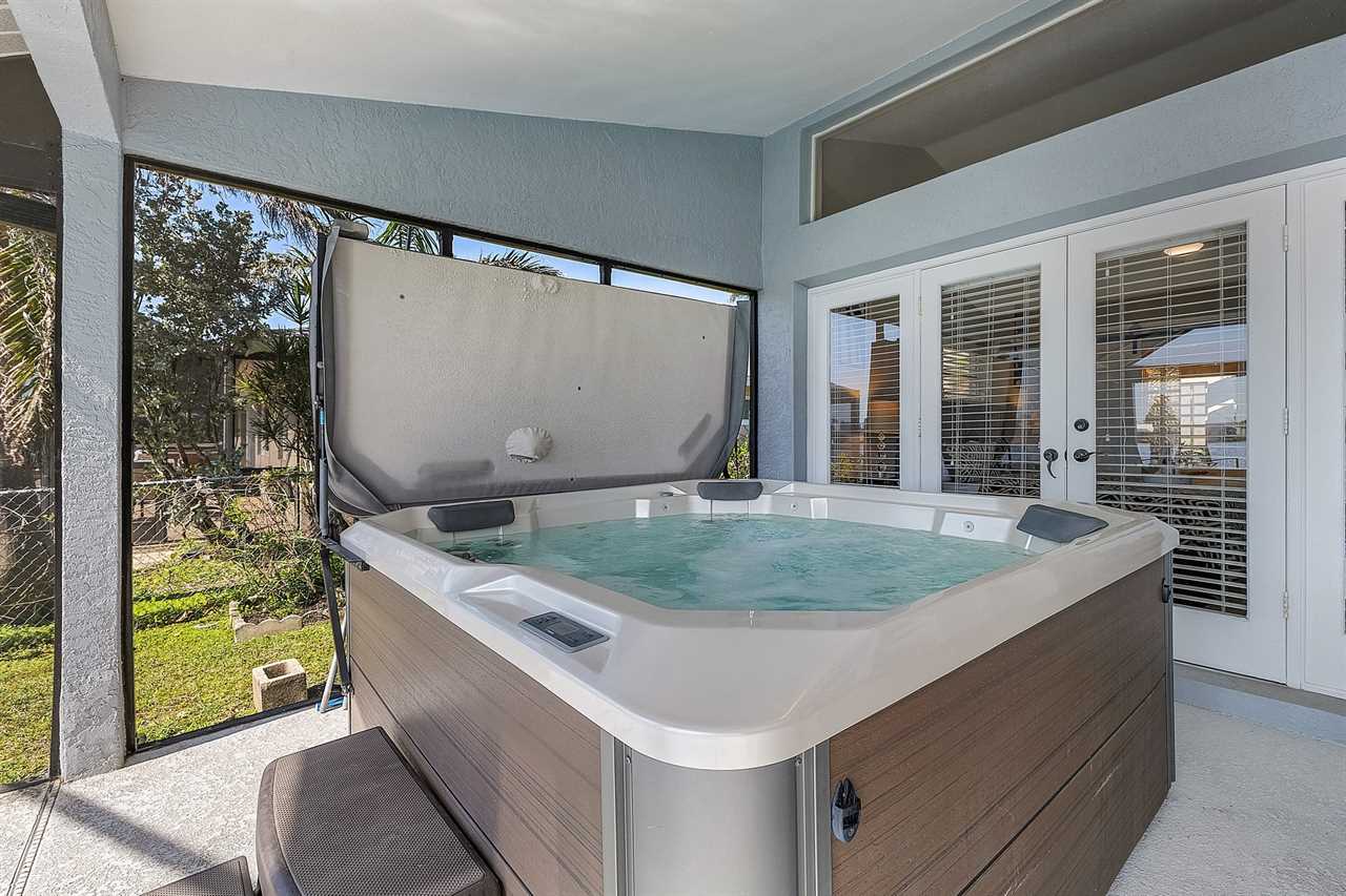 Private Heated Pool & Stand-Alone Hot Tub: Soak up the sun in your own private oasis! The private heated pool invites you to take a refreshing dip, while the standalone hot tub offers a relaxing spot to unwind under the stars. The expansive lanai, complete with a TV and comfortable lounge seating, makes for the perfect outdoor retreat.