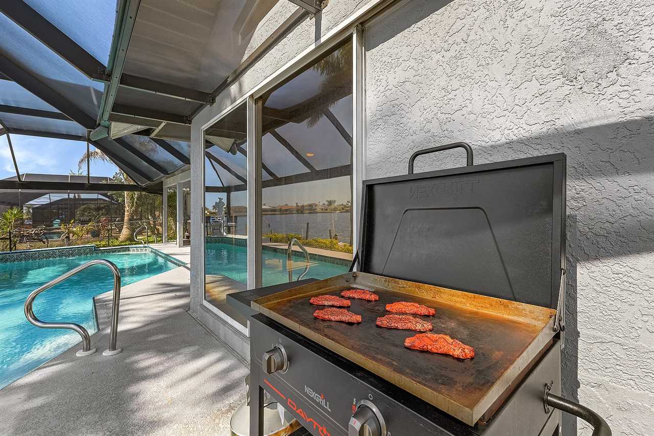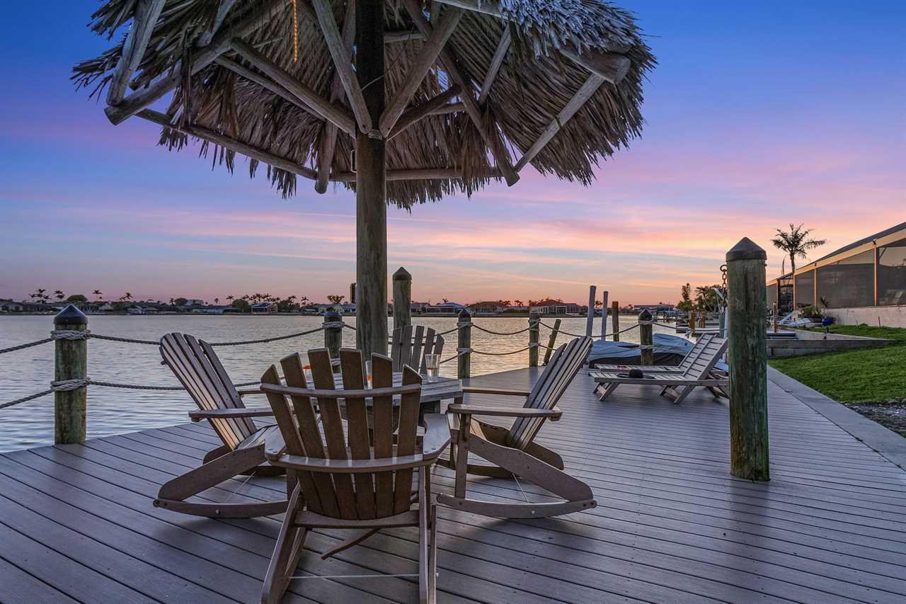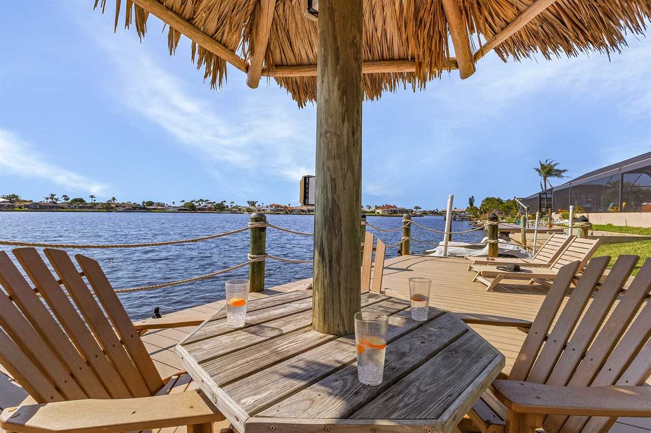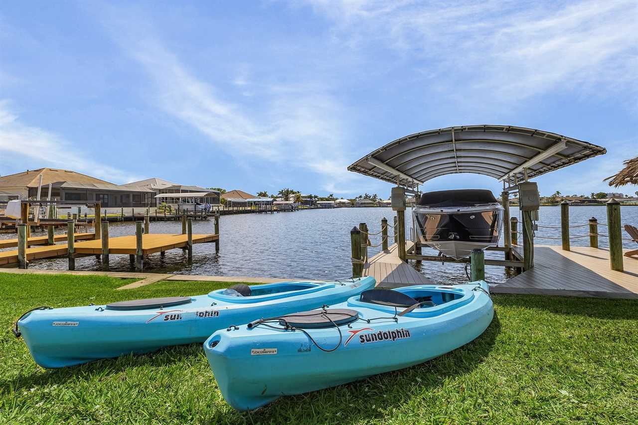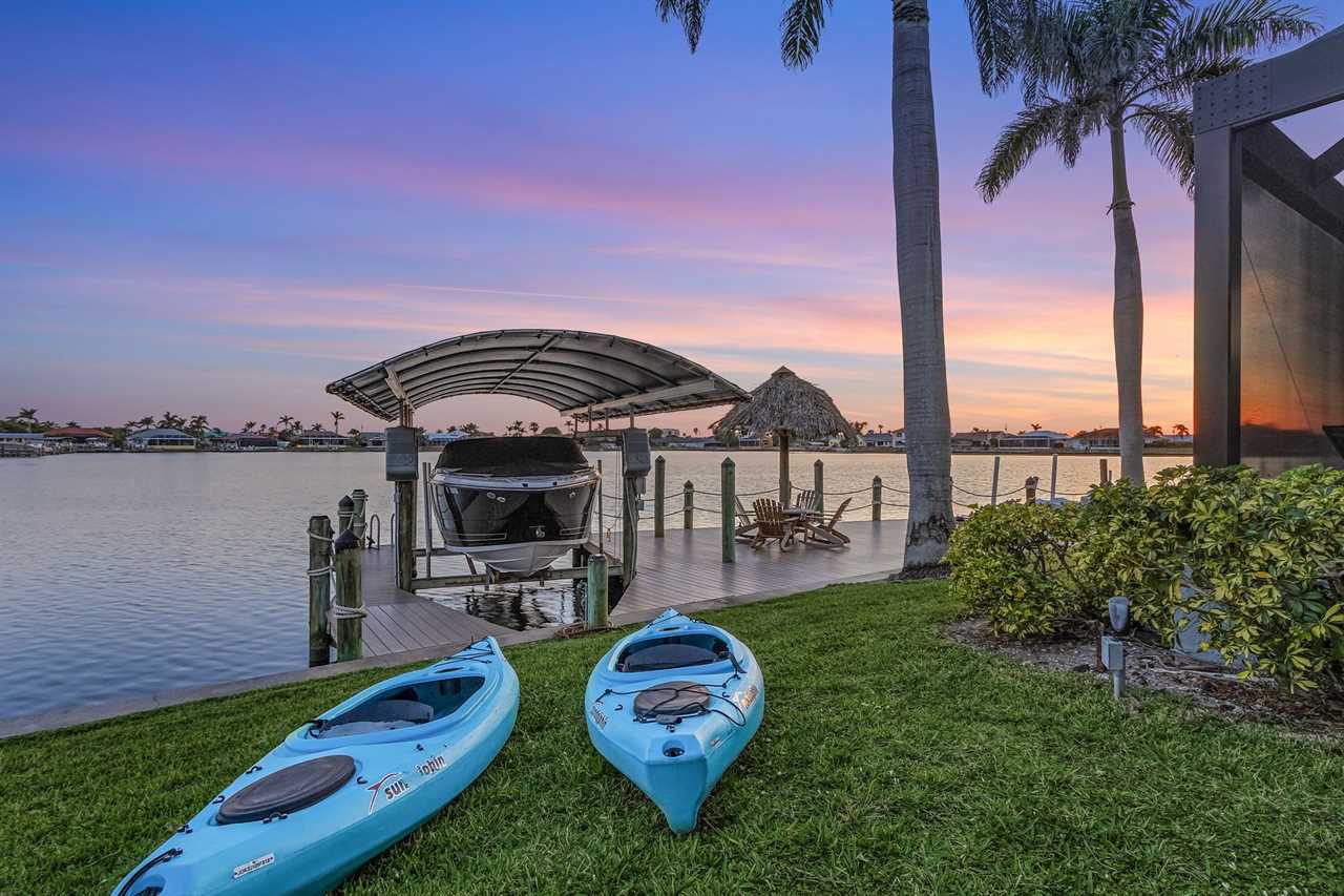 Outdoor Tiki Hut & Dock: Experience the best of waterfront living! Lounge under the charming Tiki Hut while enjoying a cold drink and taking in the spectacular canal views. The spacious dock is perfect for fishing, sunbathing, or launching the complimentary kayaks for an adventurous paddle through Cape Coral's waterways.