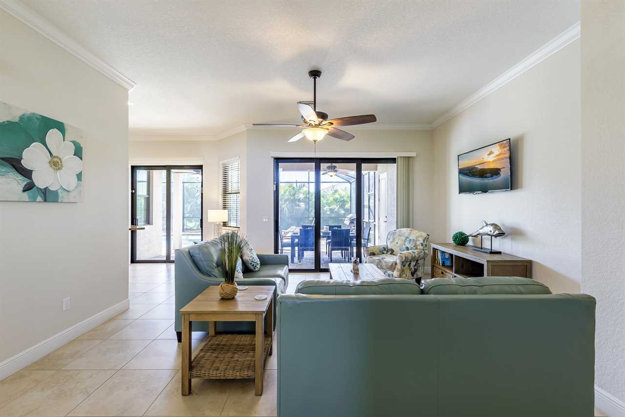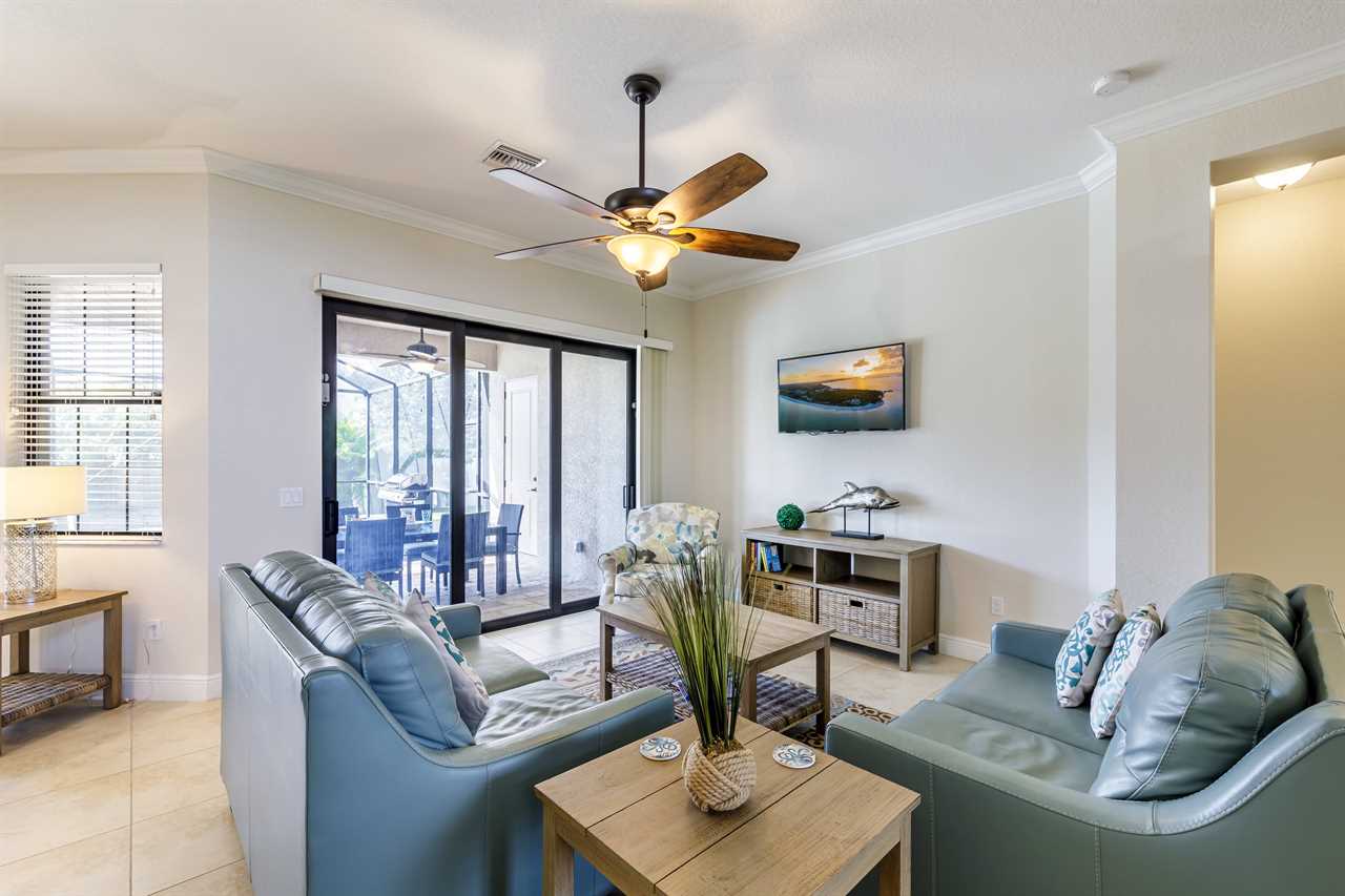 This spacious 3-bedroom, 2-bathroom + den villa boasts over 2,000 sq. ft. of natural light through its sliding glass doors and grand windows, giving you and your guests the relaxation you deserve on your much-needed Florida getaway.