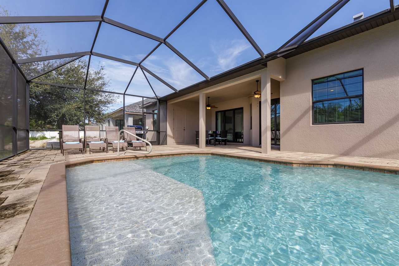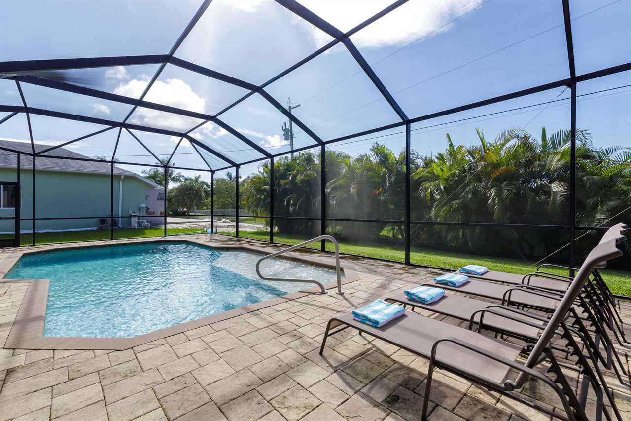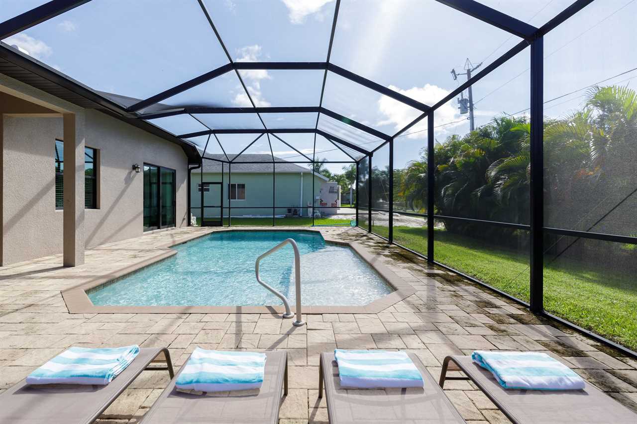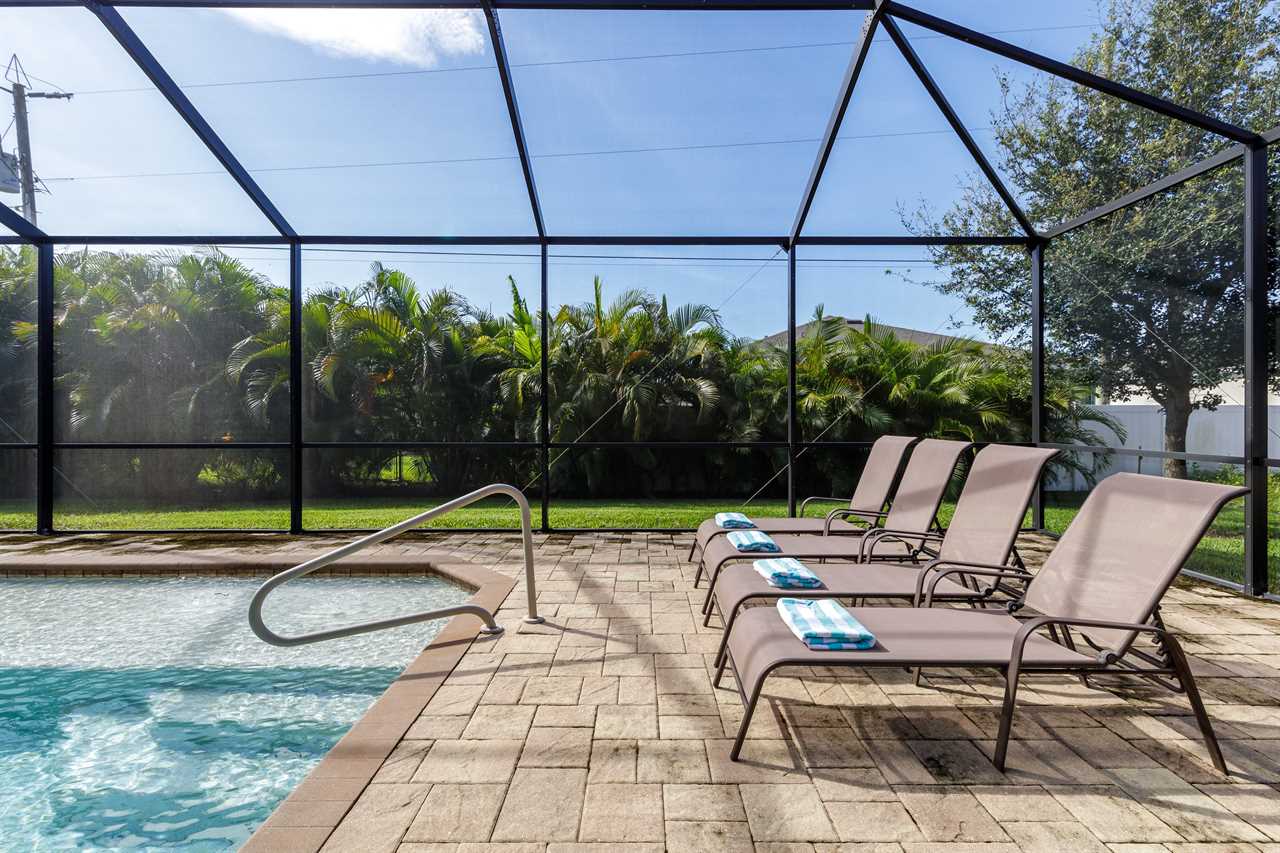 Expansive heated pool with screened lanai