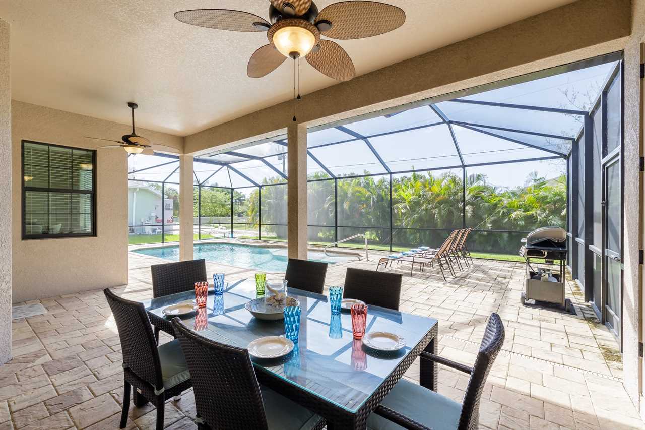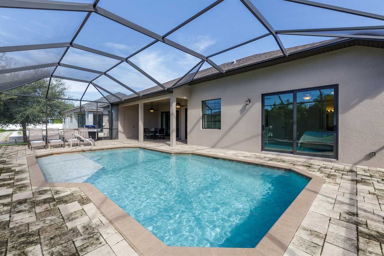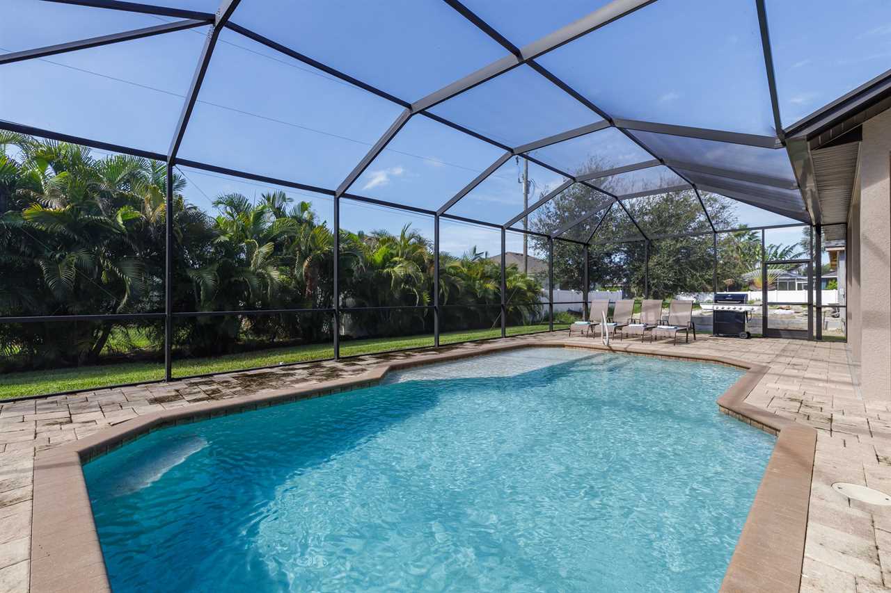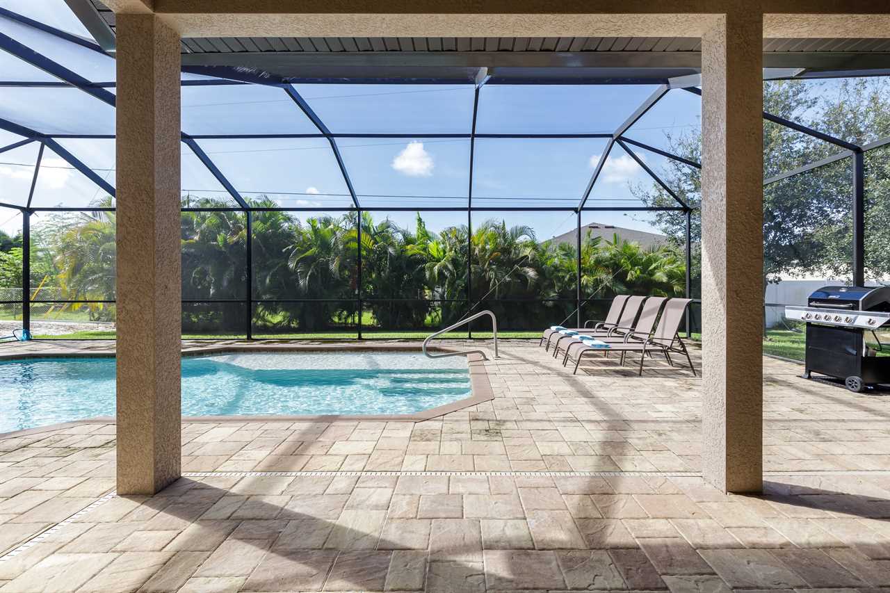 Expansive heated pool with screened lanai