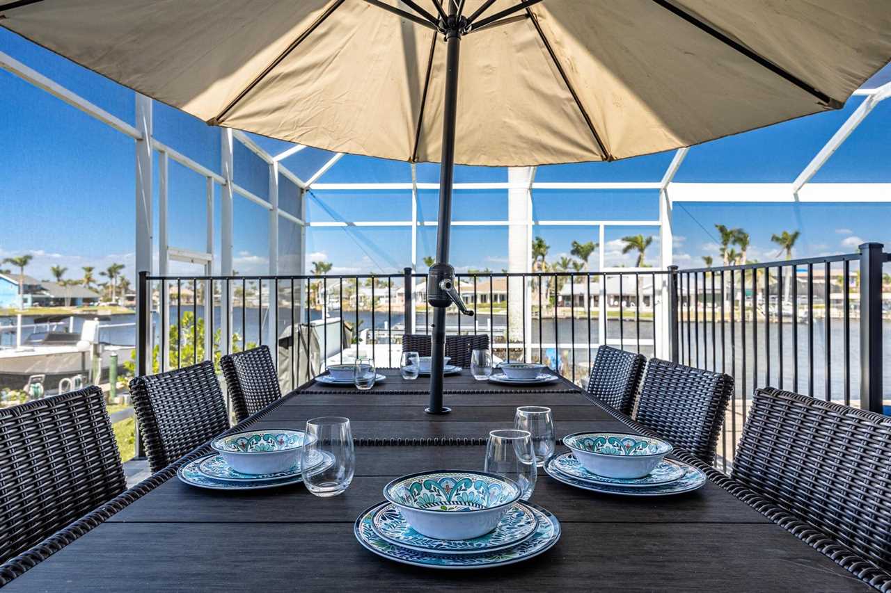 Screened Lanai with TV & Lounge Area: Relax in the shade with a good book, catch up on your favorite shows from the outdoor TV, or simply kick back and enjoy the cool breeze with a drink in hand.
