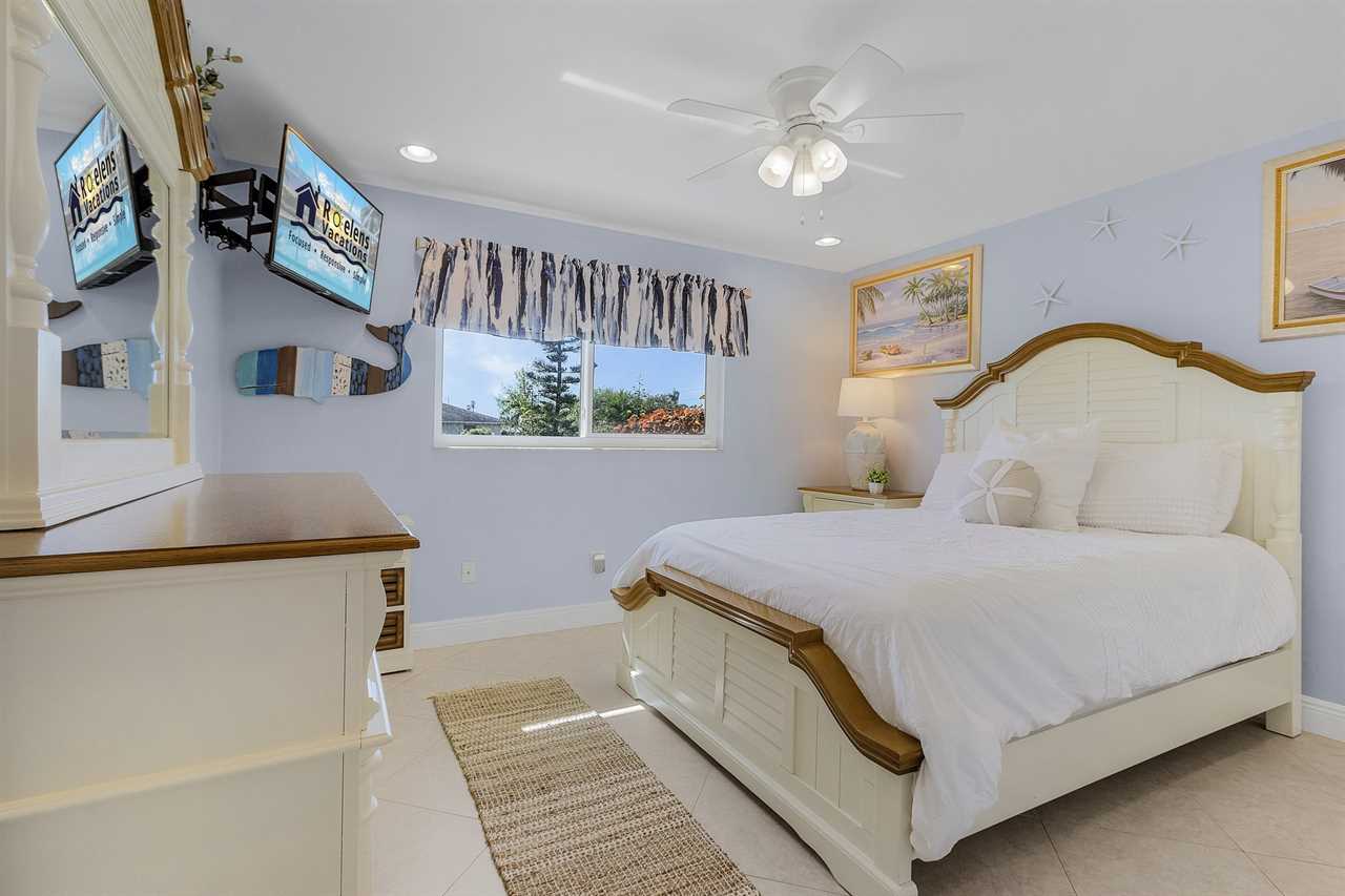 The Master bedroom with its king-size bed. Beautifully decorated, this bedroom will leave you comforted from the moment you enter. The first guest room is spacious and furnished with a queen-size bed. The second guest room is has 2 twin beds. No matter which room you choose, you will find they all are exactly what you need to completely unwind and get away from it all.