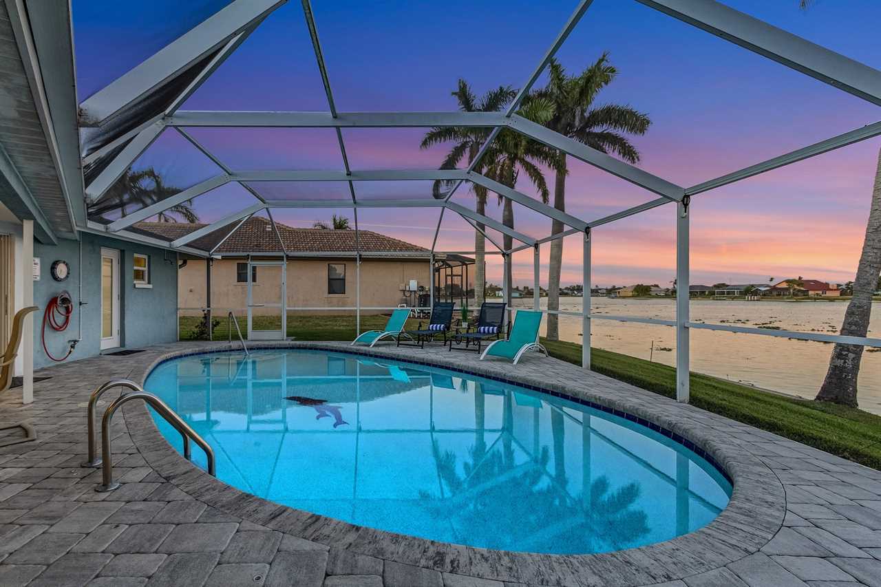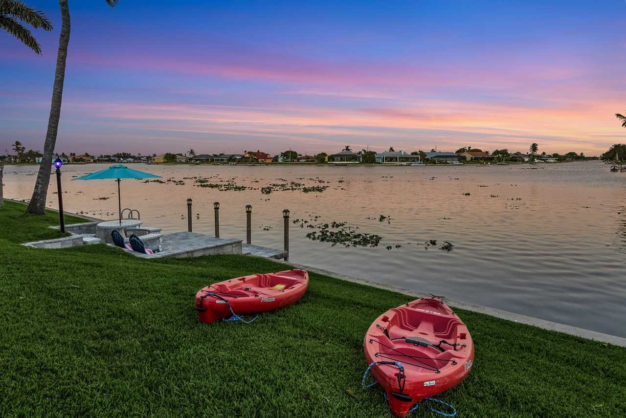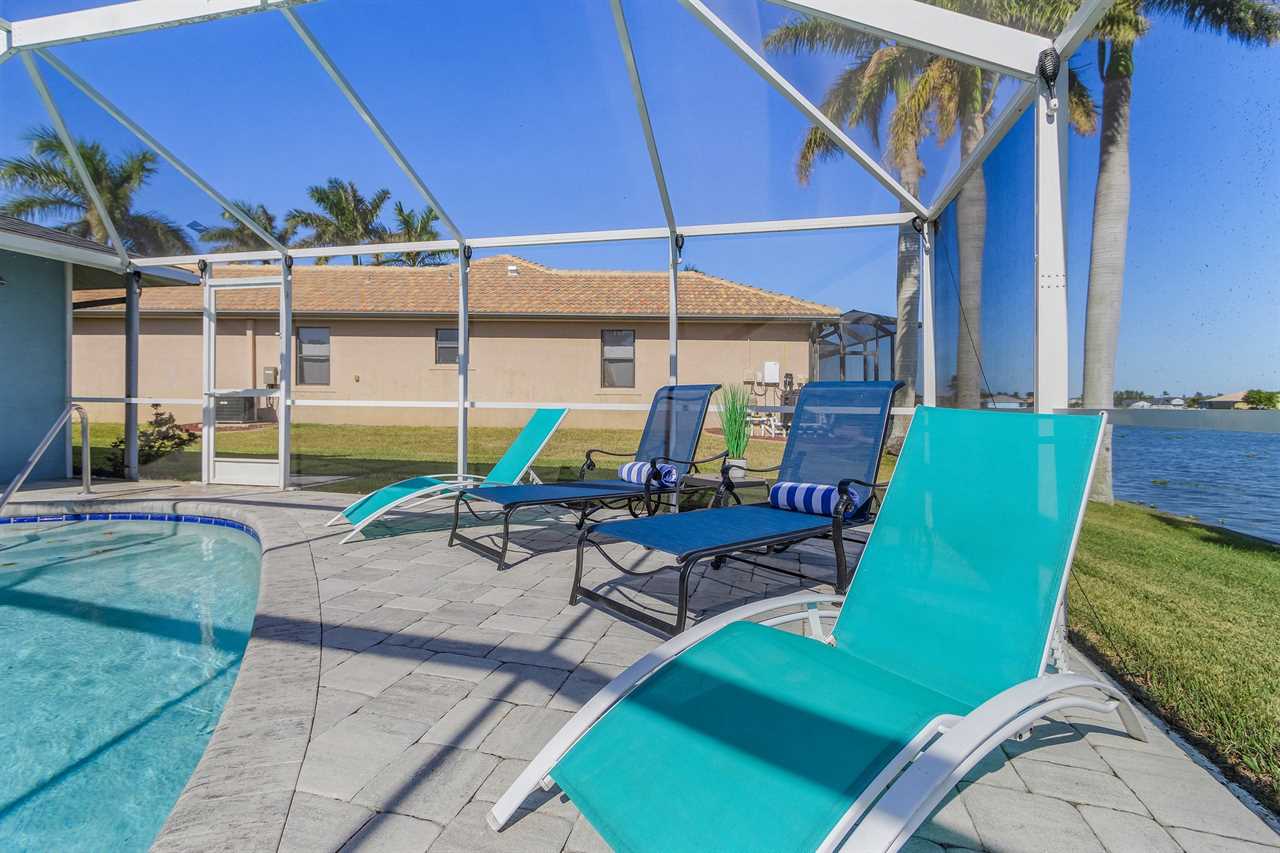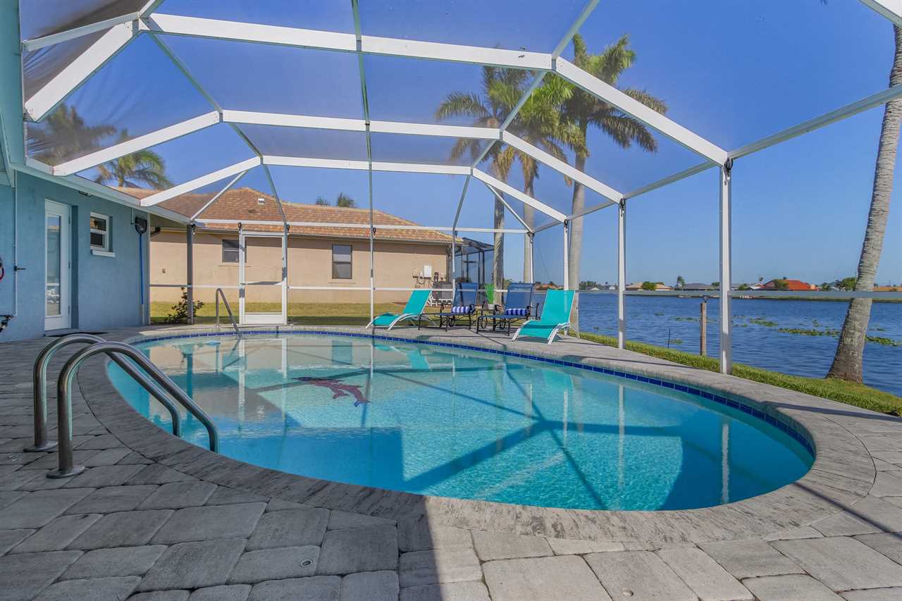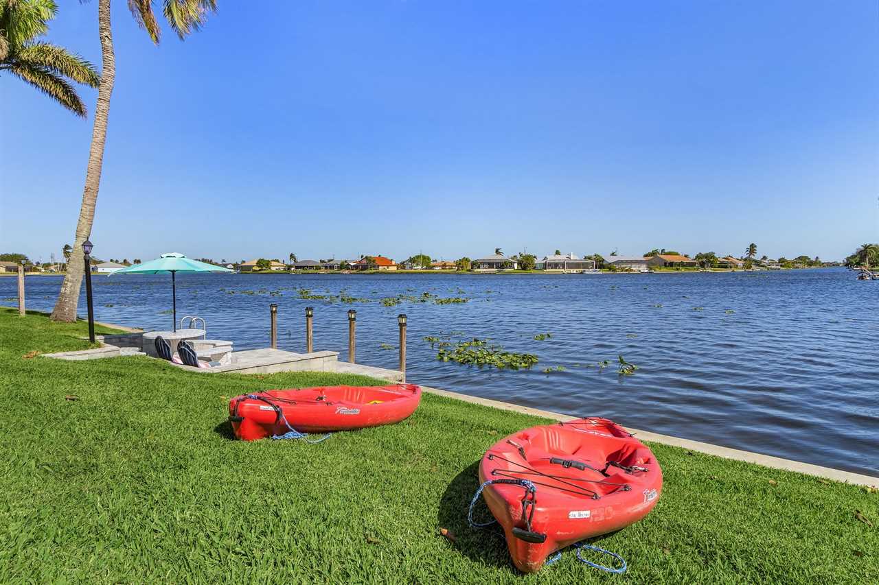 WHAT A VIEW of SHAMROCK LAKE! Home sits on the BEST FRESHWATER Canal fun for kayaking, fishing, fantastic outdoor entertainment space, and a heated pool!! Home comes equipped with beach chairs, umbrellas, and coolers for your day of fun in the sun!!! This spectacular home is located in a prime SE Cape Coral neighborhood close to shopping, restaurants, and local entertainment. Opening the front door, you will feel submersed into another world. This 3 Bedroom – 2 Bathroom villa with sleeping capabilities for 8 with queen-sized sleeper sofa - boasts just over 1700 sq ft, making Coral Palace the perfect Villa for your much-needed Southwest Florida vacation.