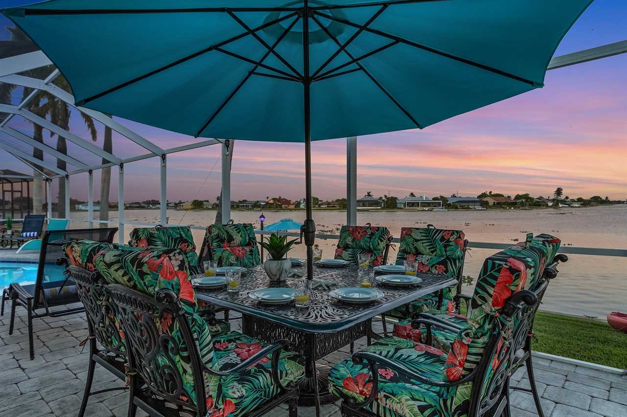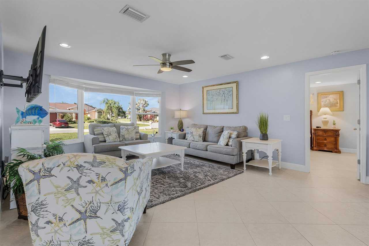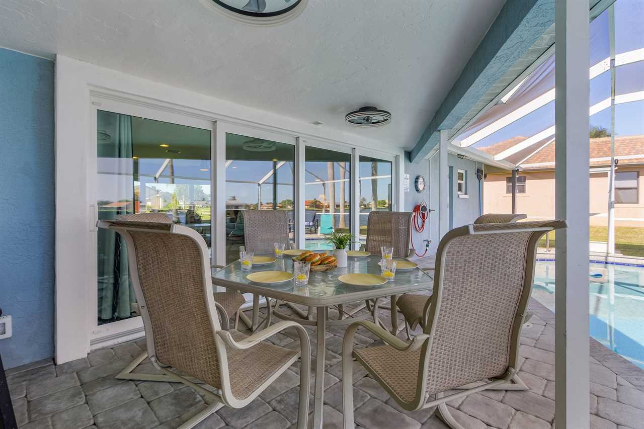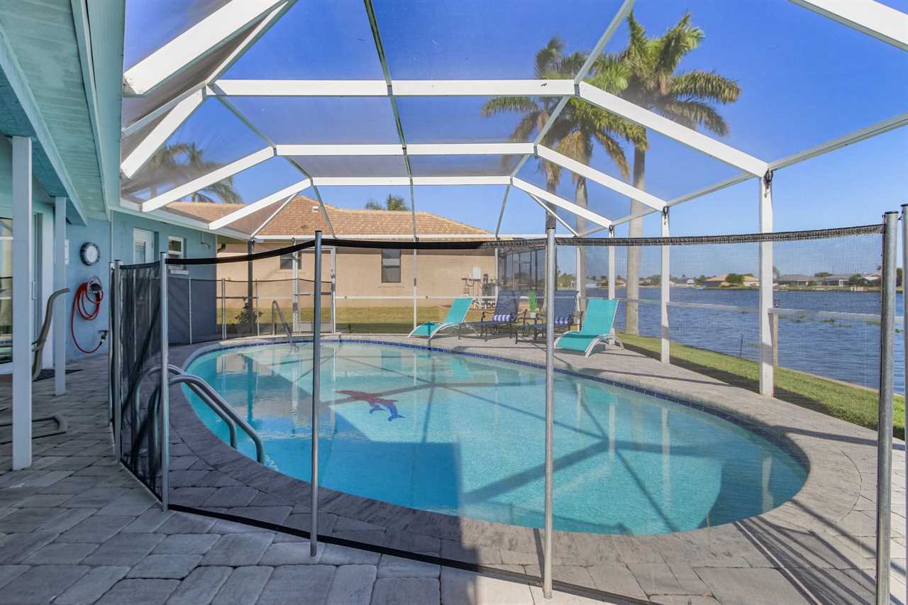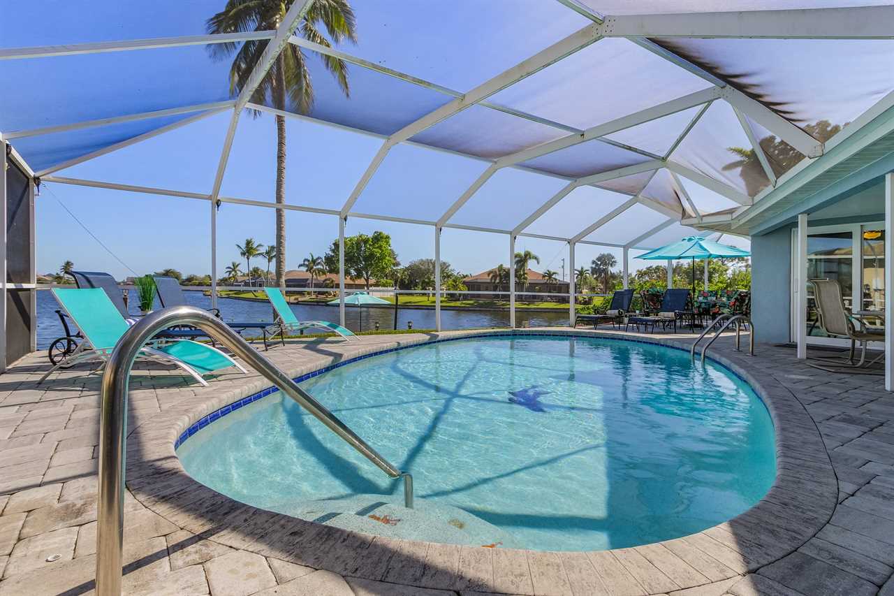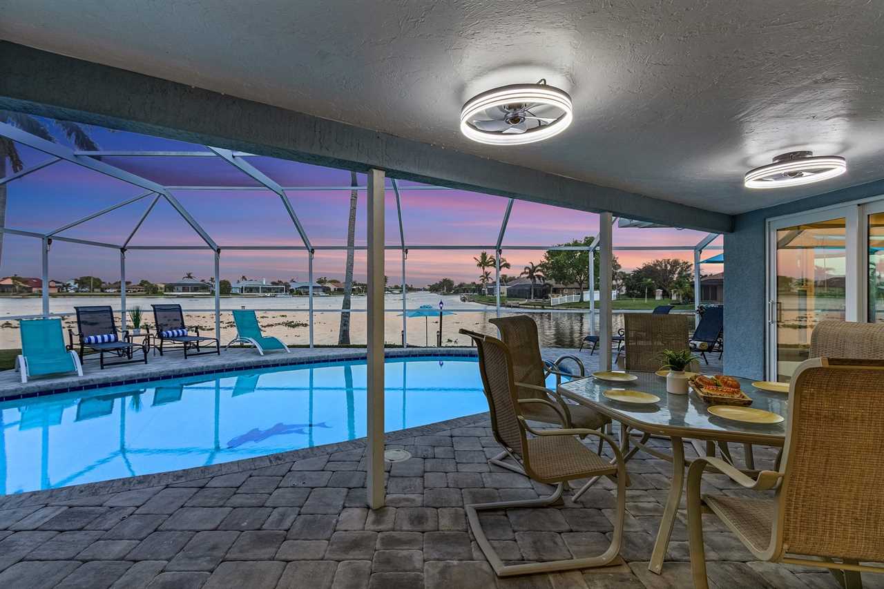 WHAT A VIEW of SHAMROCK LAKE! Home sits on the BEST FRESHWATER Canal fun for kayaking, fishing, fantastic outdoor entertainment space, and a heated pool!! Home comes equipped with beach chairs, umbrellas, and coolers for your day of fun in the sun!!! This spectacular home is located in a prime SE Cape Coral neighborhood close to shopping, restaurants, and local entertainment. Opening the front door, you will feel submersed into another world. This 3 Bedroom – 2 Bathroom villa with sleeping capabilities for 8 with queen-sized sleeper sofa - boasts just over 1700 sq ft, making Coral Palace the perfect Villa for your much-needed Southwest Florida vacation.