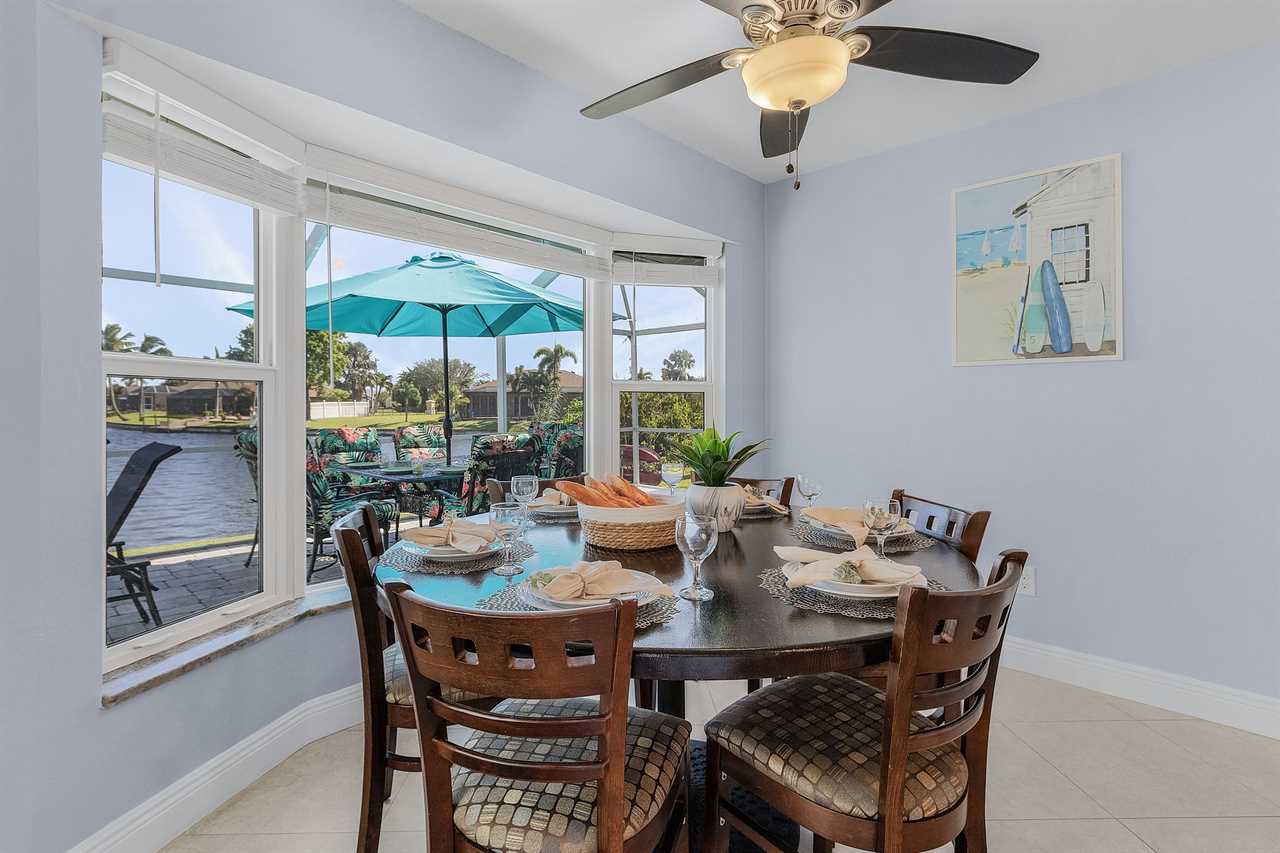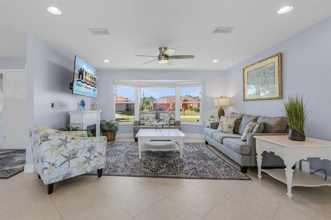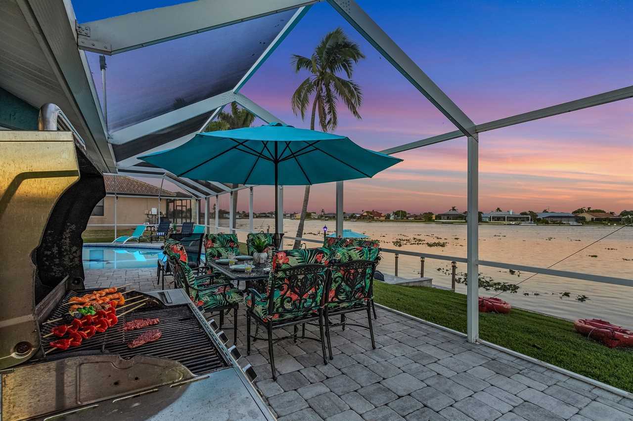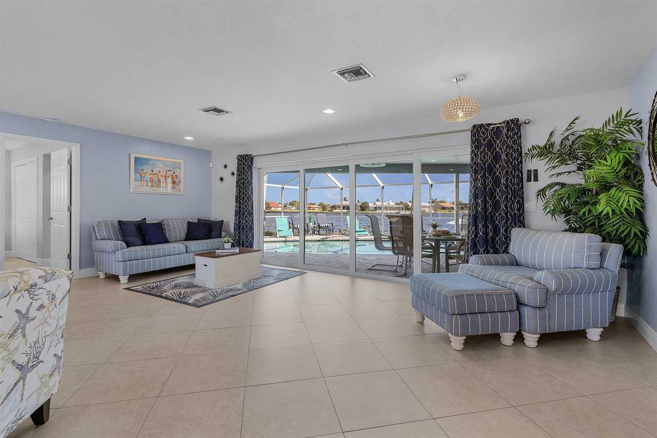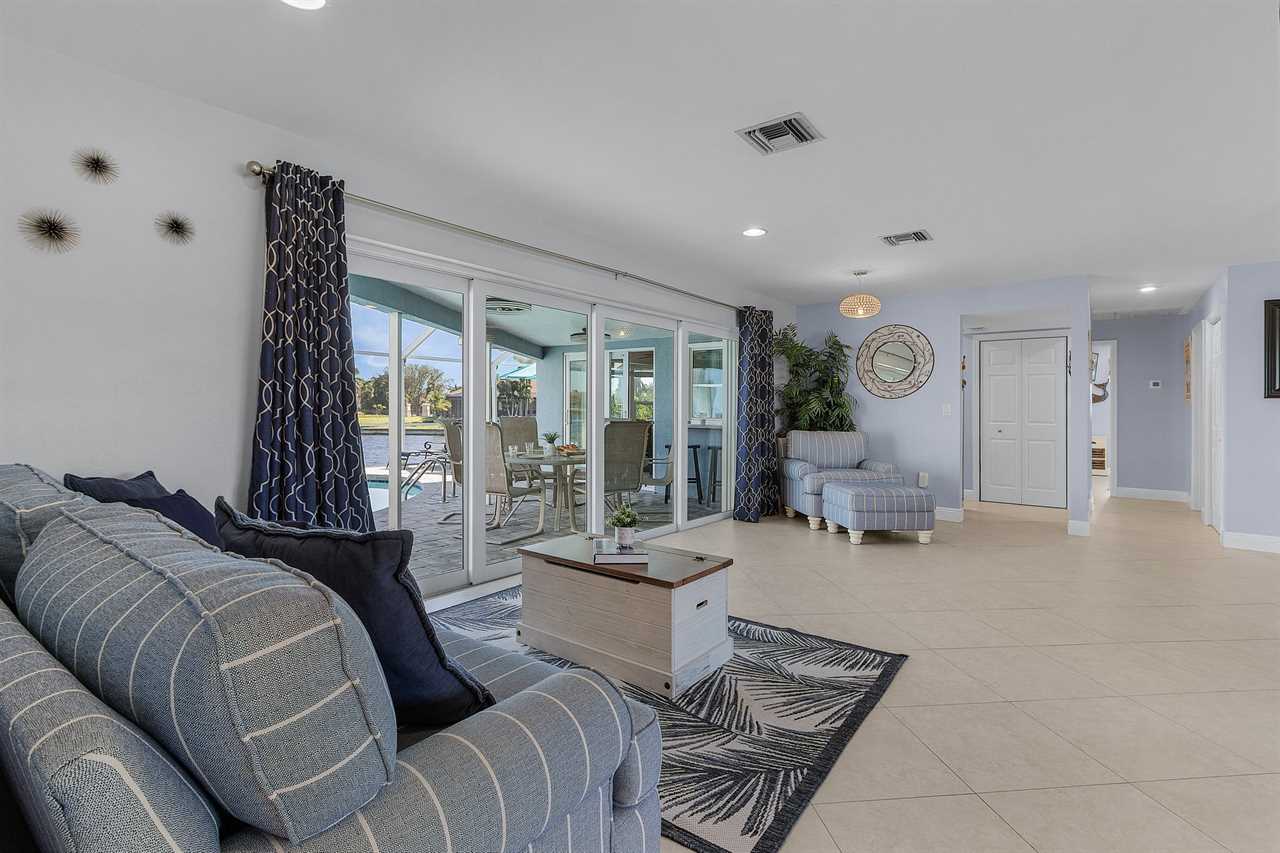 WHAT A VIEW of SHAMROCK LAKE! Home sits on the BEST FRESHWATER Canal fun for kayaking, fishing, fantastic outdoor entertainment space, and a heated pool!! Home comes equipped with beach chairs, umbrellas, and coolers for your day of fun in the sun!!! This spectacular home is located in a prime SE Cape Coral neighborhood close to shopping, restaurants, and local entertainment. Opening the front door, you will feel submersed into another world. This 3 Bedroom – 2 Bathroom villa with sleeping capabilities for 8 with queen-sized sleeper sofa - boasts just over 1700 sq ft, making Coral Palace the perfect Villa for your much-needed Southwest Florida vacation.