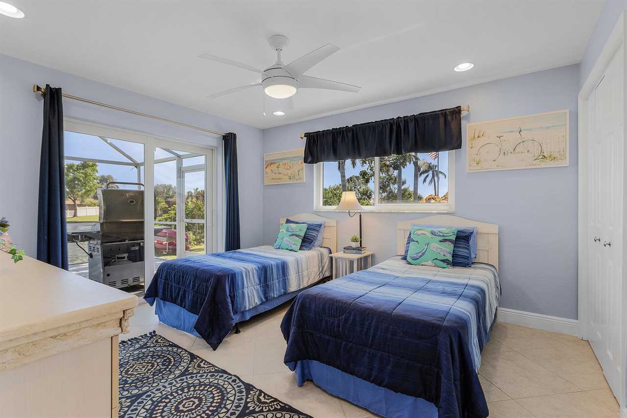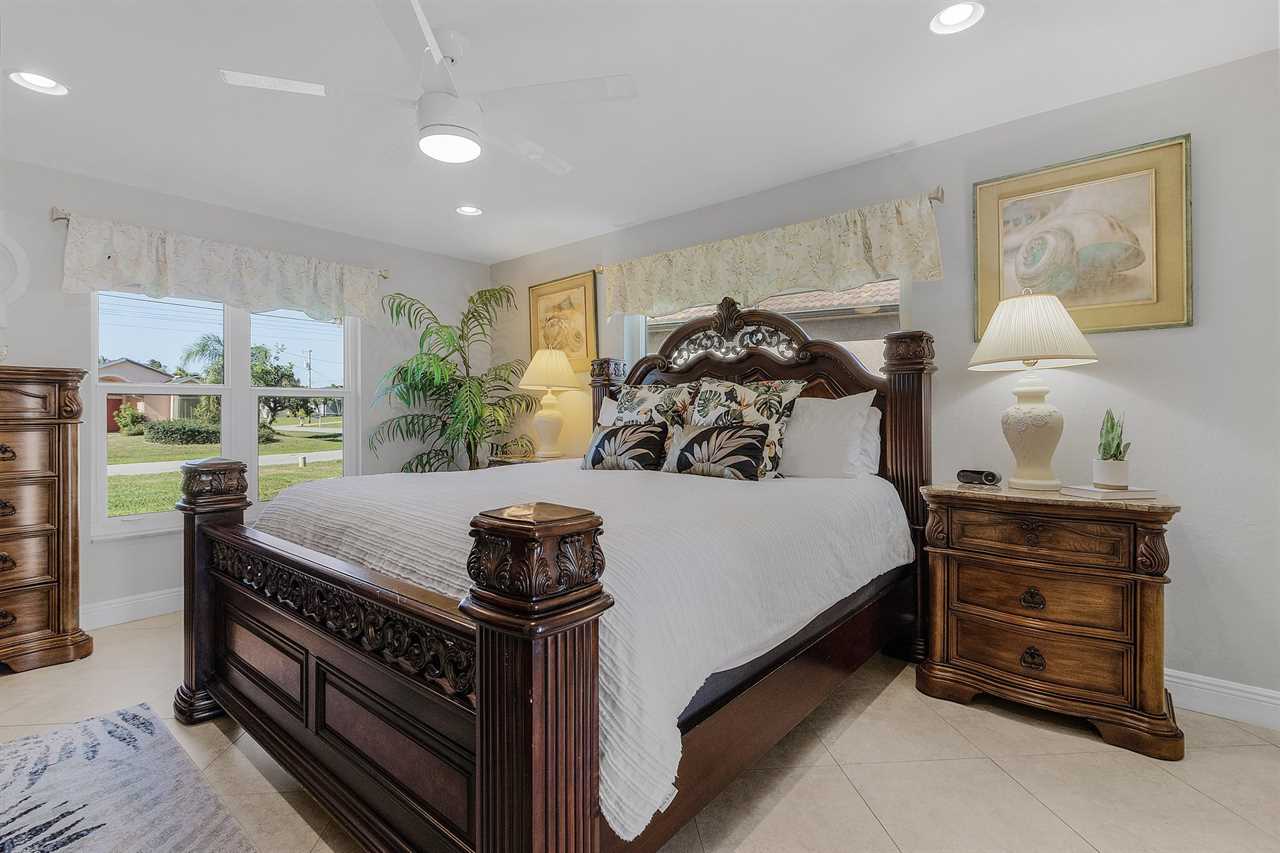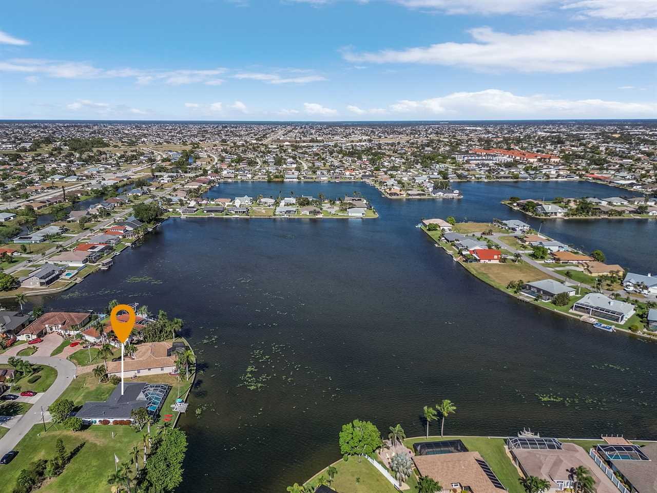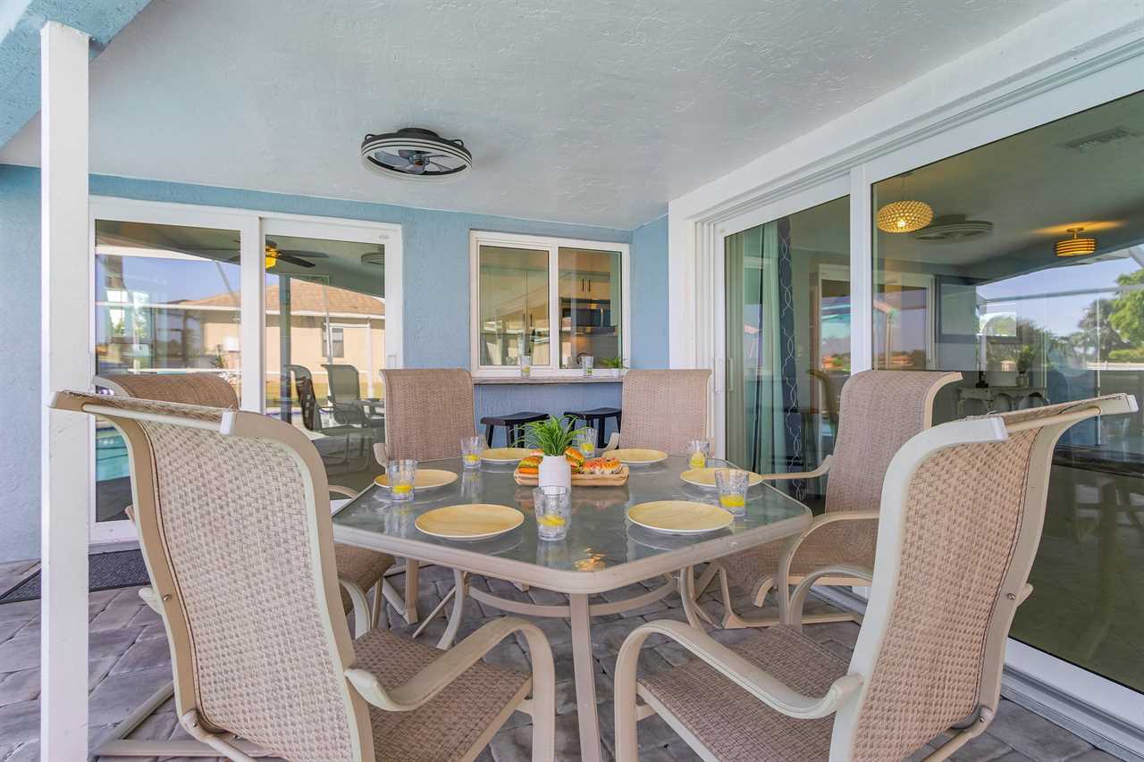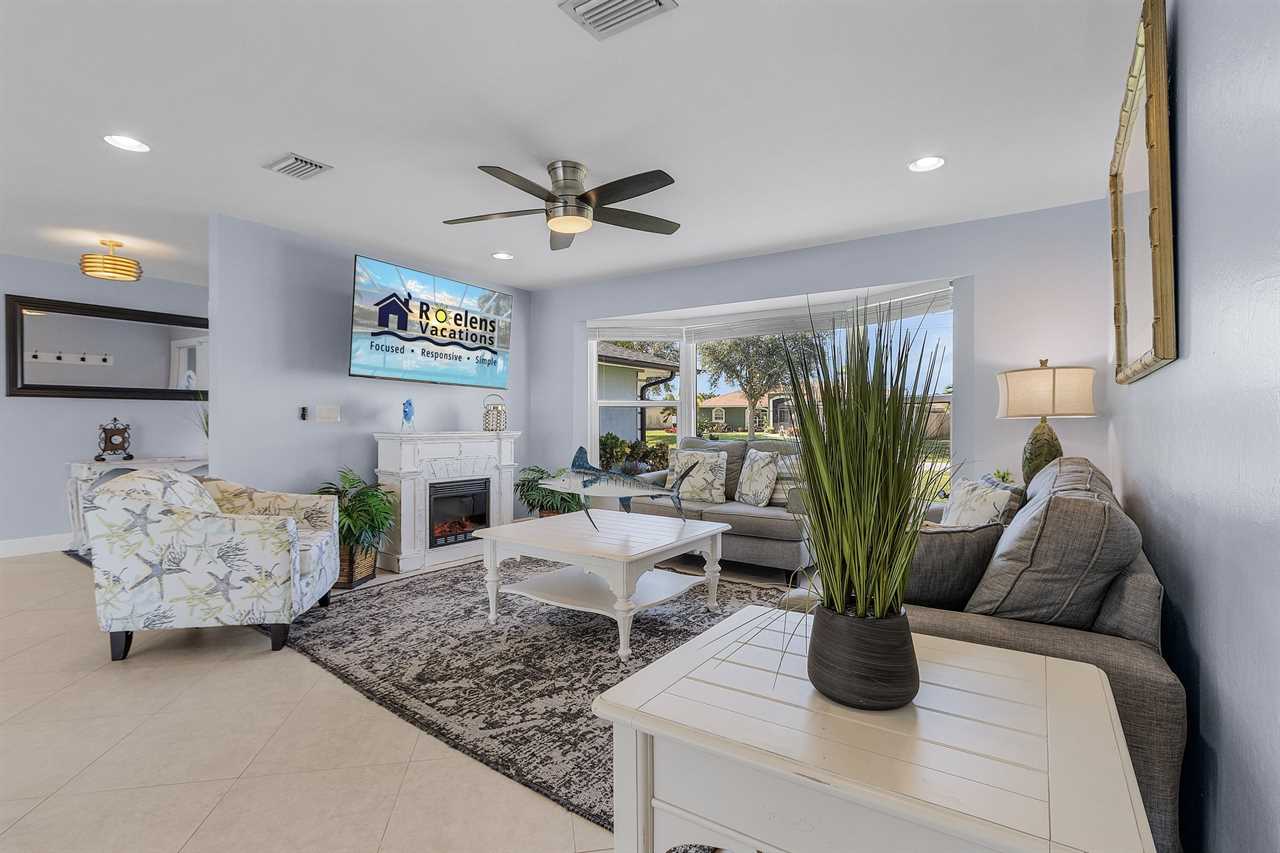 WHAT A VIEW of SHAMROCK LAKE! Home sits on the BEST FRESHWATER Canal fun for kayaking, fishing, fantastic outdoor entertainment space, and a heated pool!! Home comes equipped with beach chairs, umbrellas, and coolers for your day of fun in the sun!!! This spectacular home is located in a prime SE Cape Coral neighborhood close to shopping, restaurants, and local entertainment. Opening the front door, you will feel submersed into another world. This 3 Bedroom – 2 Bathroom villa with sleeping capabilities for 8 with queen-sized sleeper sofa - boasts just over 1700 sq ft, making Coral Palace the perfect Villa for your much-needed Southwest Florida vacation.