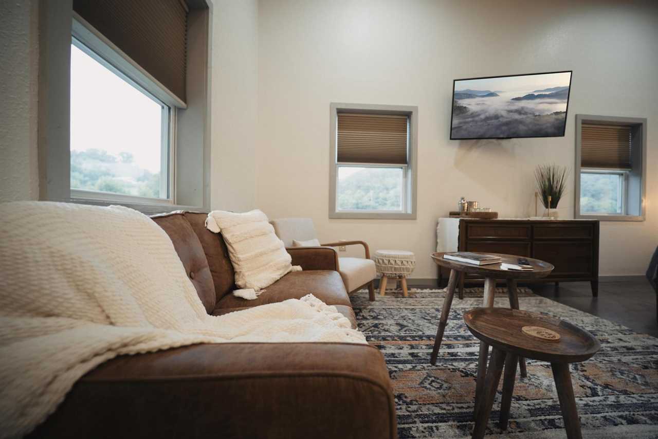 The Boho barn is located in a country setting on the back acreage of our 10-acre farm. The acreage is off a 2-lane main back road (River Divide Road) into Pigeon Forge. Our neighbors have horses, goats, and dogs. They know when it's supper time and get pretty excited about it. You may hear Smoky the Hound Dog at that time. Although you sit at the back of our farm, sound travels in the holler, so you may hear occasional traffic noise when outside.
