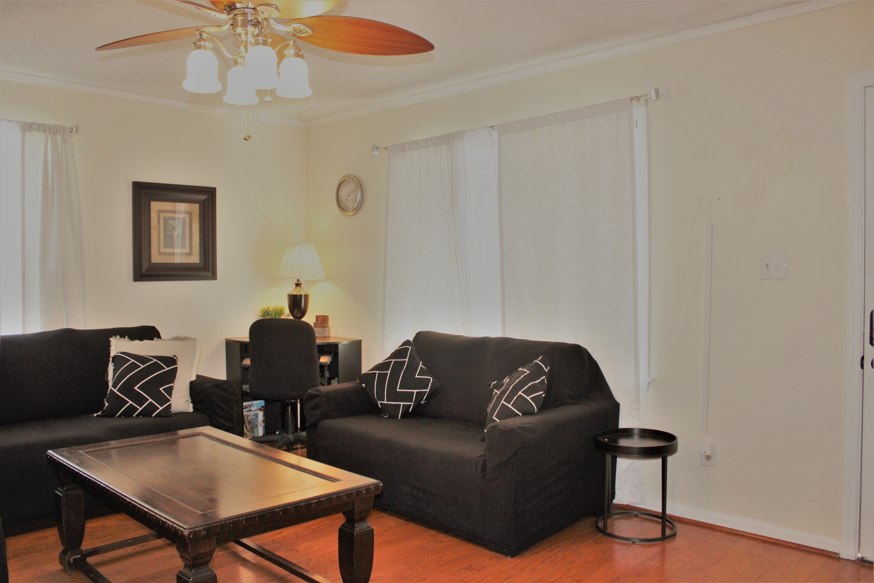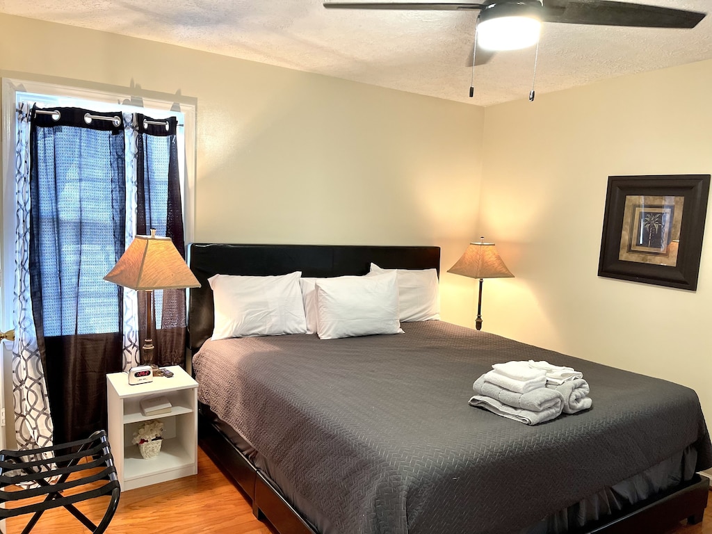 This peaceful and centrally-located home is near the base and downtown businesses. Enjoy being out of the way, surrounded by nature. Enjoy beautiful greenery right outside of the window, minimal neighbors who are spread out and hard to hear, enjoy a peaceful and uninterrupted stay, with no street noise. You will feel as if you're in the country, while still in the middle of the city, minutes from grocery stores and restaurants and 15-20 minutes from the beach and shops.