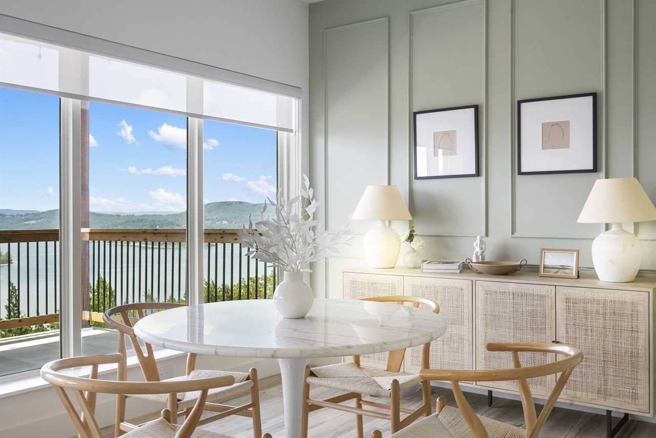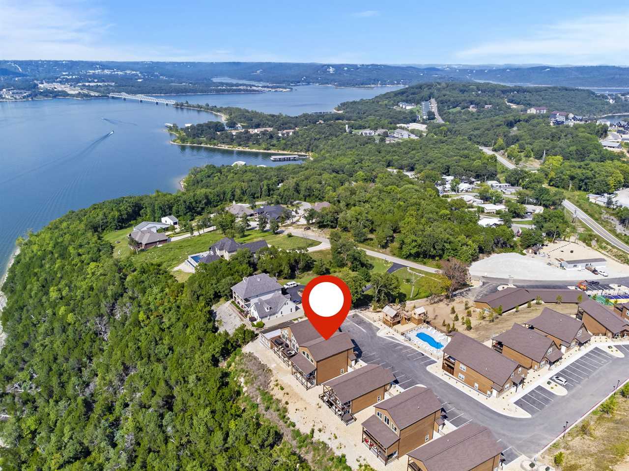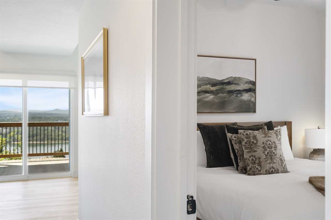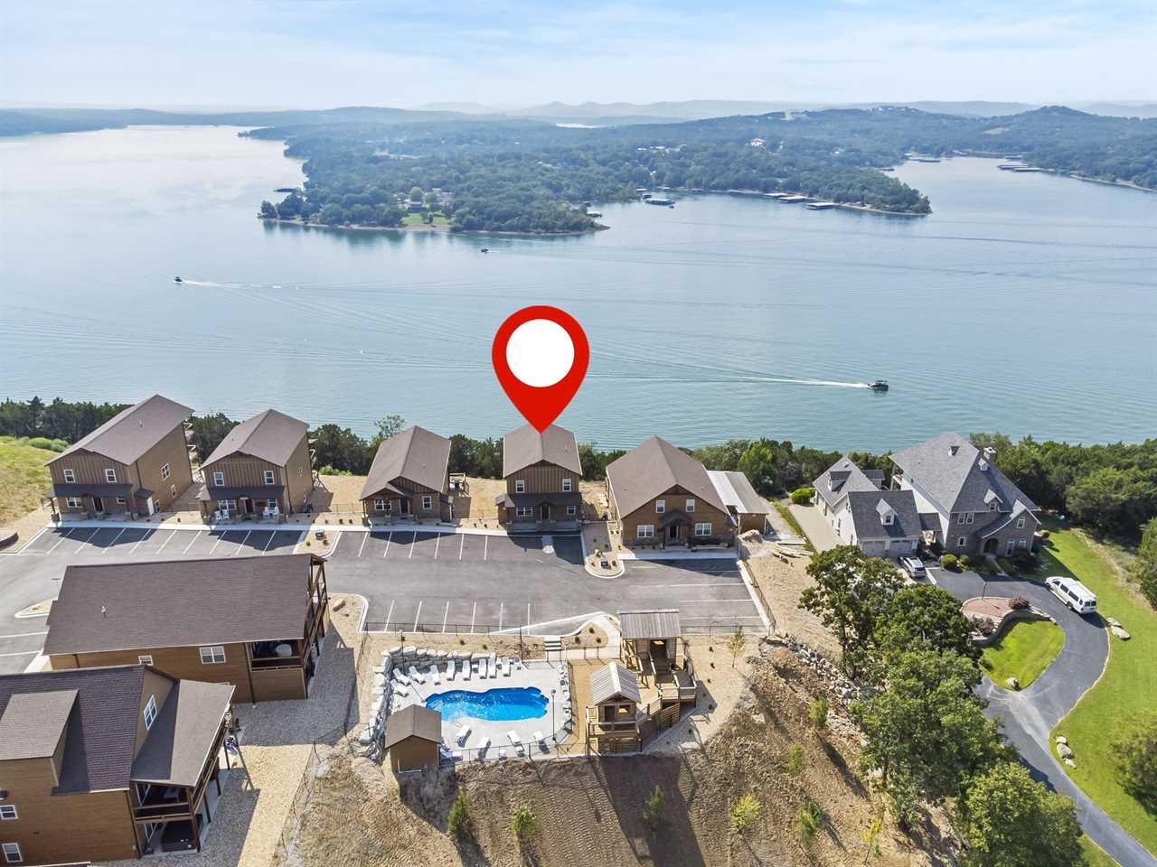 Step inside where the warmth of the living area welcomes you. Cozy up next to the elegant fireplace, the perfect companion for those cooler evenings, and let the gentle flames lull you into relaxation. Floor-to-ceiling windows ensure that the breathtaking outside view is never too far away, inviting the beauty of nature indoors. For those who love to cook or simply enjoy a hearty meal, our fully-equipped kitchen awaits. Crafted with premium appliances and modern amenities such as bibs/utensils for the younger children, oils, and a spice cabinet, it is perfectly suited for creating gourmet dinners or quick snacks. The adjoining dining area provides space for memorable family feasts, all against the backdrop of the stunning lake views. On the main level, there are two King bedrooms with ensuite bathrooms, ensuring a great night's sleep. The main level deck also provides outdoor dining and lounging to enjoy beautiful, lake-view evenings with the family. Enjoy watching the children from the front patio that overlooks the community pool and tree house playground. Head upstairs, where you will enjoy lounging in the loft area with great views of Table Rock Lake. You will find the convenience of a home office for when duty calls. This level is home to two more king bedrooms with their ensuite bathrooms.