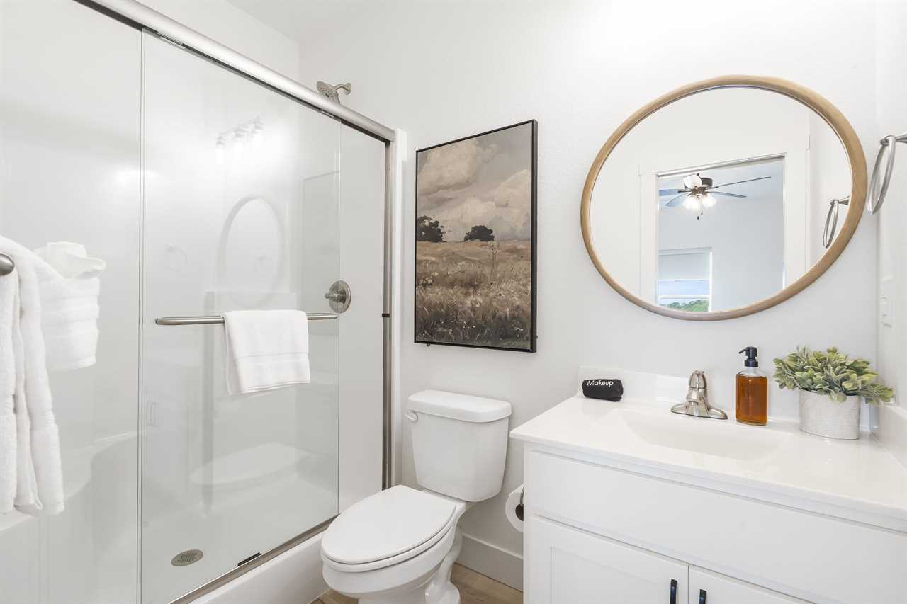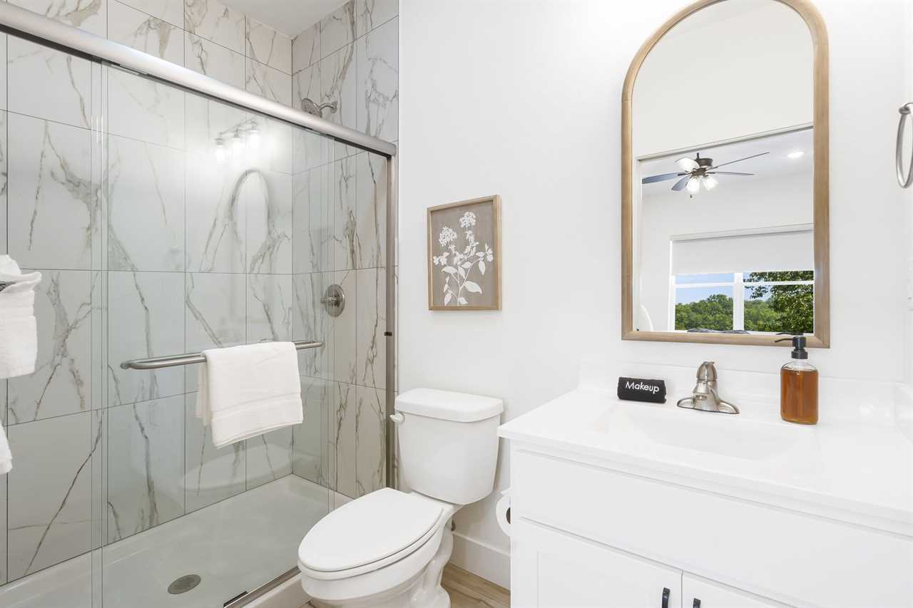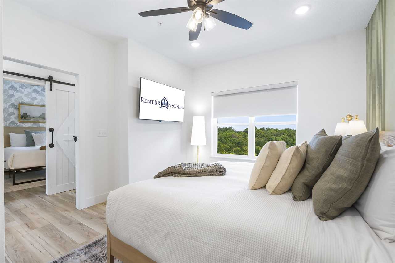 Each bedroom at the Sweet Spot offers a comfortable and luxurious place to rest and recharge after a long day on the lake or exploring the Branson area. There are two spacious king bedrooms located on the main level of the home. For the little family members, you will find a high chair, a pack-n-play with sheets, and a stroller. The upper level of the home holds two large king bedrooms offering a comfortable space to unwind. Both bedroom windows conveniently overlook the community pool and treehouse playground. The lower level of the home features a king bedroom and two bunk bedrooms, providing the perfect place for families or groups traveling together. Each bunk room has custom-built-in twin over queen beds. Each bedroom features an ensuite bathroom with amenities, ensuring maximum privacy and comfort.