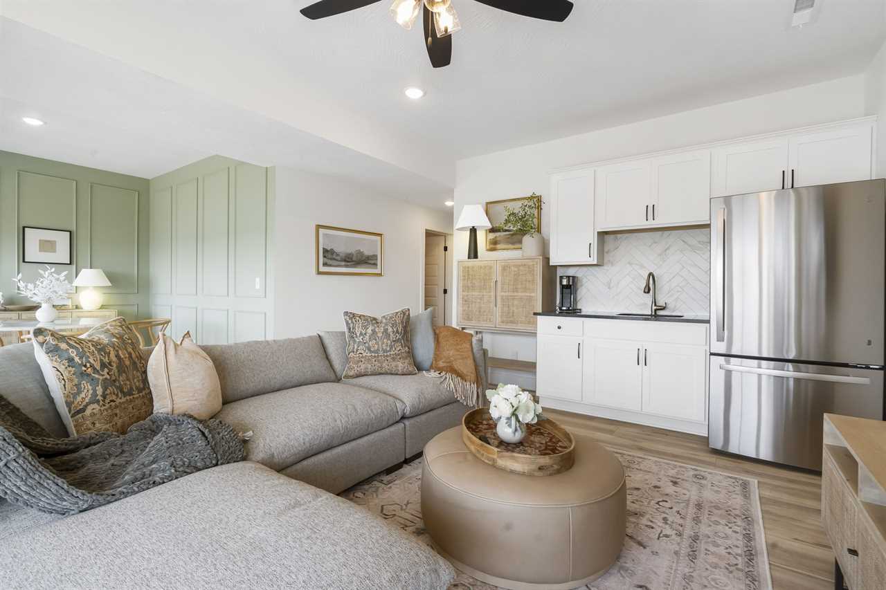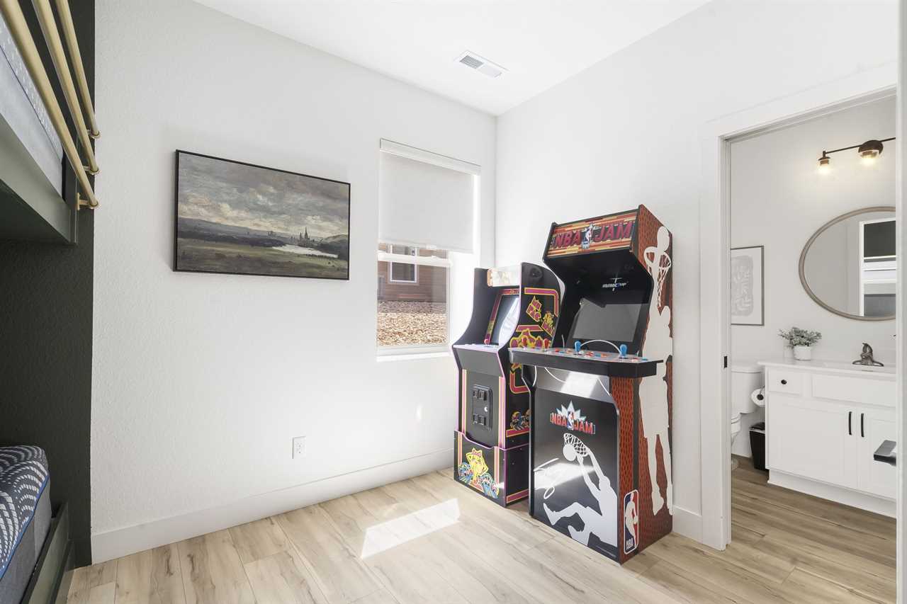 The lower level is a true Sweet Spot! Grab a cold drink or late-night snack with ease in the kitchenette. Lounge on the plush sectional while you enjoy your favorite movie or catch the latest game! The dining table is perfect for enjoying your morning cup of coffee, lunch, or a game of cards all with the most beautiful views! Let the children enjoy the arcade games, a toy box, a PS5 gaming system, and a cabinet full of games suitable for everyone when the children are fast asleep. Step onto the back patio to relax in the hot tub under twinkle lights while the waters of Lake Table Rock glisten just beyond.