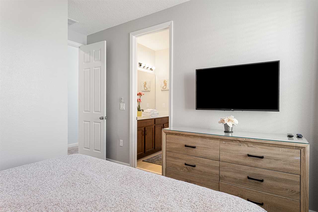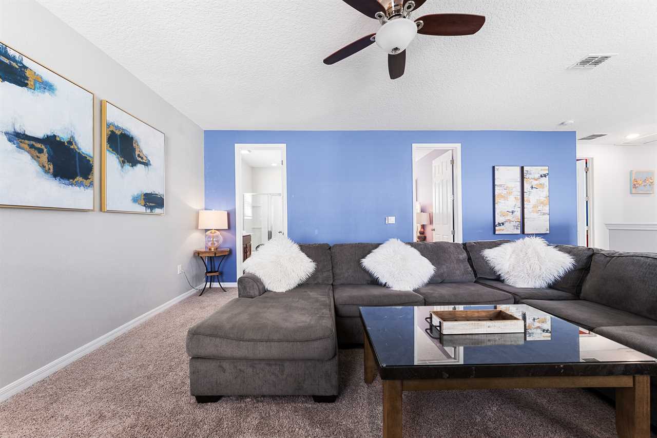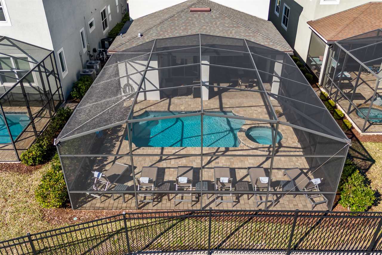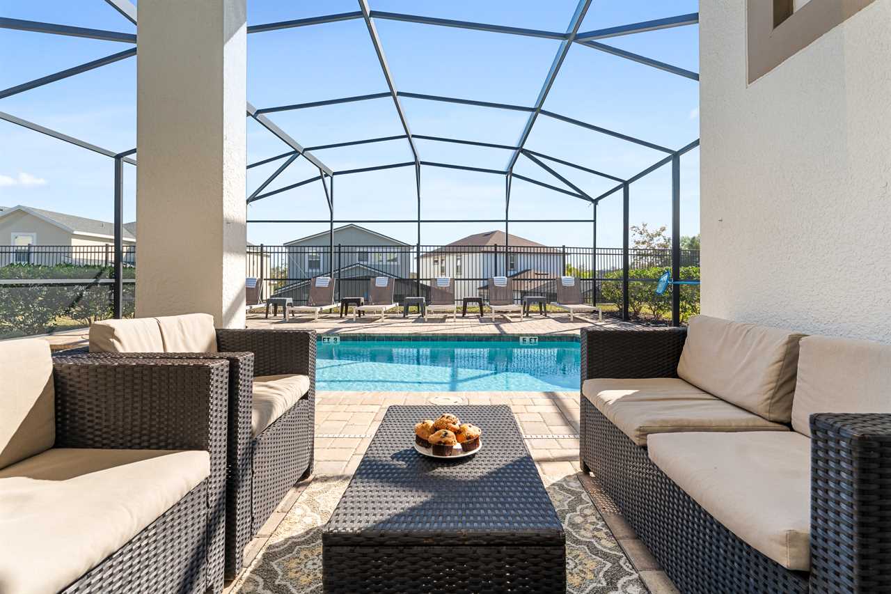 If you love spending time poolside, this is the home for you! The entire lanai and oversized pool deck area are screened in to let the sun in while keeping bugs out. There are plenty of sun loungers to go around, and if you prefer the shade, there is a lounge area in the lanai with plenty of seating. There is also a dining table for 8 where you can enjoy meals al fresco. The spillover spa is a perfect place to relax in the cool evening after adventuring the Orlando theme parks.