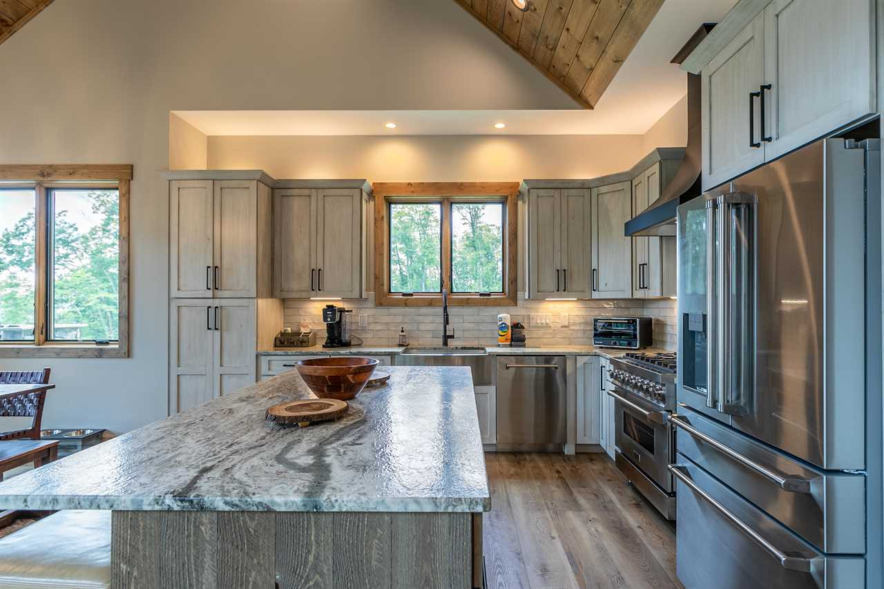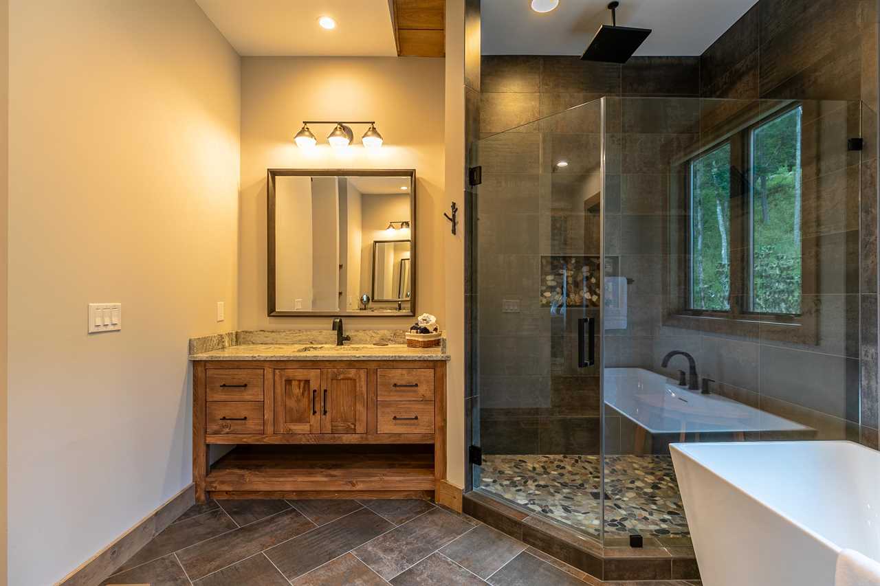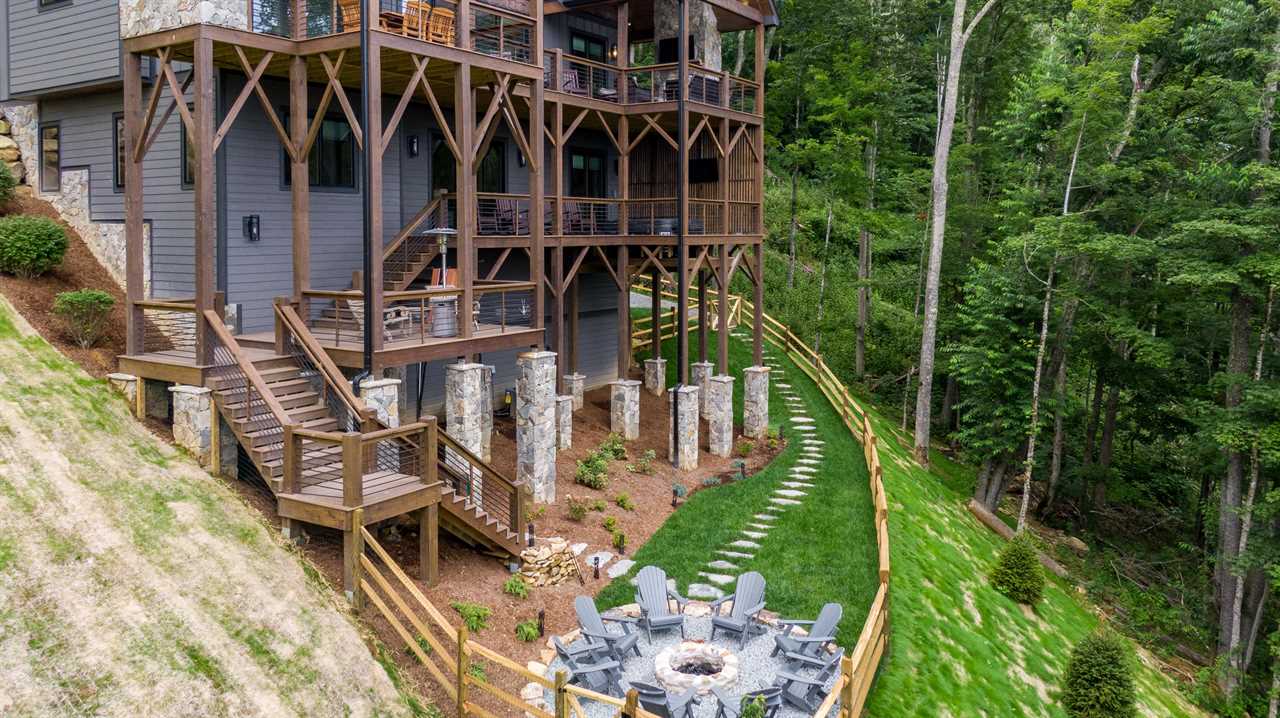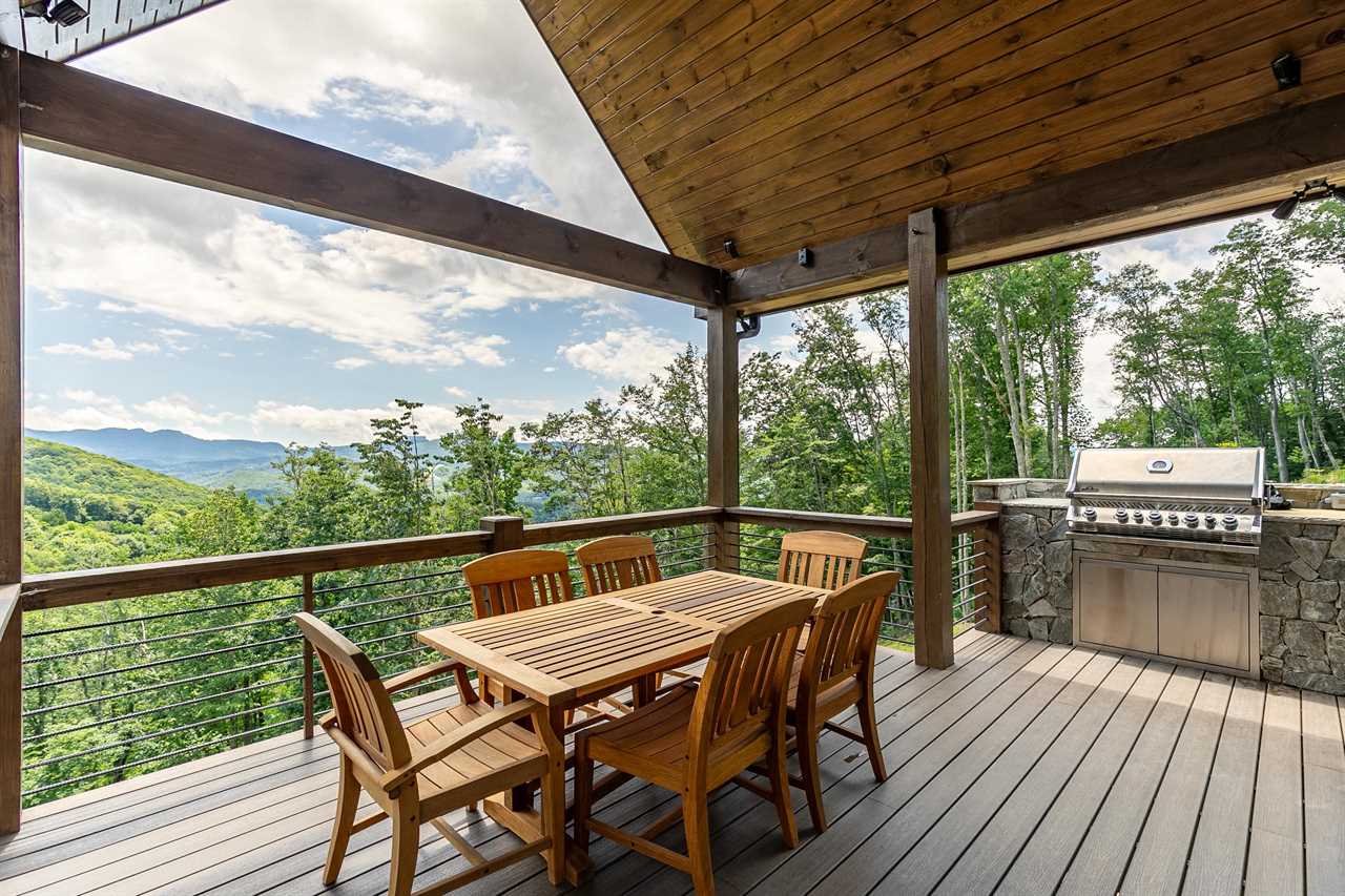 Entering the home through the beautiful stone front porch into the Great Room provides a breath-taking view of Grandfather Mountain through the wall of windows. The open floor plan has you ready to socialize with your friends and family or cozy up next to the wood burning, stone fireplace. The kitchen was built for entertaining with a large island, stainless steel appliances and a dining room table that can extend to accommodate a large party if needed. On this floor you will find two bedrooms and two full bathrooms. One of the two large primary king suites with a heated floor ensuite bathroom, two vanities and a stand-alone tub. Also on the main floor is a queen bedroom ideal for young ones needing to be close to mom and dad or those unable to walk up and down a flight of stairs. From the main level, you can walk through one of the many sliding glass doors and you are met with the tranquil sound of the stream below. The main level deck provides two covered areas – an outdoor living room with a second stone, wood burning fireplace with ample seating for your party and a covered dining porch with a built-in stone grill wall. These porches are separated by an observation deck allowing you to take in the beautiful, surrounding long range views of Grandfather Mountain, the stars at night and the rushing sound of the stream below.