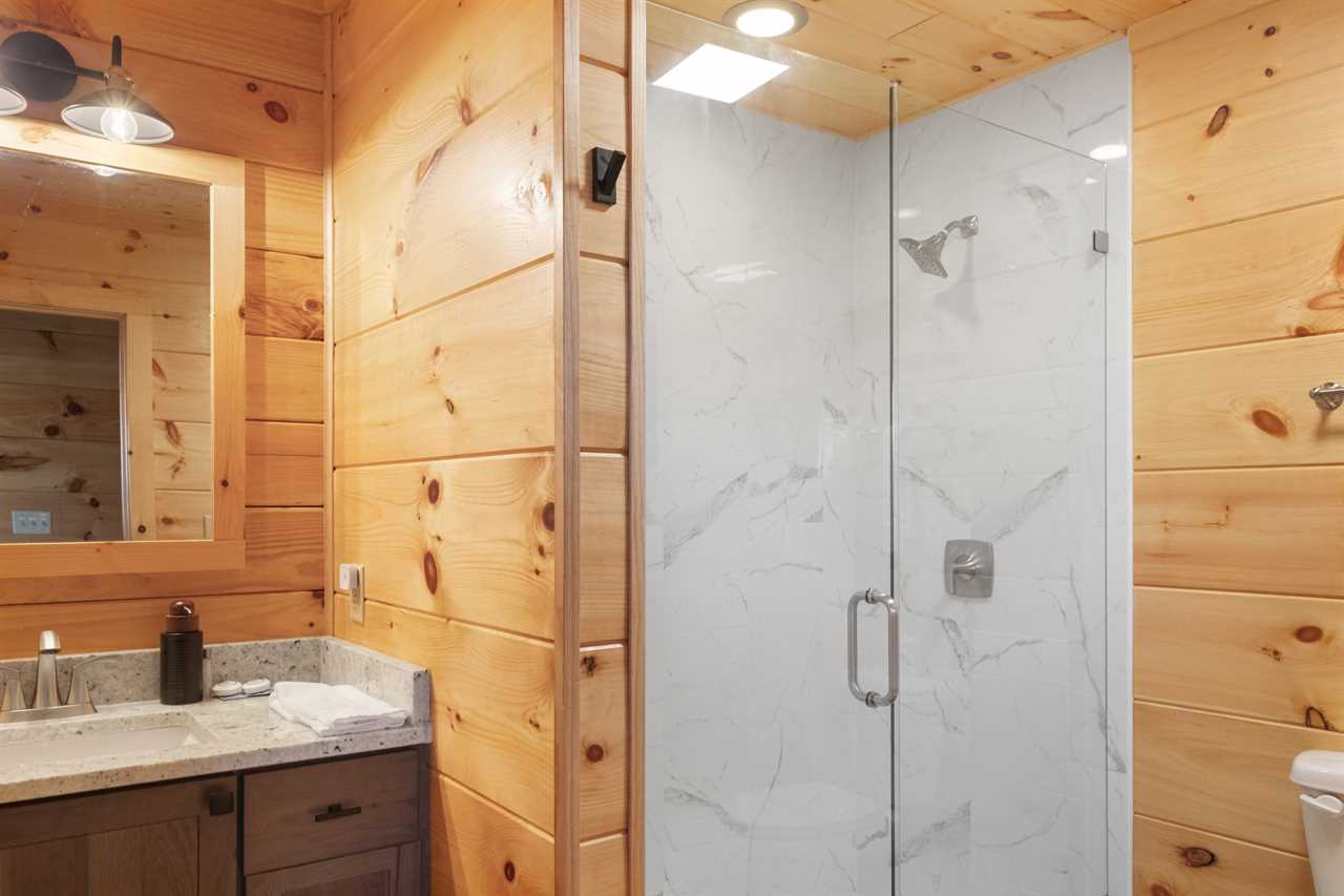Guests can enjoy a soak in the hot tub on the covered lower-level patio with the convenience of an outdoor shower to rinse before and after. Evening soaks with the ambiance of a fire in the nearby wood-burning fire pit, surrounded by custom Adirondack chairs. Additional amenities include high-speed Wi-Fi, central heating and air, and a washer and dryer. There are 8 Smart TVs throughout, one in each bedroom, one on the main floor, and two in the lower level game room, all available for viewing with your personal streaming accounts. Fairway Lodge On One is not pet-friendly; thank you for not bringing pets to the cabin. Guests traveling in winter should prepare for unpredictable weather by having AWD or 4WD vehicles and carrying tire chains for icy conditions. There is one camera at the house on the front pointing away from the door, and a camera at the lower door capturing the driveway/parking area.