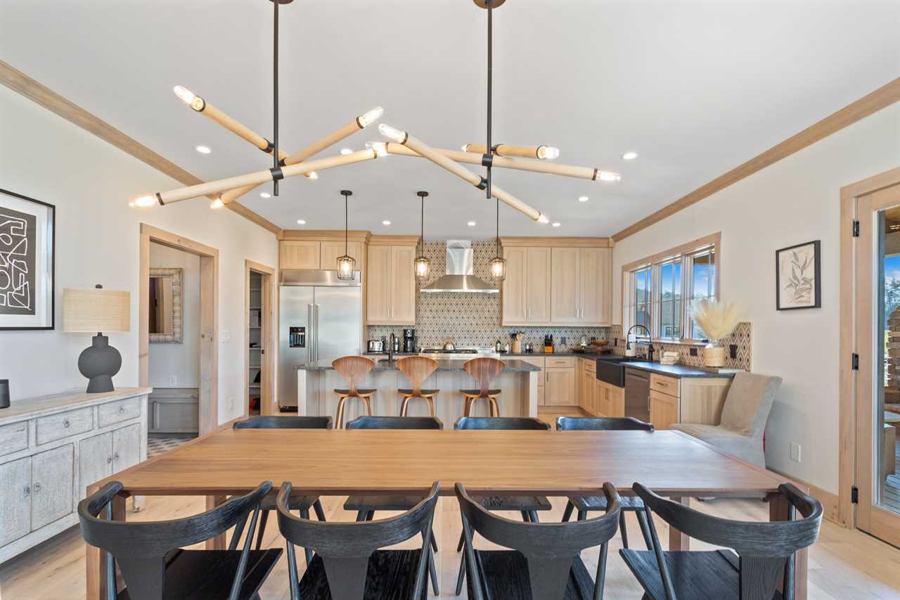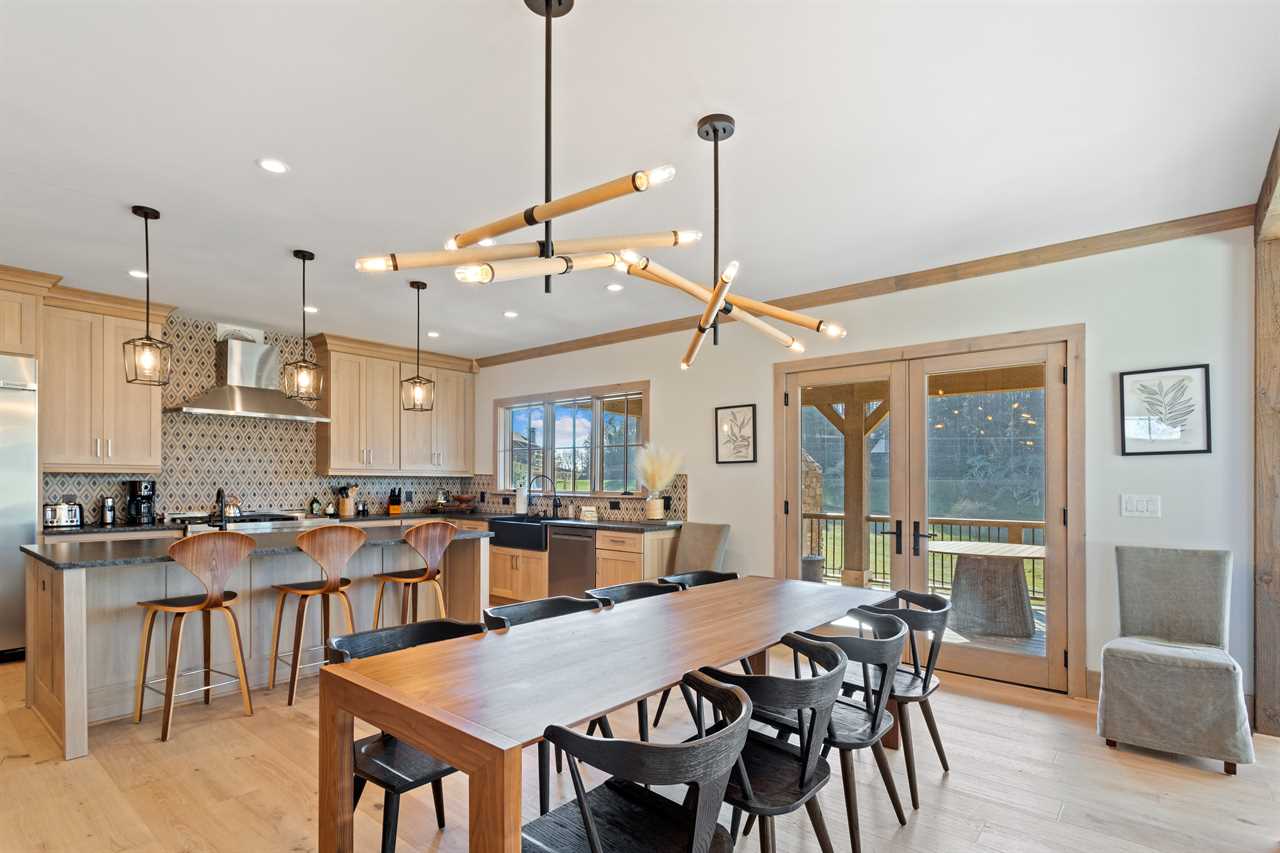 A brand new, custom-built property, SweetGrass Getaway will become your home away from home. The 1st floor contains a beautiful living room with 20-foot ceilings, a stunning stone gas fireplace, a 70-inch flatscreen TV, and picturesque mountain and meadow views. Next to the living room is an open dining room that seats 10 and a high-end chef's kitchen with all-new stainless steel KitchenAid appliances, two sinks, custom live edge granite countertops, and plenty of storage. In addition, there is a mud room with a separate entrance, a laundry with a washer, a dryer and sink, a large pantry, and a powder room. From the first-floor living and dining area, you can access the covered back porch with additional outdoor seating and dining and a beautiful wood-burning fireplace, perfect for roasting s'mores or enjoying a glass of red wine on a winter evening. Grill your favorite meal on the Weber gas grill.
