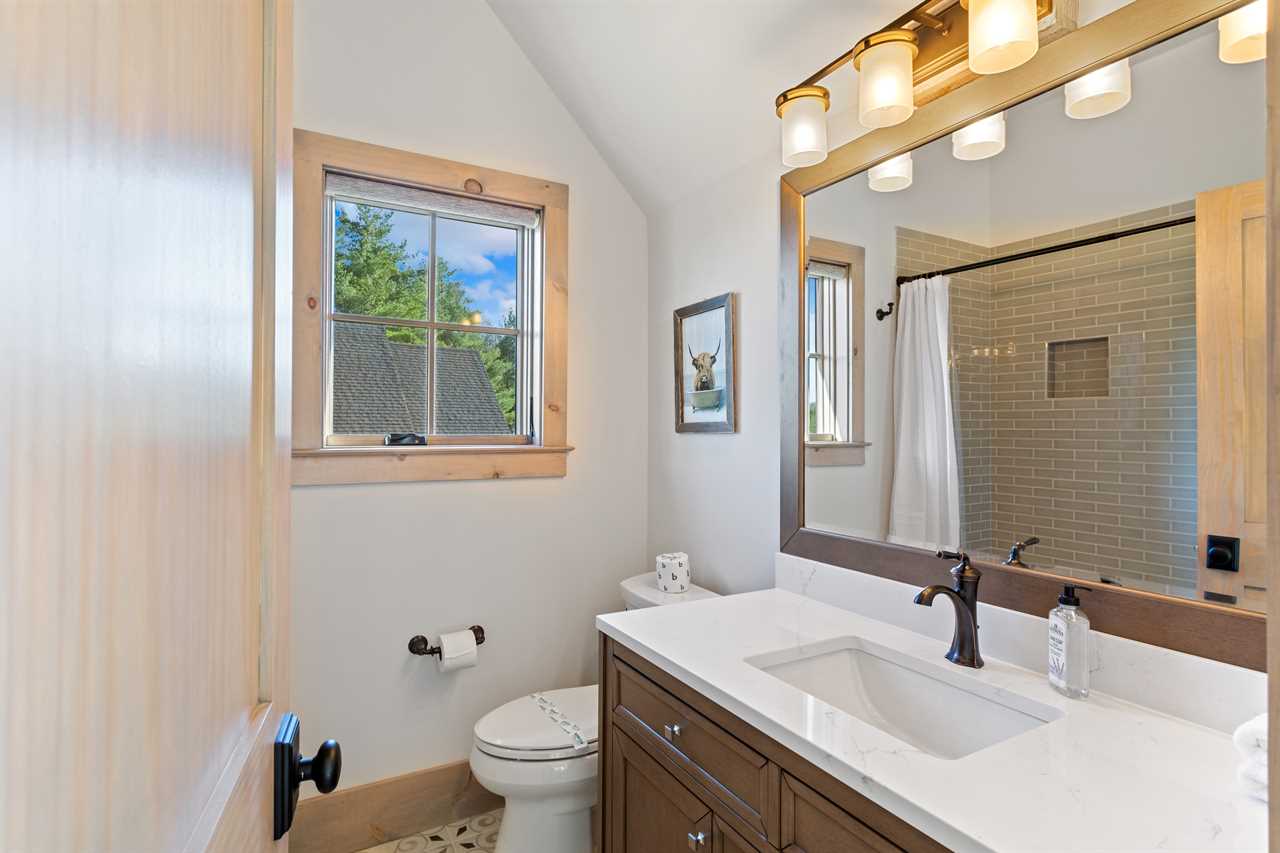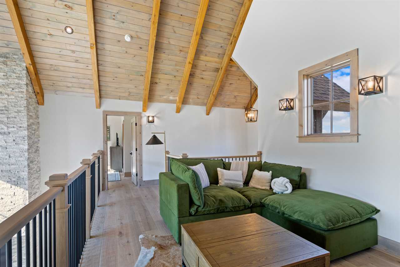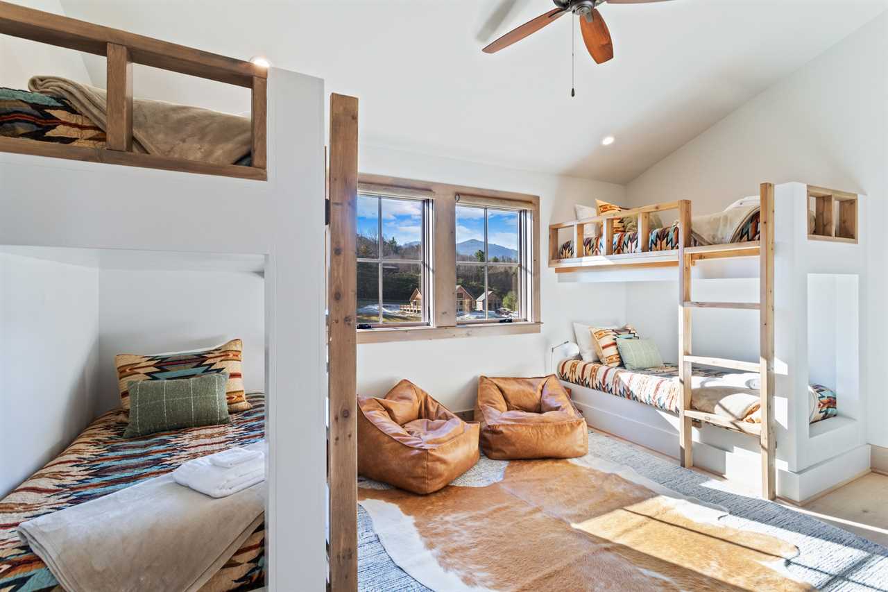 SweetGrass Getaway offers a modern mountain-style accommodation that comfortably sleeps up to 10 guests. The four bedrooms offer a luxurious and comfortable stay. Each bedroom has a private ensuite with custom tile, quartz countertops, and high-end finishes. The first-floor master bedroom is an inviting space with a king bed, TV, and private ensuite. The beautiful bathroom contains a double vanity, soaking tub, and tiled shower. Upstairs, you will find the ideal kids' room complete with four custom-built bunk beds, leather bean bag chairs, a flatscreen Smart TV, and, as a bonus, a wall-mounted arcade game. Your kids may never want to leave! There are additional king and queen suites on the second floor, with views, spacious closets, and ensuites. Rounding out the upstairs is a cozy loft area ideal for reading, rainy day naps, or playing cards and board games, stocked at the home for your enjoyment.