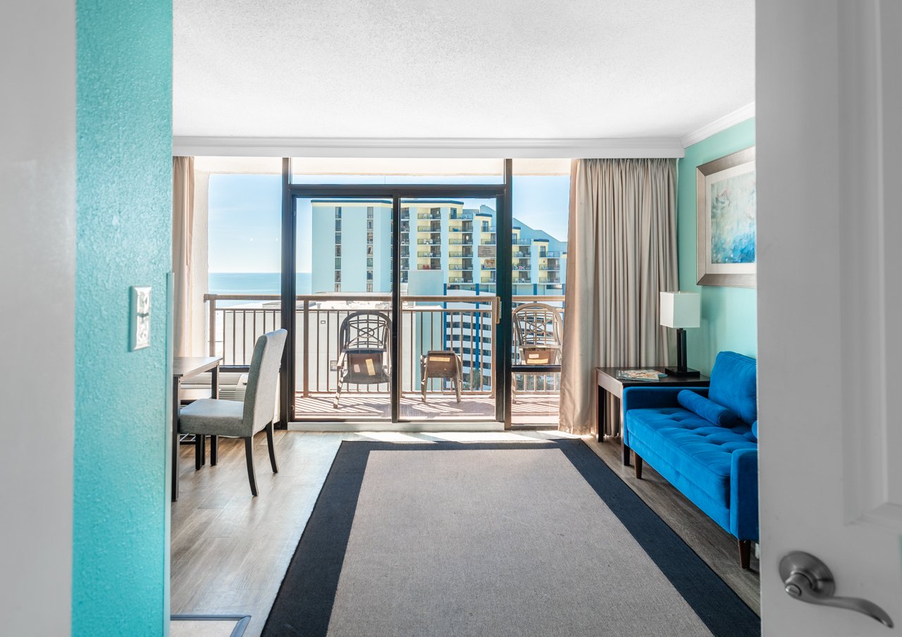 The convenience of an electronic, keyless entry makes check-in hassle free! Once inside our condo, our guests will also enjoy the balcony with ocean views. In addition, the outdoor pools and water features are a short elevator ride down to the 1st floor! Guests will also have access to basic resort cable and Wi-Fi.