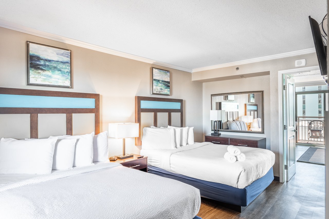 Located at the Caravelle Resort in Myrtle Beach, this condo offers a breathtaking view of the Atlantic Ocean. This 10th floor suite has a spacious and unique floor plan that sets it apart from all other condos at this resort. Guests can enjoy the luxury of having a fully-stocked kitchen, making it convenient for cooking small meals. The layout is perfect and is fully furnished with 2 full-size beds and a full sized murphy bed (hidden wall bed). This arrangement will comfortably accommodate a total of 6 guests!