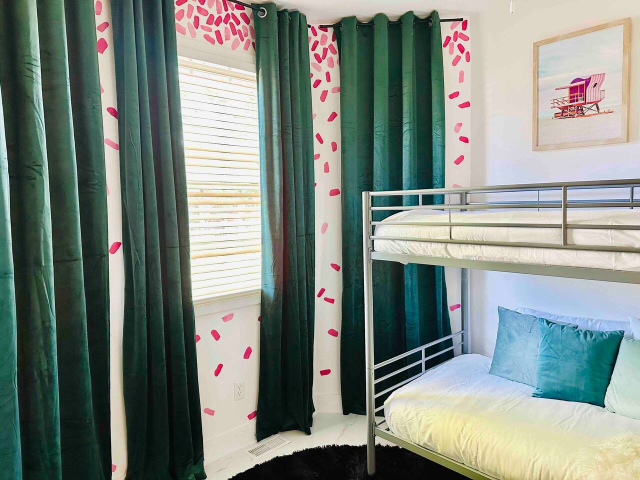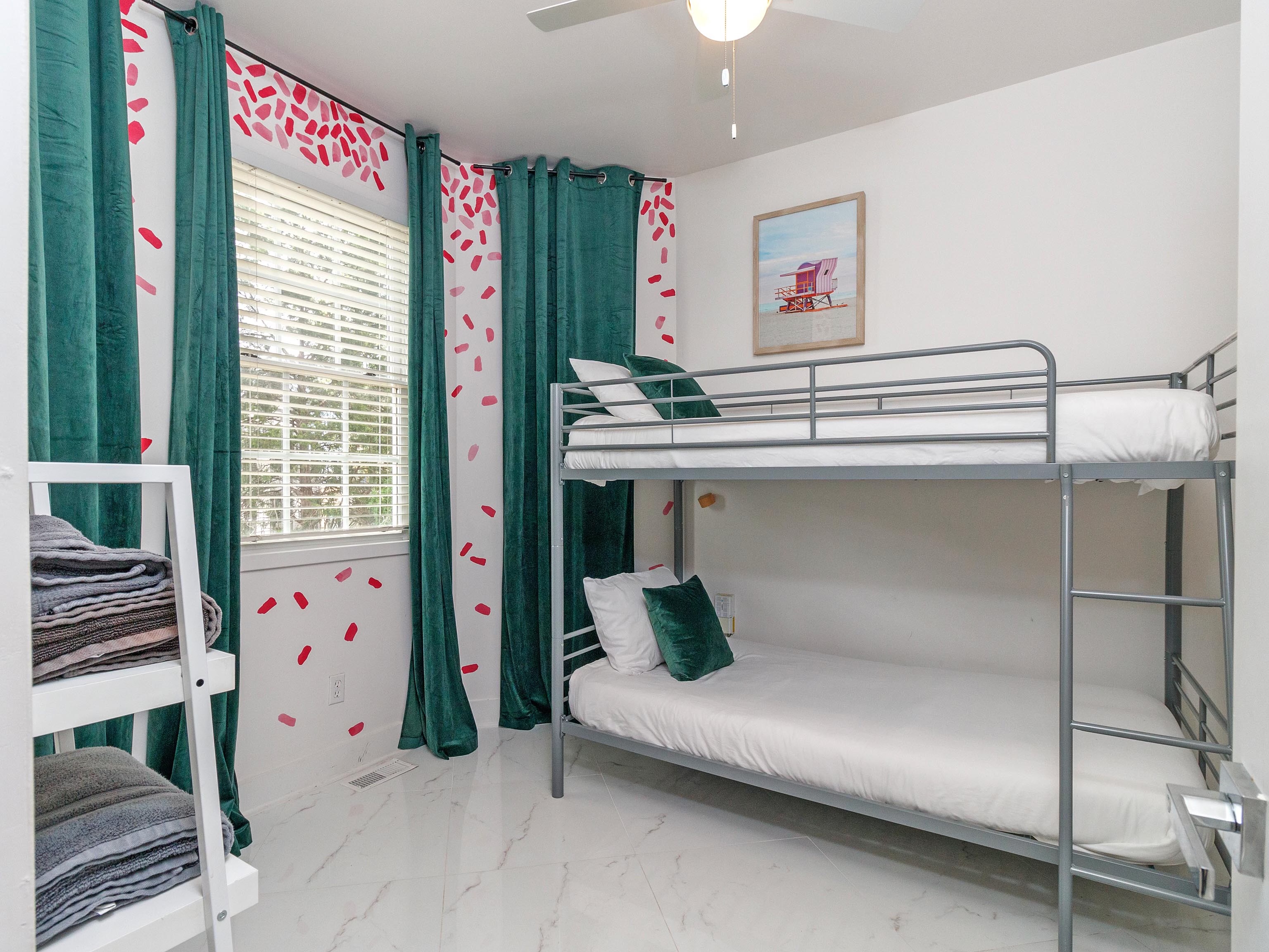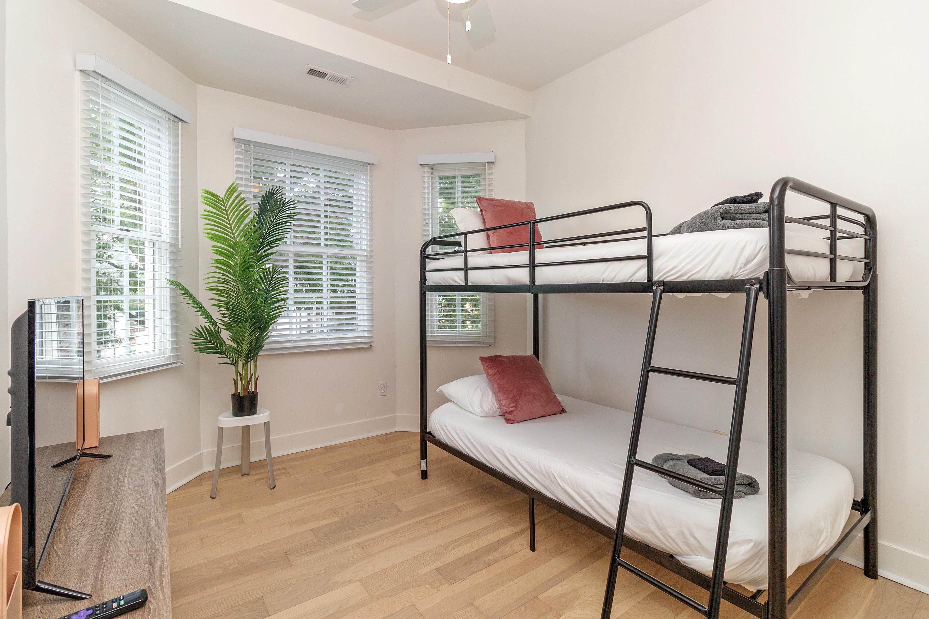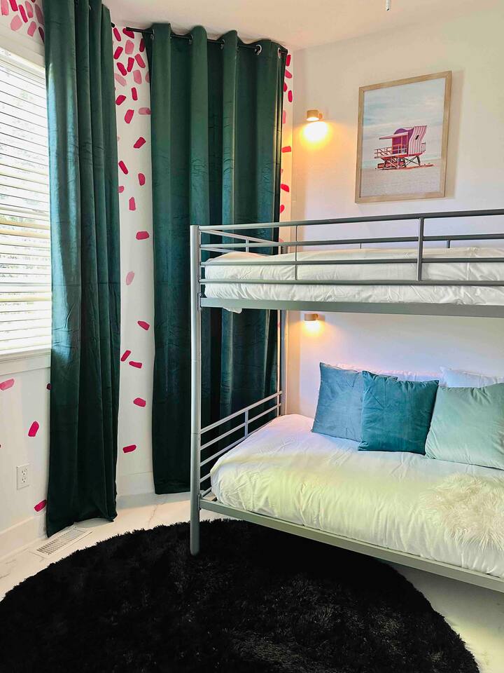 The main floor has a bunk room with two twin beds. Perfect for naps, the kids, or your single friends.