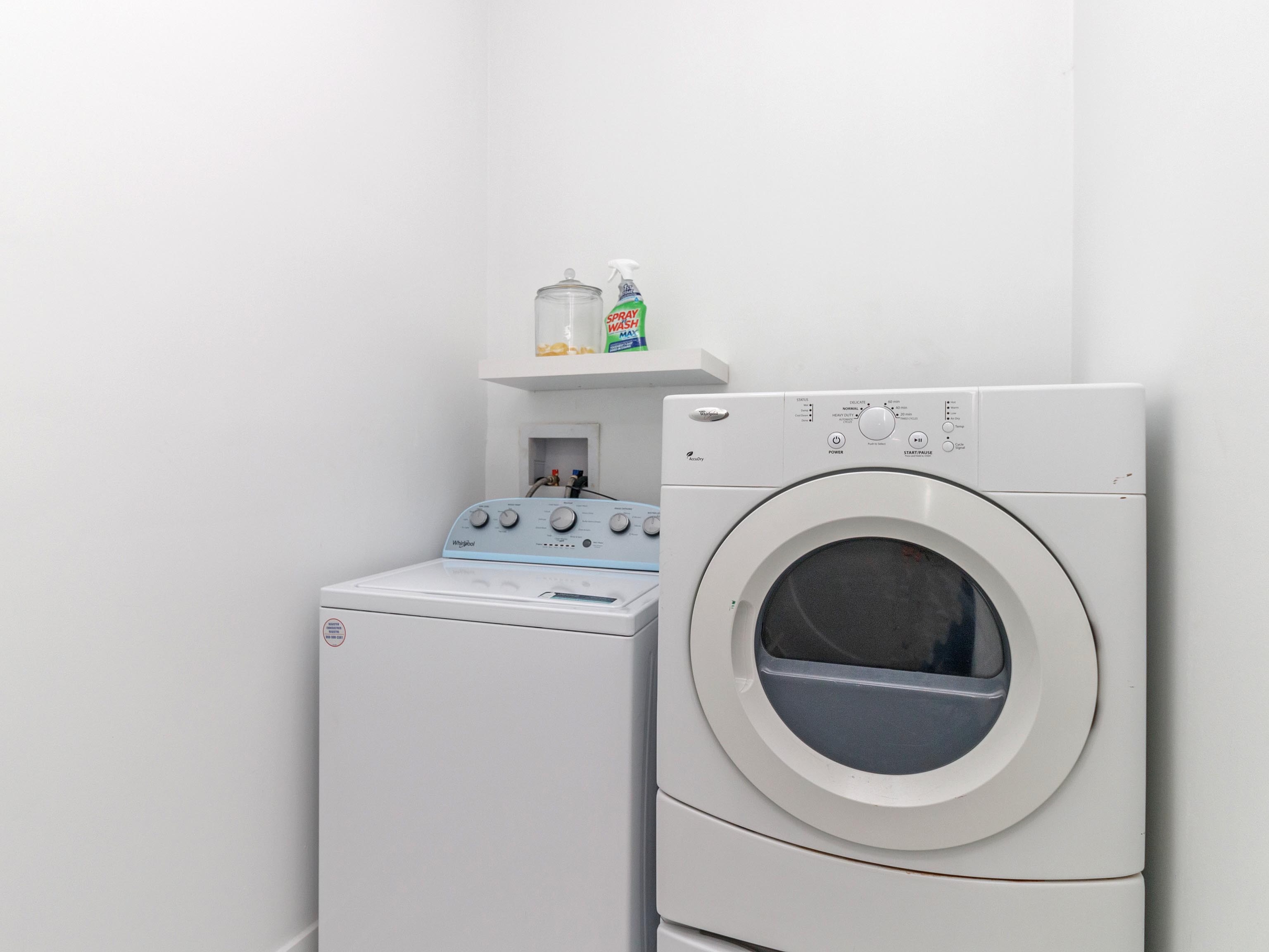 Upstairs you'll find 3 bedrooms and two bathrooms as well as on-site washer and dryer. We invite you to do laundry during your stay.