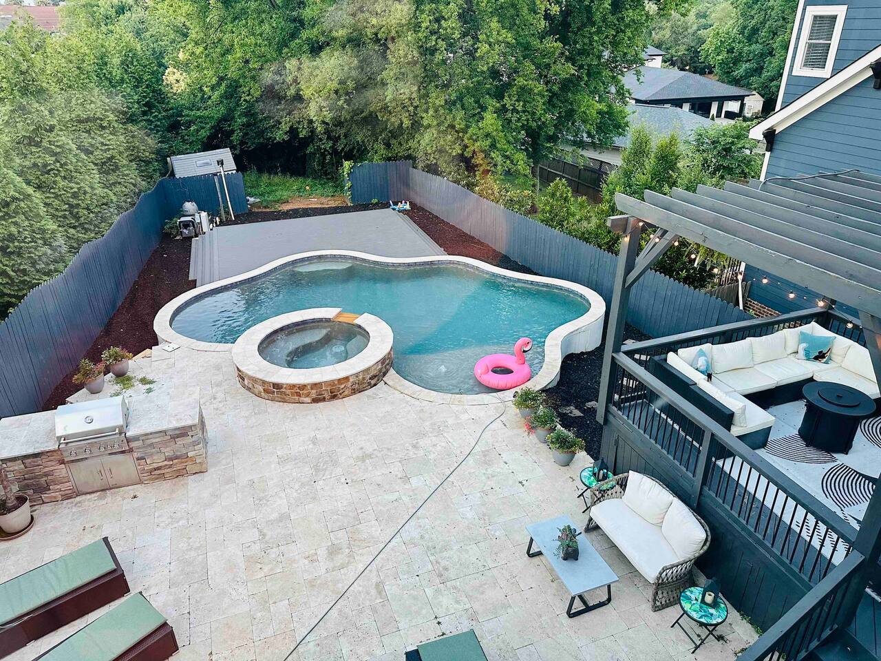 Due to our strict NO PARTIES policy, and for liability and insurance purposes, we have installed a motion-activated camera in the backyard. We do not actively monitor this camera. It is there for liability purposes only. If there is a community disturbance report during your stay, we will review the footage. If we found you violated any of our house rules, you will be charged $500 and reported to Airbnb for community violations.