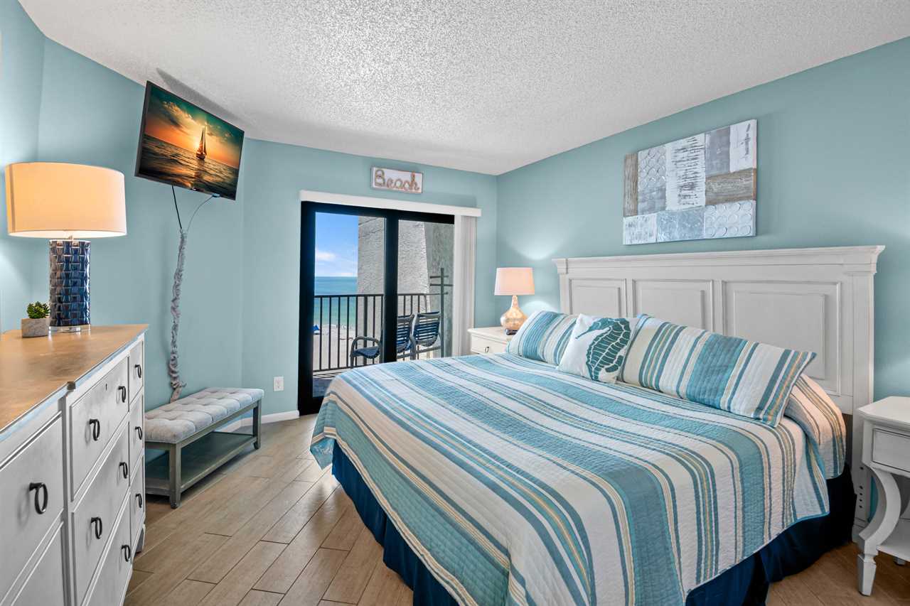 - Master Bedroom β King-size bed, flat screen TV, balcony access