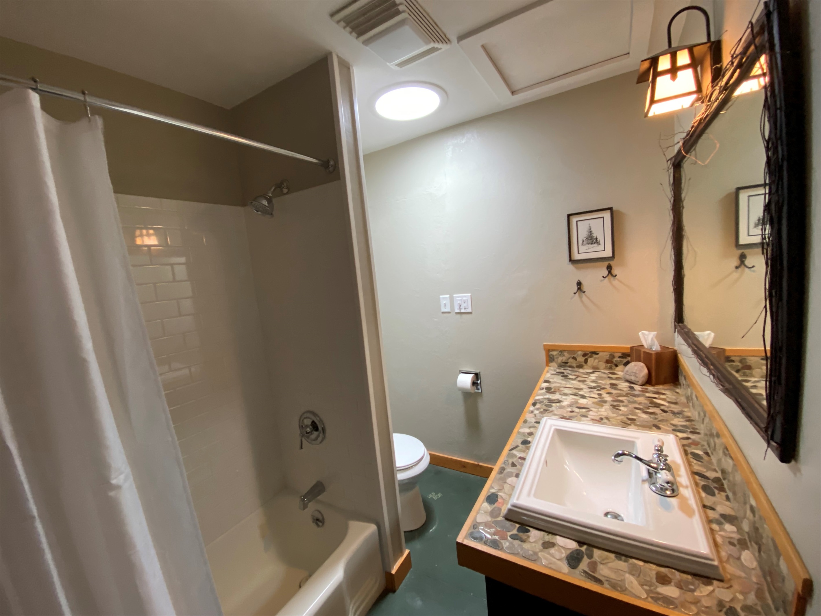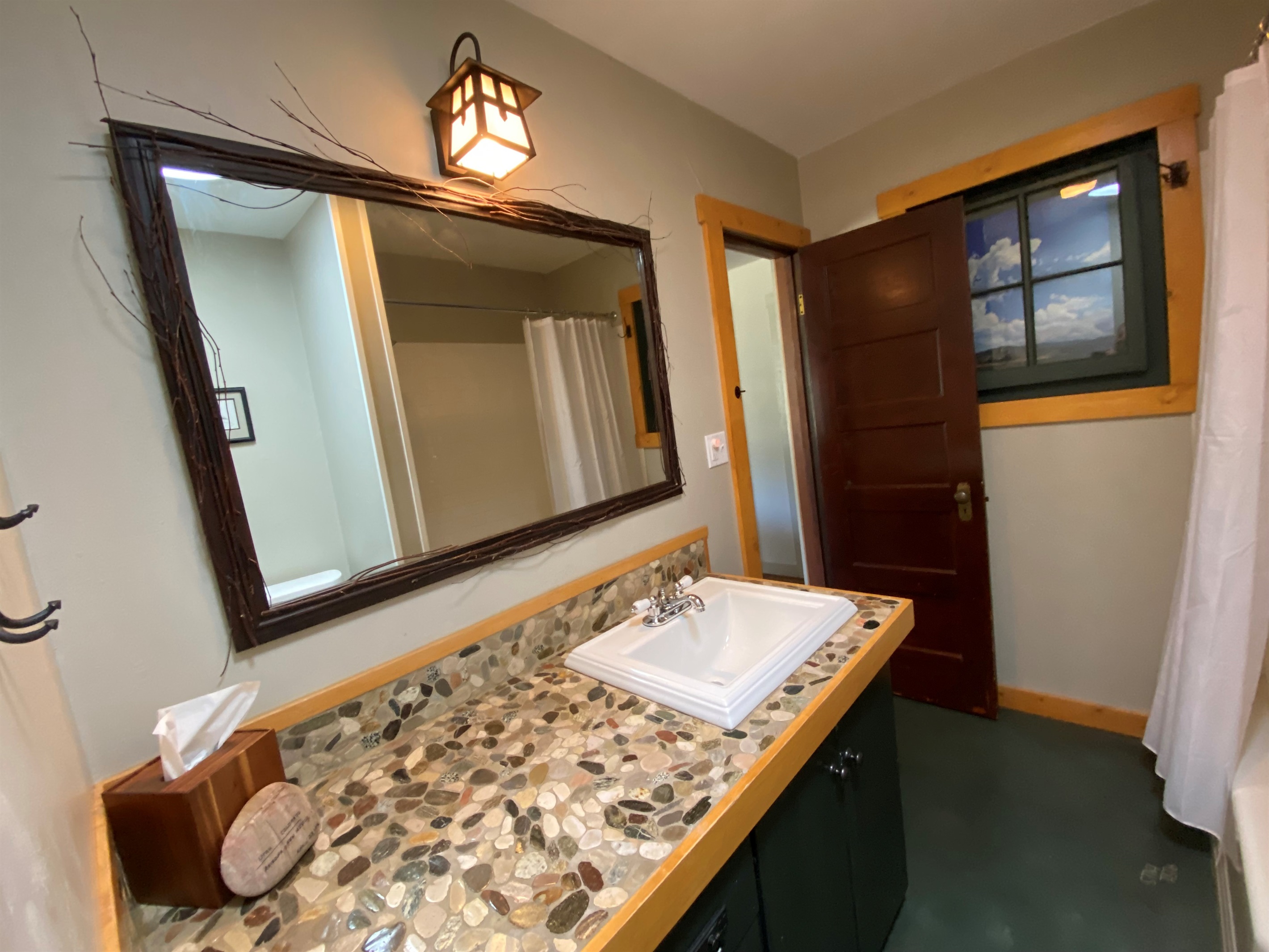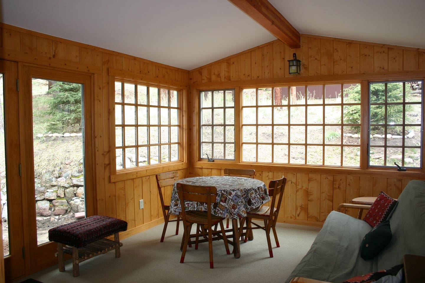 Tons of character in this adorable mountain home! (STR license 22-ZONE3294) Located on the edge of Rocky Mountain National Park in Estes Park, CO - hike right into the park or enjoy the mountain surroundings from your deck. You will love all the personal touches and little details throughout this cabin. Spacious king bedroom, additional bedroom with full bed and ensuite half bath, plus shared full bathroom with tub/shower combo. Comfortable living room with futon, wood burning fireplace, Smart TV, and nice views. Fully stocked kitchen with separate dining area in the adjacent sun room. Gas grill and outdoor dining on the back patio. Printer available for remote office work.