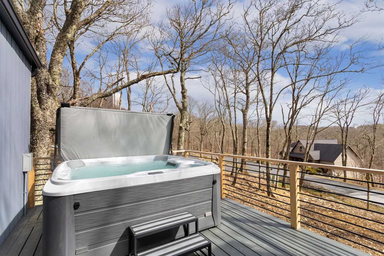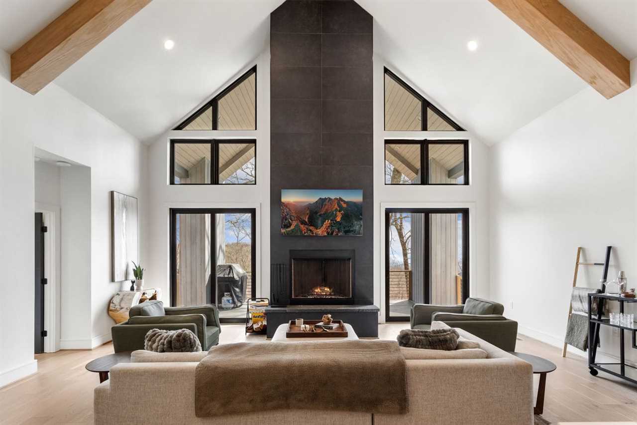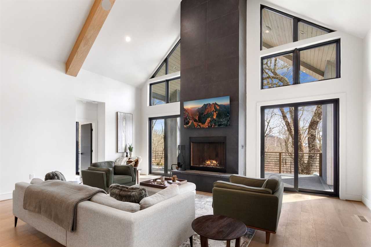 The Bear at Sugar Mountain is a modern custom-built mountain home with Scandinavian influences. Upon entering the home guests are greeted with clean lines, expansive windows, bright white walls, and exposed beams offering a warm and inviting atmosphere. The living space is both elegant and cozy with a sleek floor to ceiling wood-burning fireplace and HDTV. The living room provides a comfortable space to relax after a day of mountain adventures. The cathedral ceiling and natural beams throughout the great room blend the living room and kitchen seamlessly. The gourmet chef's kitchen has beautiful quartz countertops, state-of-the-art Italian appliances and a coffee bar with wine cooler. The chef in your group is sure to enjoy whipping up a delicious meal at the induction oven to be enjoyed at the nearby dining table. Gather around the large island with a quartz waterfall edge to exchange stories of the day's explorations. The back deck houses a hot tub where guests can relax after a day on the slopes, or grill out on gas grill while marveling at the mountain views. The fire pit in the lower yard is awaiting your s'mores and campfire stories. The loft off the kitchen is a perfect oasis for the kids to escape to and watch TV on the beanbag chairs.