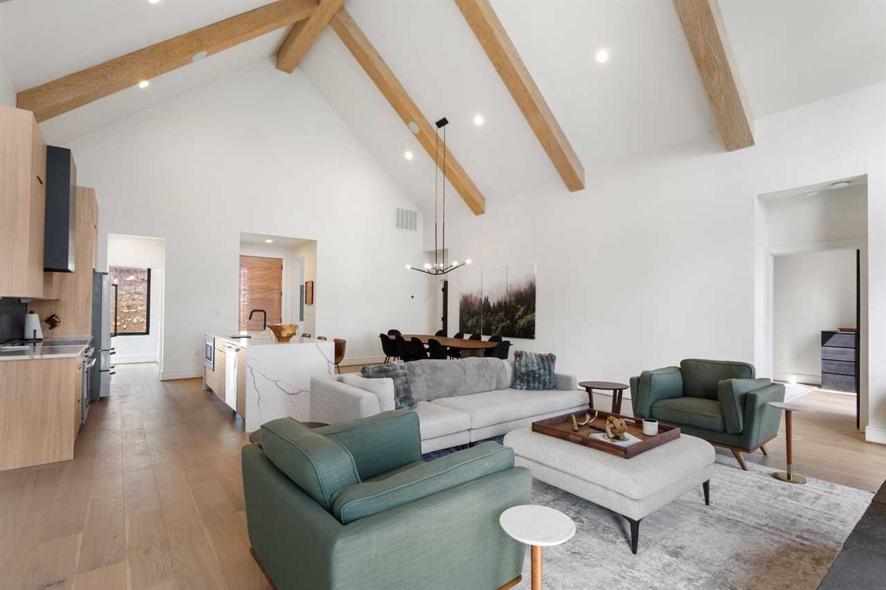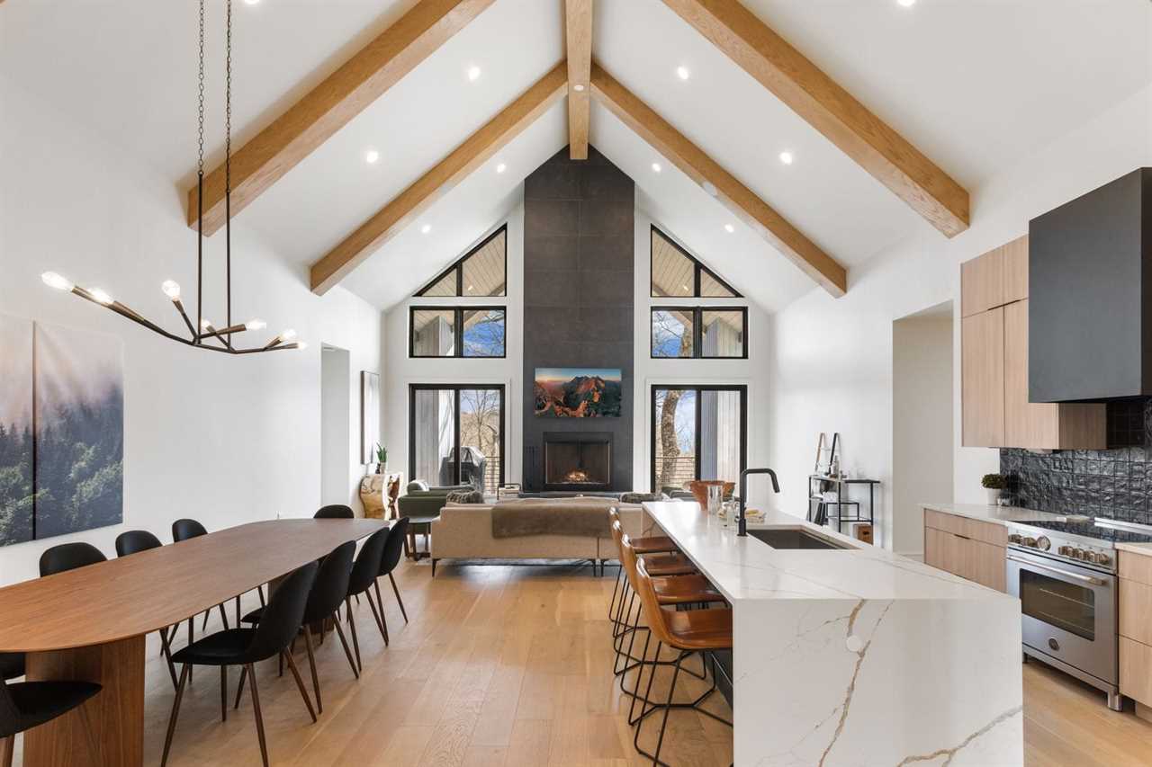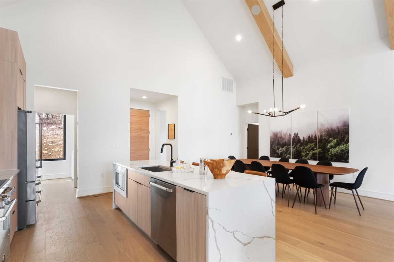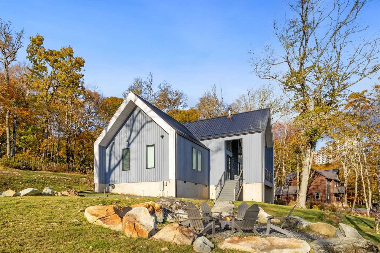 The Bear at Sugar Mountain is a modern custom-built mountain home with Scandinavian influences. Upon entering the home guests are greeted with clean lines, expansive windows, bright white walls, and exposed beams offering a warm and inviting atmosphere. The living space is both elegant and cozy with a sleek floor to ceiling wood-burning fireplace and HDTV. The living room provides a comfortable space to relax after a day of mountain adventures. The cathedral ceiling and natural beams throughout the great room blend the living room and kitchen seamlessly. The gourmet chef's kitchen has beautiful quartz countertops, state-of-the-art Italian appliances and a coffee bar with wine cooler. The chef in your group is sure to enjoy whipping up a delicious meal at the induction oven to be enjoyed at the nearby dining table. Gather around the large island with a quartz waterfall edge to exchange stories of the day's explorations. The back deck houses a hot tub where guests can relax after a day on the slopes, or grill out on gas grill while marveling at the mountain views. The fire pit in the lower yard is awaiting your s'mores and campfire stories. The loft off the kitchen is a perfect oasis for the kids to escape to and watch TV on the beanbag chairs.