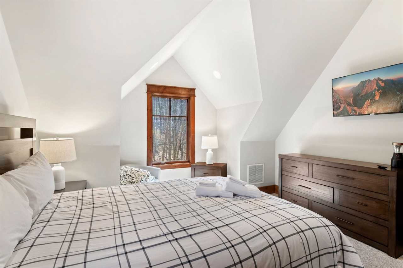 Enjoy this 3 bedroom cabin with a hot tub and fire pit next to a bubbling creek. The covered back deck offers a place to grill and enjoy the gas fire table in the wooded setting. Inside the high vaulted ceilings allow the bright natural light to permeate the living room, kitchen and dining room. There is a master bedroom on the main floor with a king bed and private master bathroom. Upstairs offers two queen guests rooms and a full bathroom. Both the living room sofa and the upstairs loft hallway sofa convert to additional sleeping spaces for up to 3 guests.