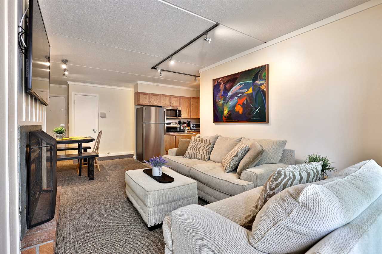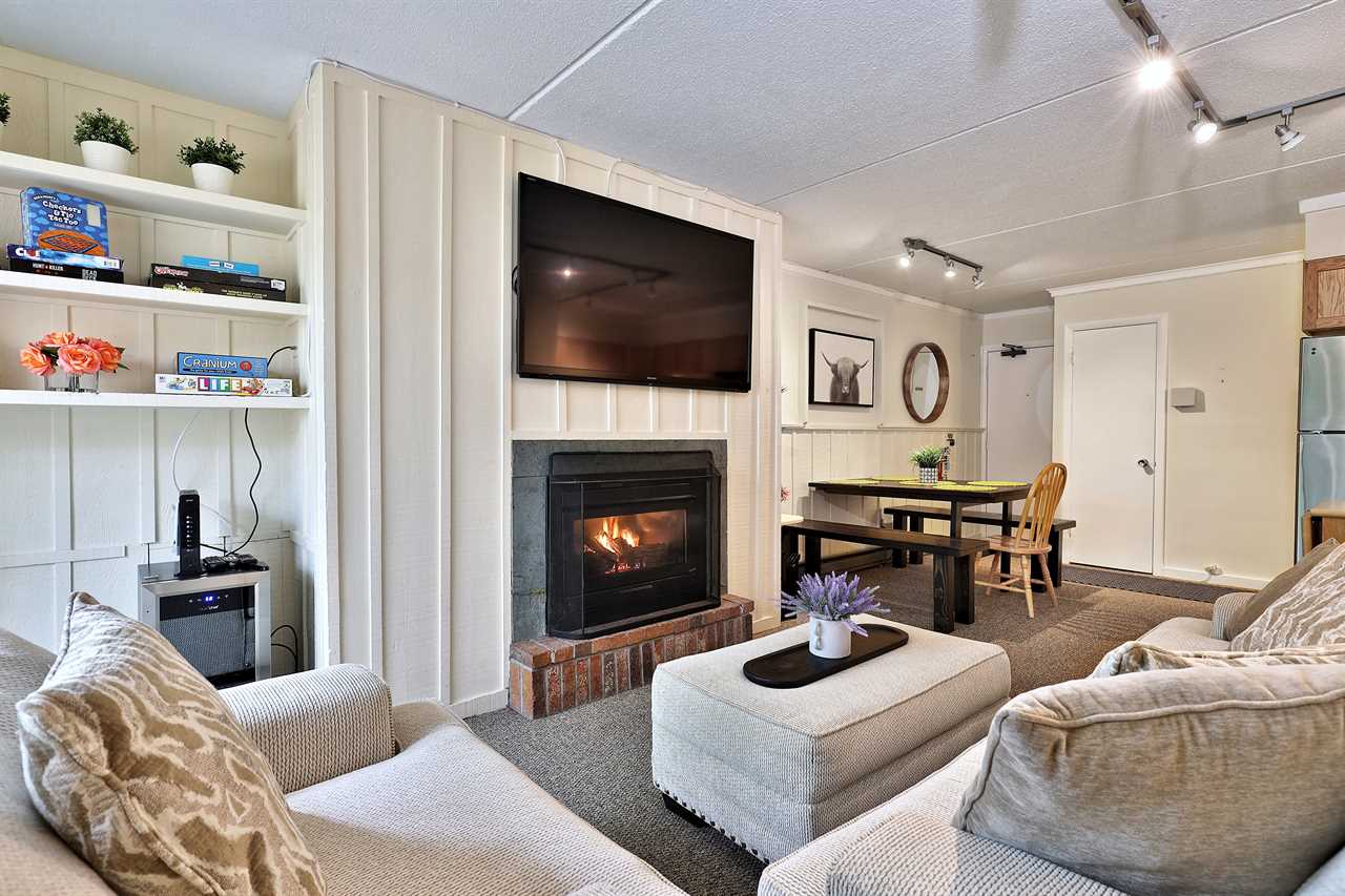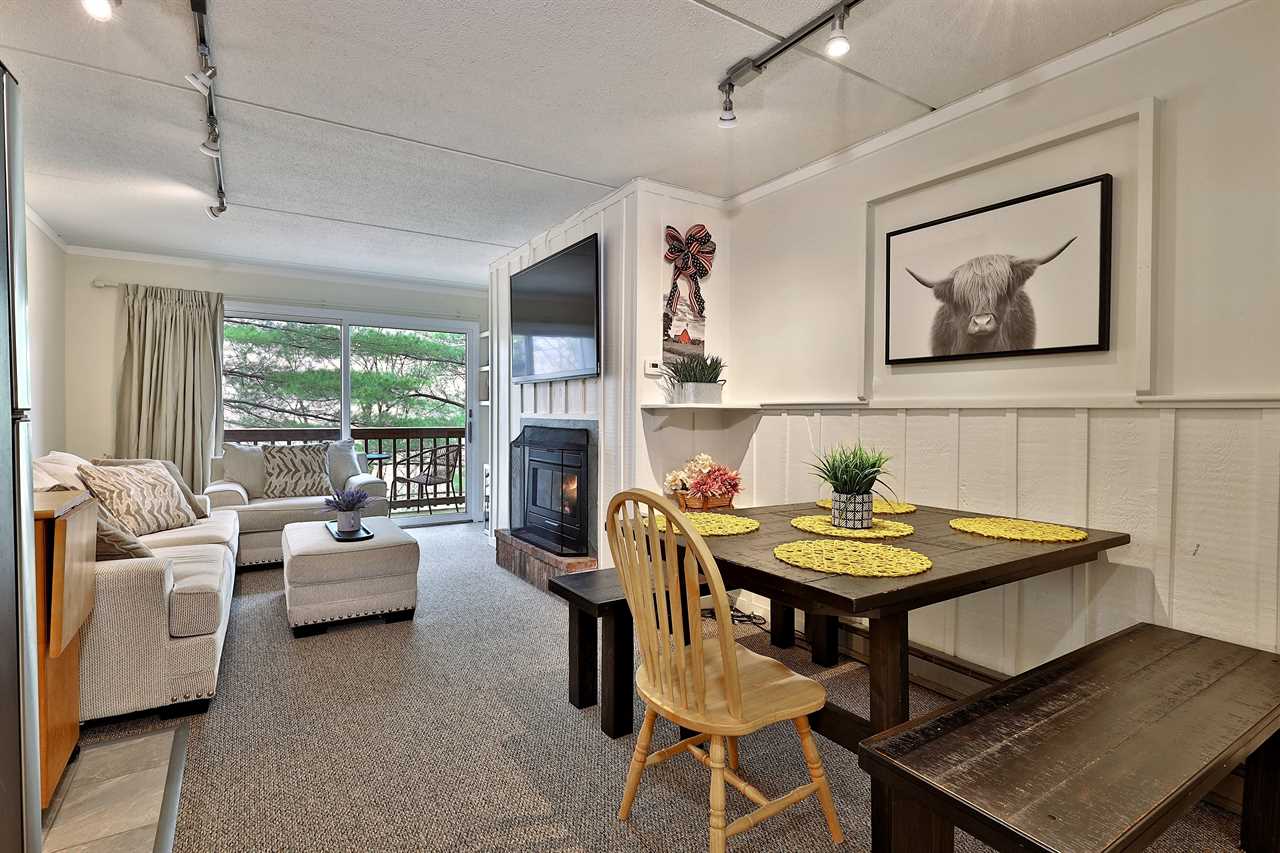 Step into the welcoming ambiance of our condo, featuring a spacious living room adorned with a gas fireplace, ideal for cuddling up on chilly winter nights. Stay seamlessly connected with high-speed wifi and indulge in your favorite streaming service on the flat-screen TV. The fully equipped kitchen is ready for your culinary adventures, stocked with everything you need to prepare delicious meals for your family and friends. Gather around the dining area, boasting seating for six, and enjoy memorable meals together.