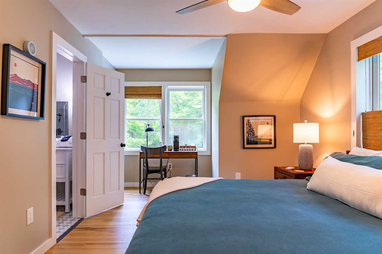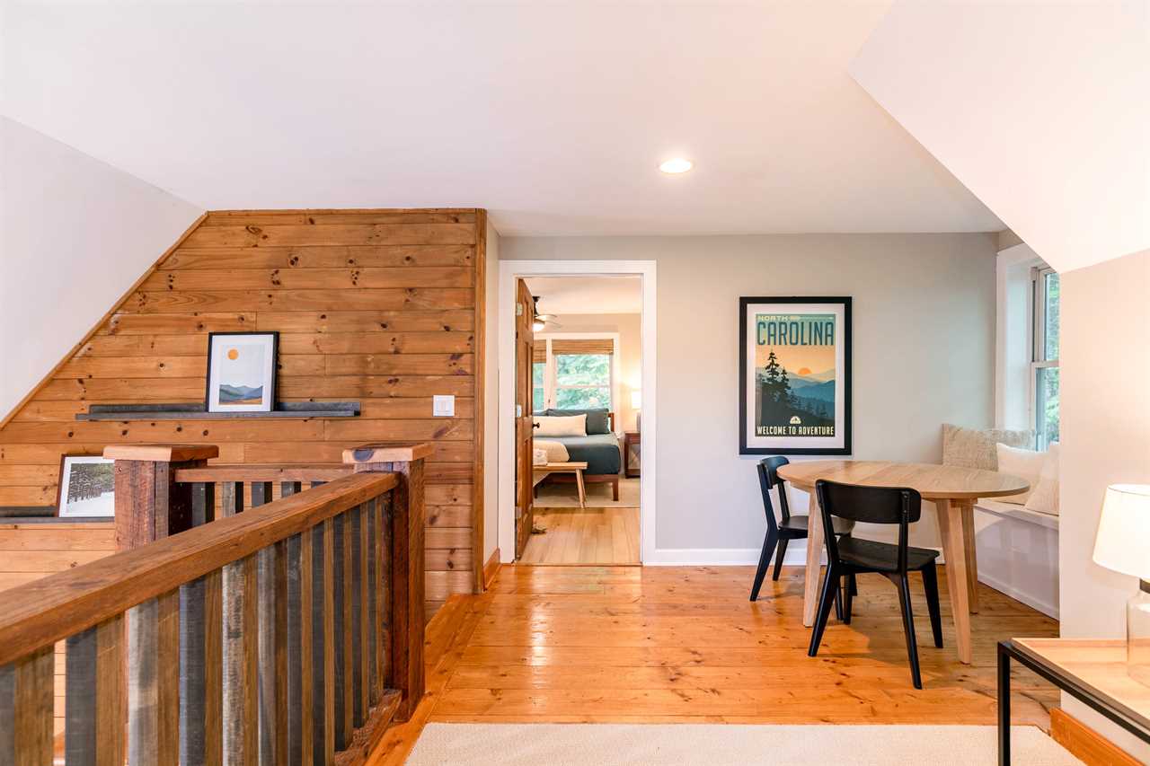 Upstairs: "Top of the Hill" - our tribute to beautiful Chapel Hill. Top of the Hill offers a King bed and private bathroom with granite counters and a tiled shower.