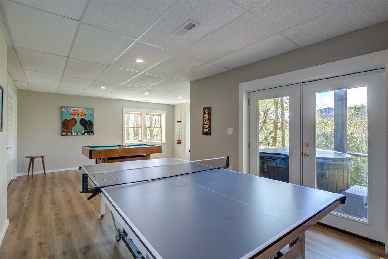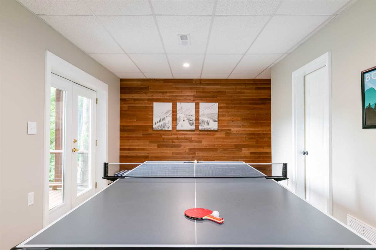 - Fun rec room basement with pool table, ping pong, board game cubby, and 65” TV