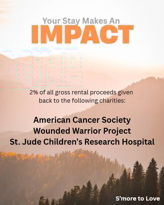Want to feel even better about your vacation? The owners of S'more to Love passionately believe in giving back, and to that end, at the end of each year have committed to donating 2% of the annual gross rental proceeds to the following charity organizations: