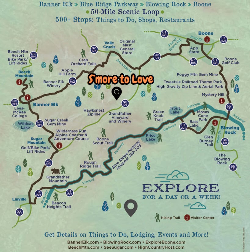 Located in beautiful Seven Devils, S'More To Love is centrally and conveniently located to all the major High Country attractions, including many kid friendly options: