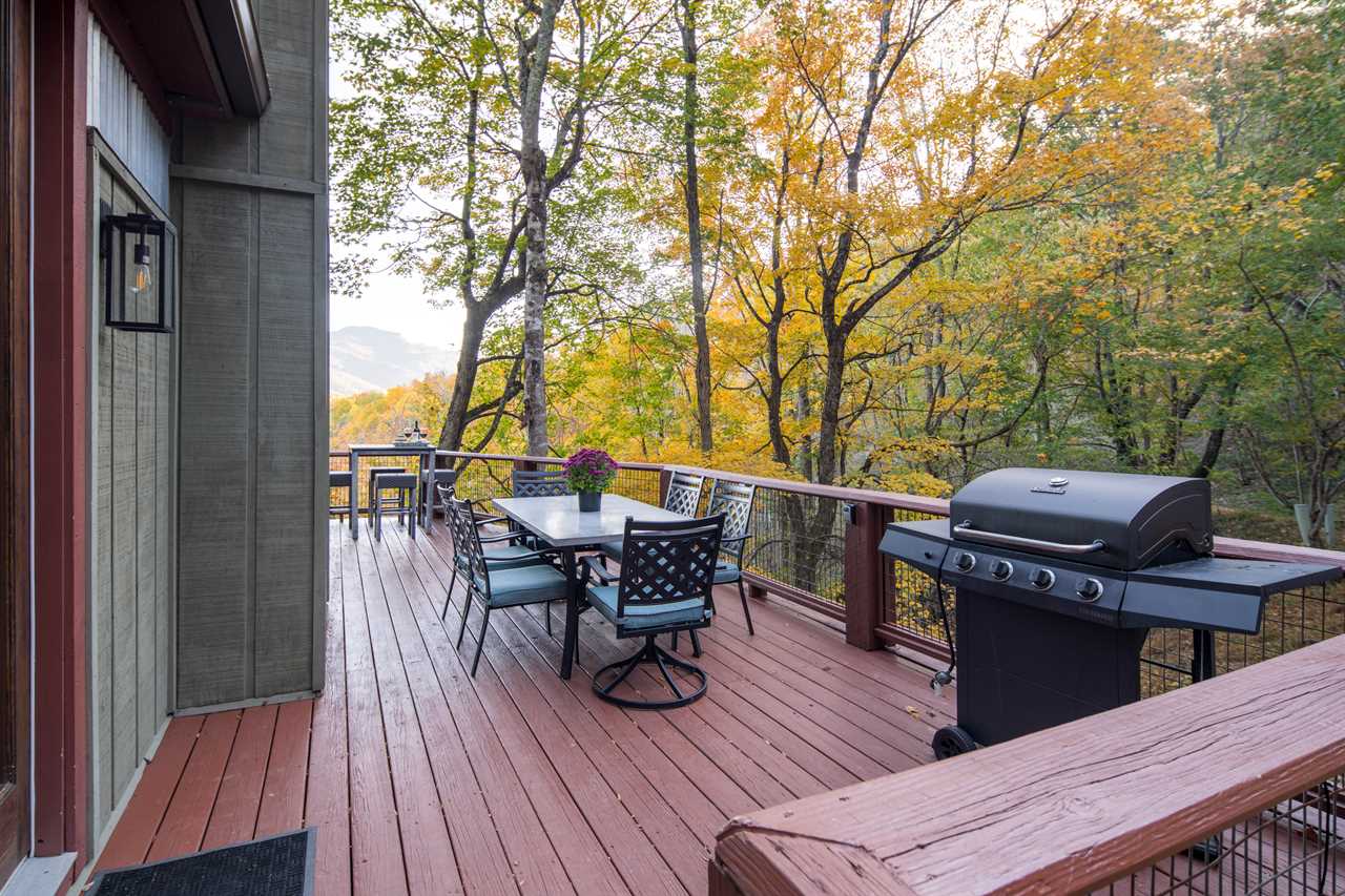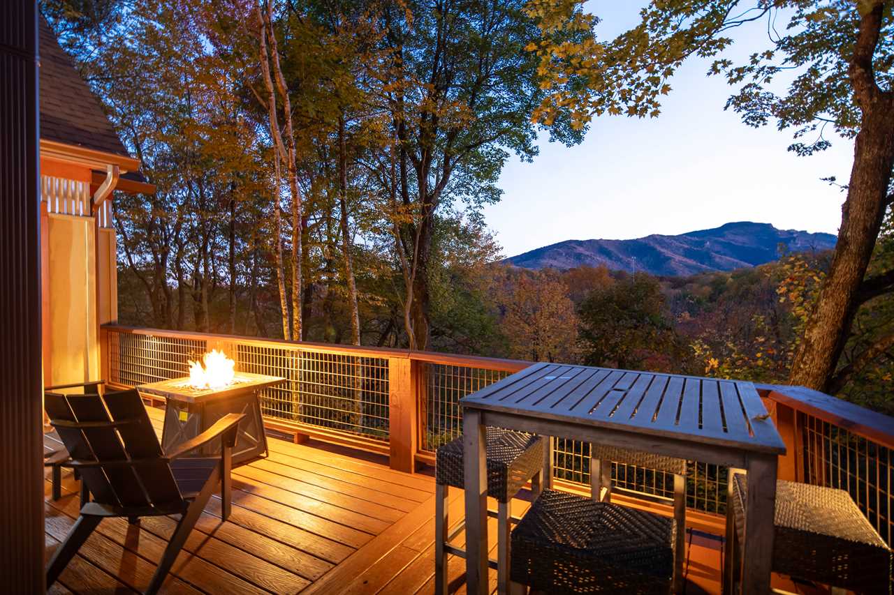There are just 7 steps from the gravel parking area to walk onto the main level deck and enter the cabin, but every time you come home we bet you won't be able to resist going around the corner to grab a quick peek at Grandfather Mountain in the distance! Kick back on the deck and stargaze, or warm up on a chilly evening with the propane fire table. Take the gravel path from the lower level steps out to the beautiful new firepit at the edge of the yard and have fun telling stories and making s'mores around the bonfire!