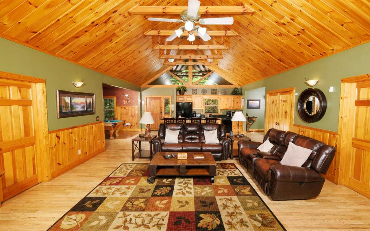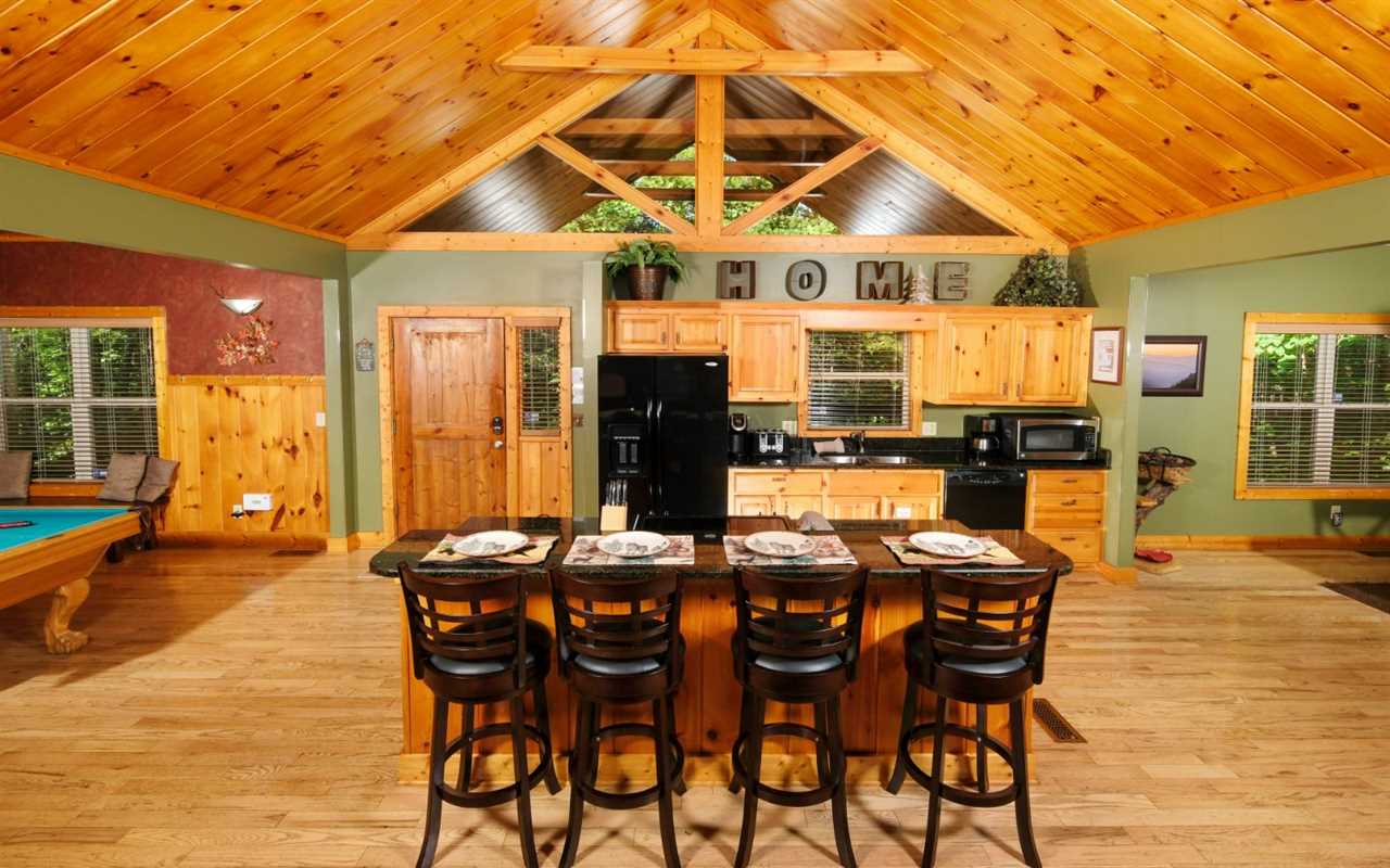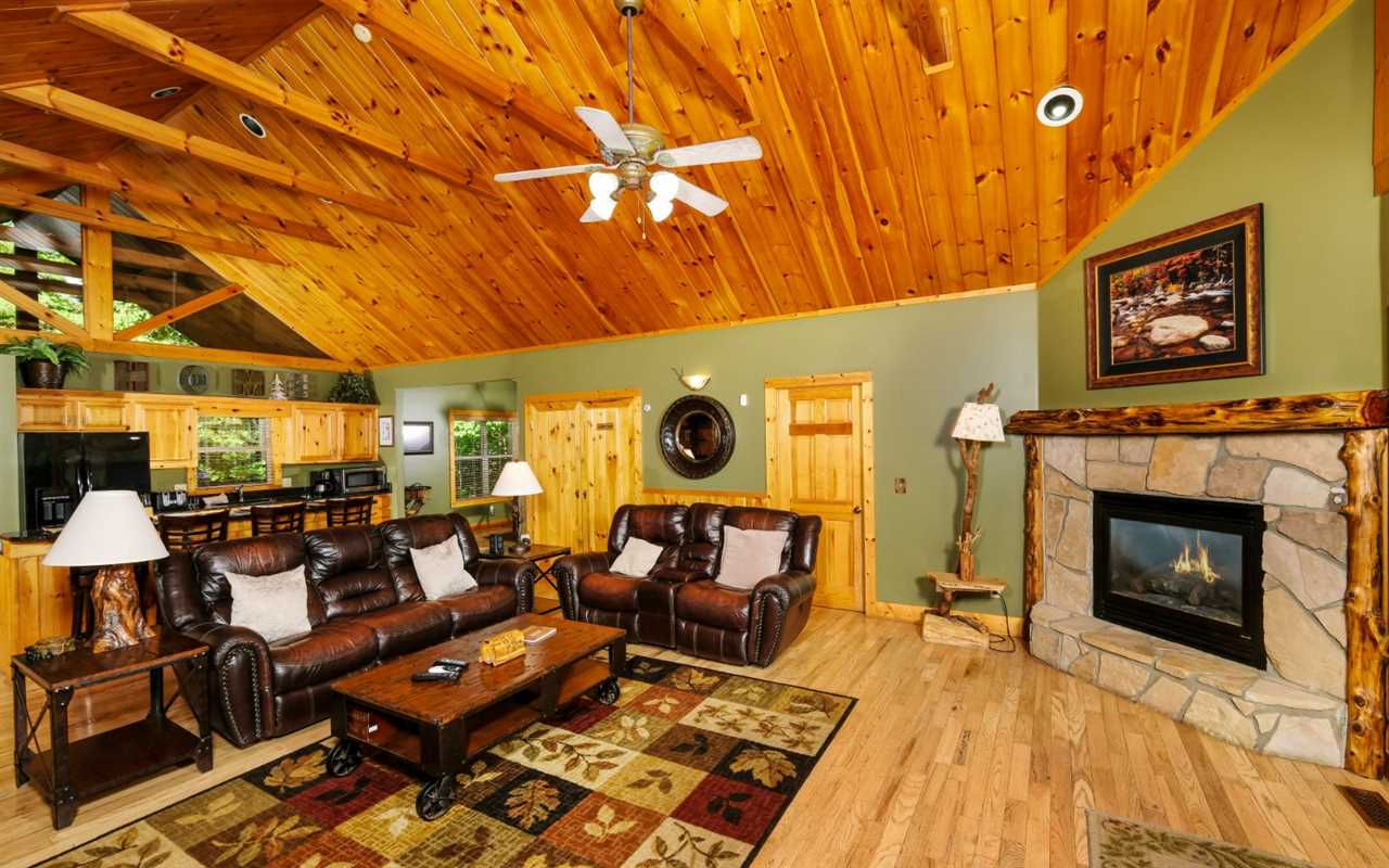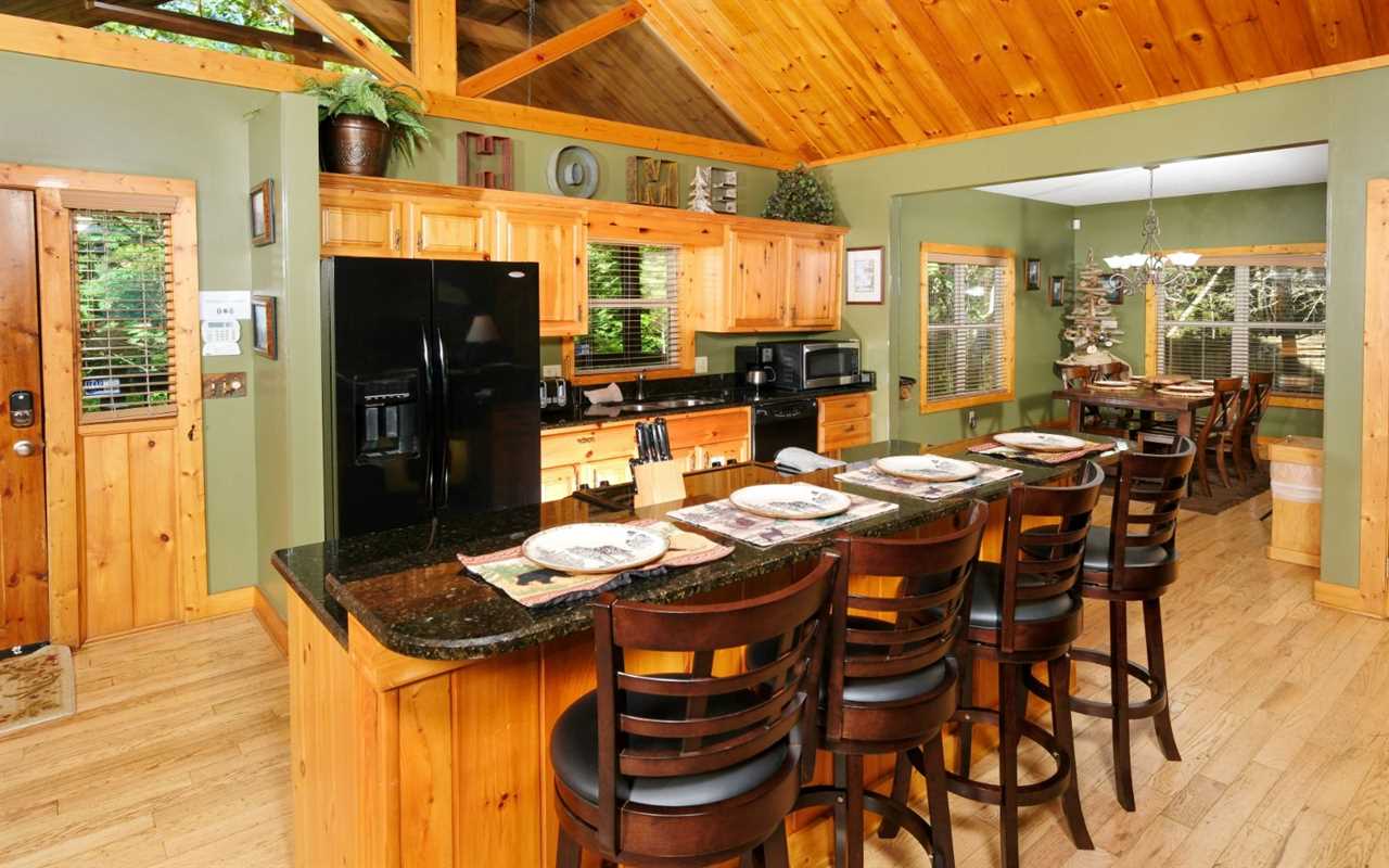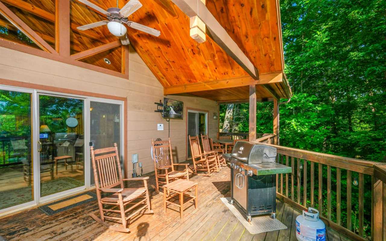 Gorgeous mountain views, relaxing deck spaces, a fenced-in yard, a game room, modern mountain finishes, charming details, a fully equipped kitchen…have it all at Riversong Retreat! This beautiful 2-bedroom, 2-bathroom Gatlinburg cabin rental can sleep up to 4 guests and is outfitted with lots of great amenities for a wonderful stay. Get some fresh air and enjoy the views on your fantastic deck, where you'll have a nice grill, outdoor dining, a TV mounted on the wall, rocking chairs, and a steaming hot tub. There are even tiki torches to light at night! Need a little time to yourself? Head to the front porch to relax on the swing. You'll also have a fenced-in yard for your dog to play in at this pet-friendly cabin. Back inside, get comfortable on the plush leather sofas around the fireplace, turn on the big screen TV, gather around the dining table for meals together, and find all the essentials in the fully equipped kitchen. The game space has a beautiful chess table and a pool table, and you'll also have a washer/dryer, board games, Wi-Fi, king beds, TVs in the bedrooms, keyless entry for self check-in, and decorations during Christmas! Important Pet Information Only Dogs Allowed Restricted Breeds: Pitbull, Rottweiler, German Shepherd, Doberman, Chow, and Husky There is a strict 50-pound weight limit (each) for up to 2 dogs max.