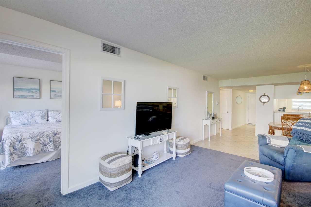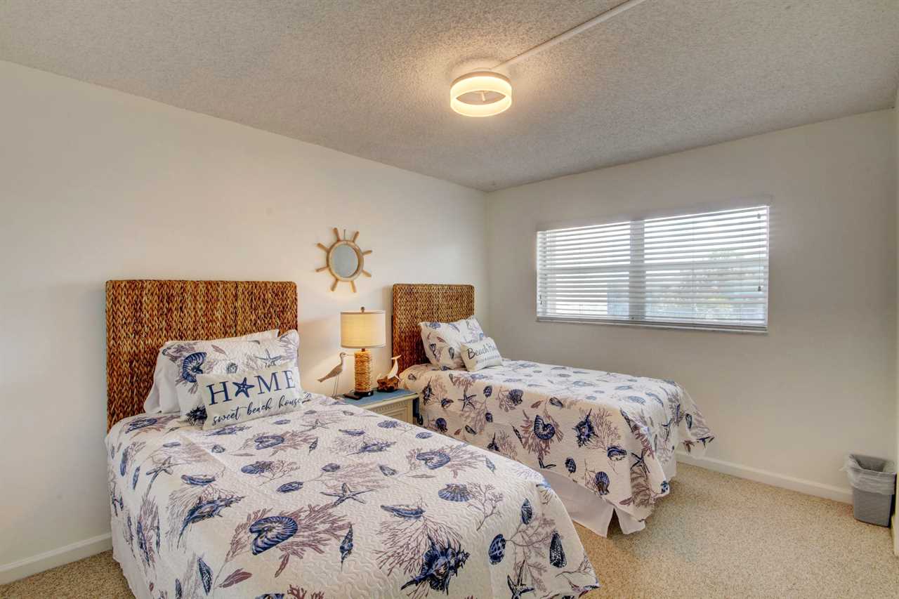This light and airy unit has beautiful views of the pool and Gulf of Mexico. The kitchen is fully furnished with everything you need to prepare meals. The spacious living room opens out onto the balcony were you can enjoy a great meal or some cocktails while watching the waves hit the sand. The primary bedroom has a king size bed with a full tub/shower combination bathroom. The guest bedroom has two twin size beds and a tub/shower combo.