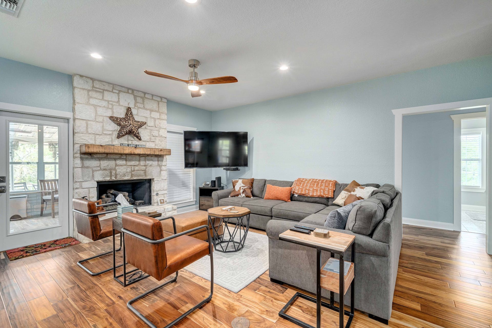 Overlooking the crystal clear waters of the Cypress Creek, is a truly unique Hill Country vacation experience. This location in the heart of the Hill Country only 3 miles from the downtown Wimberley square just cant be beat! However, be prepared that once you arrive you may never want to leave the 1,500 sq ft back deck with views of the creek! While there is not a way to access the creek directly from the house, Cypress Falls Swimming Hole is just half a mile away and provides easy access into the water.