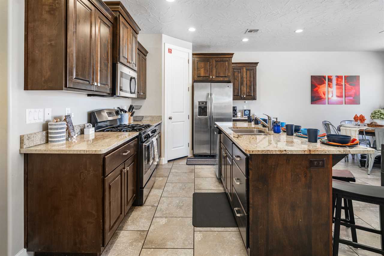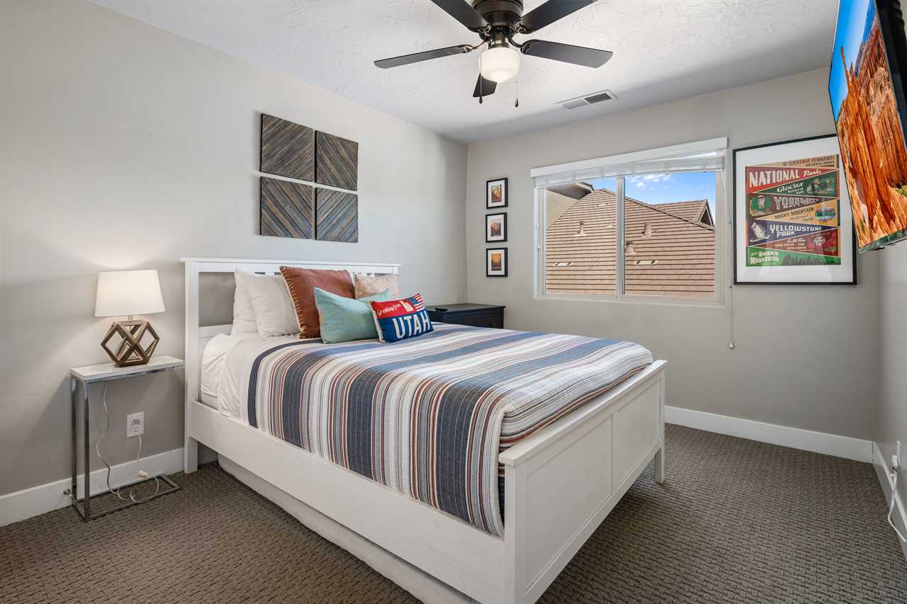 For your next Southern Utah vacation, enjoy a relaxing stay at Ridge Retreat in Coral Ridge! This comfortable home offers easy access to Zion National Park, just 35 minutes away, as well as countless other local attractions. Spend your days exploring the stunning desert scenery as you hike, swim, boat, or ride your RV. When the sun sets, return to your desert paradise to relax in one of the two hot tubs, grill some delicious food, and dine under the stars. Enjoy a game on the PS4 or cozy up on the couch and watch a movie on the Roku TV, with easy streaming access through your own accounts. No matter your interests, Ridge Retreat in Coral Ridge has something for everyone! This beautiful 4-bedroom, 2.5-bathroom home features a spacious Master Suite with an ensuite bathroom, a large walk-in closet, and a Roku TV. The home sleeps 12 people comfortably, with the option to accommodate up to 14 using a pull-out sofa bed. The bunk room includes two twin-over-full bunks, while the remaining two bedrooms host queen beds. The shared bathroom upstairs features a combination tub/shower, perfect for both kids and adults. With fun amenities, including two pools and two hot tubs in the pool area, Ridge Retreat at Coral Ridge is sure to become a favorite vacation destination. Bedding Arrangements: Bedroom 1: King bed with a Roku TV - Ensuite Bathroom Bedroom 2: 2 Twin-over-full bunk beds - Shared Bathroom Bedroom 3: Queen bed with a TV - Shared Bathroom Bedroom 4: Queen bed with a TV - Shared Bathroom Additional Bedding: Two-person pull-out couch in the living room Additional Features: Golf course has easy access. The clubhouse includes a workout room, ping pong, foosball table, 2 hot tubs, small putting green, and a meeting room. Razor Ridge Park, a Washington City park with a fishing pond that's great for kids and adults, is just a 2-minute walk from the condo. The pond is stocked regularly, and fishing poles are provided at the condo. The property is 2 minutes from freeway access and 10 minutes from St. George city center. Internet is provided for TV streaming on all Roku TVs, making it easy to stream with your own accounts. *No Trailer/Boat/RV or street parking is allowed in the community Property Amenities Highlights: PS4 2 pools in the complex Roku Smart TVs Grill Patio set with an umbrella Proximity Highlights: Within 15 minutes of 9 additional golf courses in the Hurricane/St. George area. Close to numerous city parks and 10 minutes from the new Jellystone Resort. Close access to amazing mountain bike trails. 30 minutes from the new Black Desert Championship Golf Course, near Estrada and Tuacahn. Zion National Park: 35 mins Quail Creek Reservoir: 9 mins Coral Canyon Golf Course: 6 mins St. George: 15 mins Sand Dunes in Snow Canyon: 30 mins Tuacahn Center for the Arts: 28 mins Thunder Junction Park: 16 mins Please inquire about parking rules and regulations prior to booking.