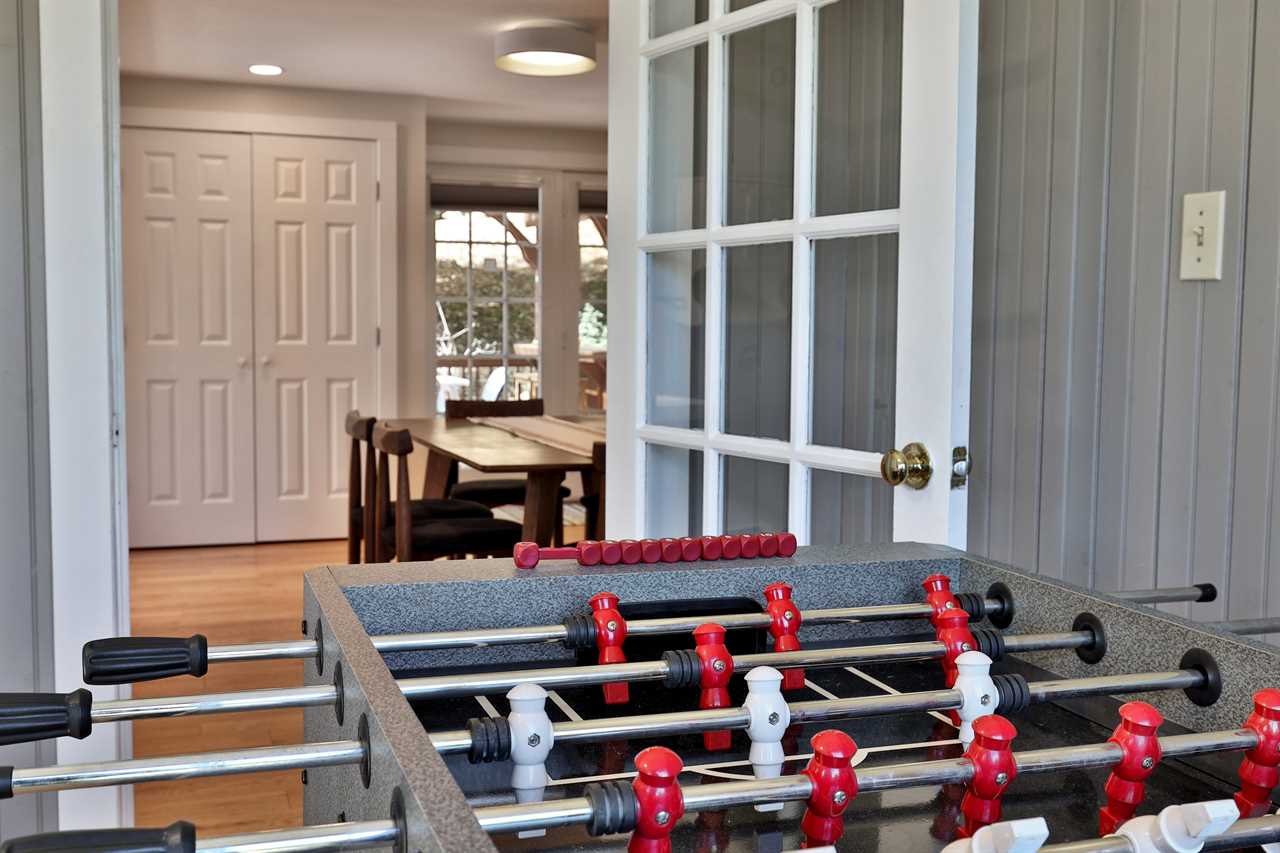 Upstairs, the well-appointed bedrooms offer a peaceful retreat, with a charming bunk room and an inviting playroom that's perfect for children. Extra futons ensure plenty of sleeping space for larger groups, making this home ideal for family gatherings or trips with friends.