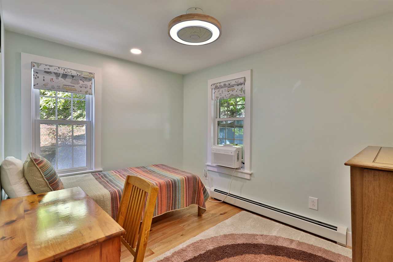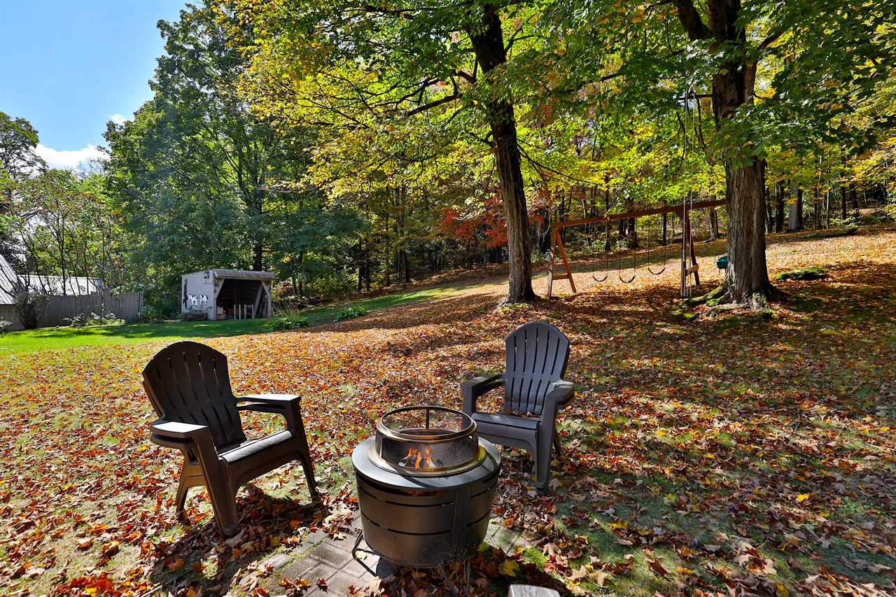 Outside, the magic continues with an expansive enclosed backyard that beckons you to enjoy the fresh Vermont air. Relax on the outdoor living and dining patio, complete with a Weber Genesis II grill for alfresco meals, and gather around the firepit for evenings filled with stargazing and s'mores. The backyard also features a swing set for the kids and a basketball hoop, offering endless outdoor entertainment.